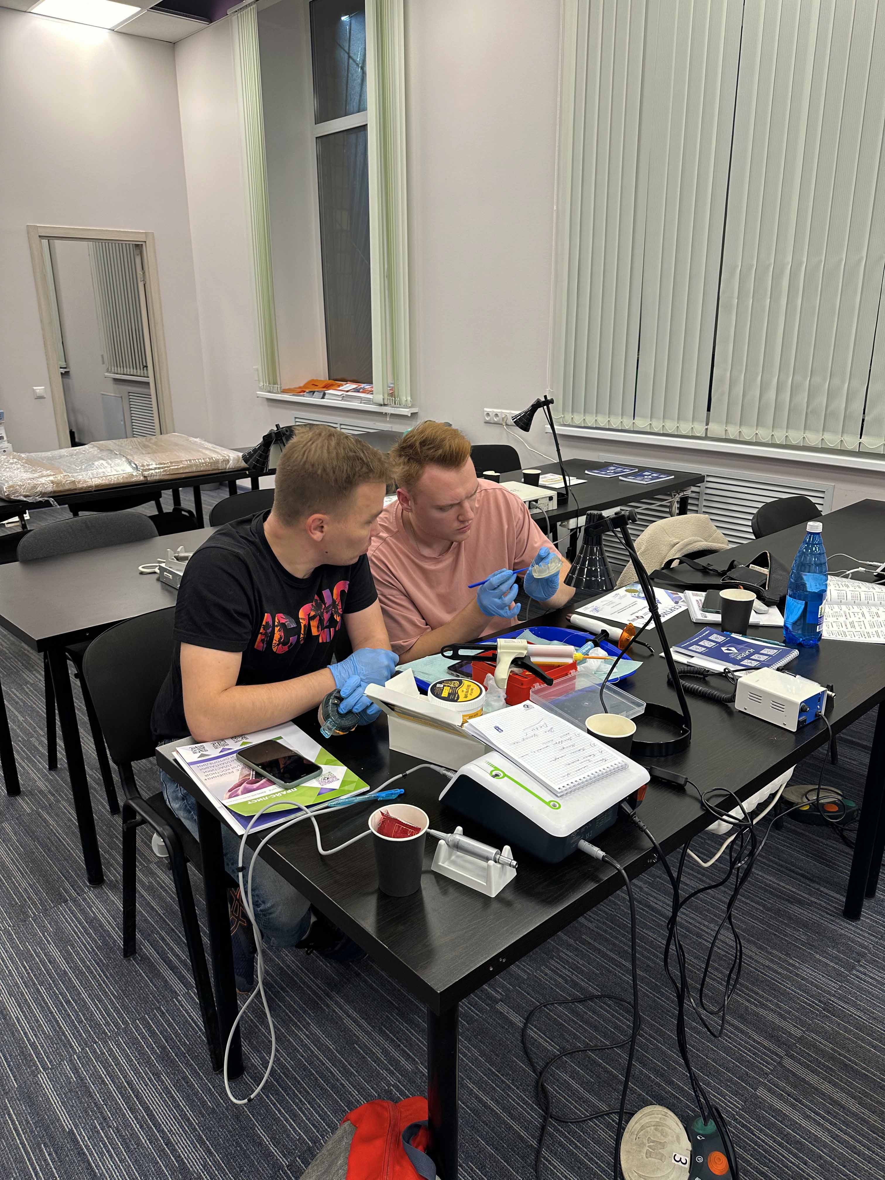 Второй день посвятили подробному разбору ортопедического протокола, планированию и анализу ортопедических конструкций, видам соединения имплантат-абатмант, клиническим и лабораторным этапам изготовления конструкций на имплантатах, слепкам и видам цементов, факторам риска и нюансам. В финале второго учебного дня провели практическое занятие, которое включало подбор слепочных трансферов, изготовление трансфер чека и снятие слепков с уровня имплантата.