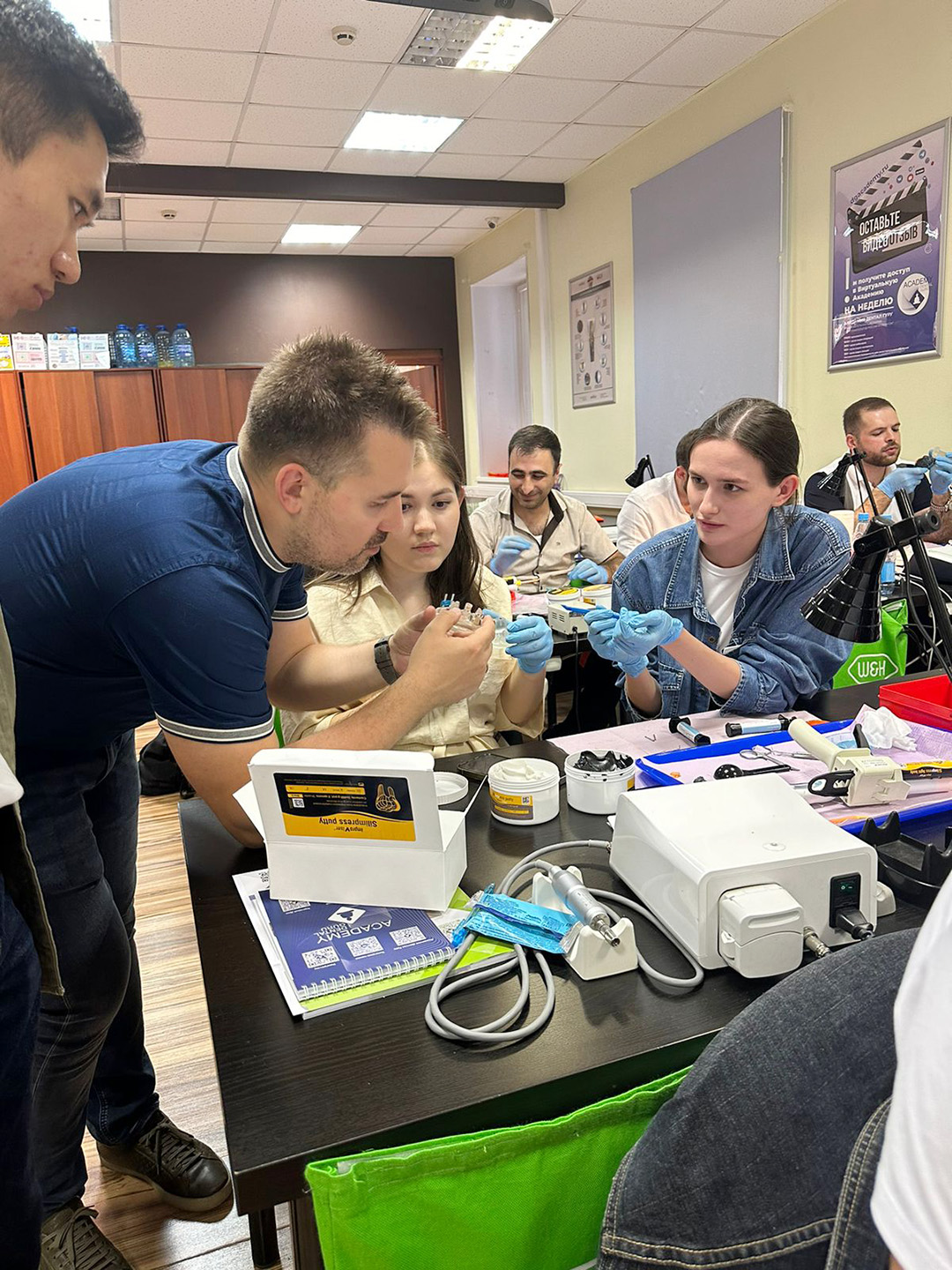Второй день курса посвящен ортопедическому протоколу, который провел Тумашевич Артур Витальевич. Под руководством лектора специалисты учились снимать слепки с имплантатов различными методиками, подбирать и индивидуализировать слепочные трансферы, изготавливать индивидуальные ложки и работать с балочными конструкциями и съемными протезами.