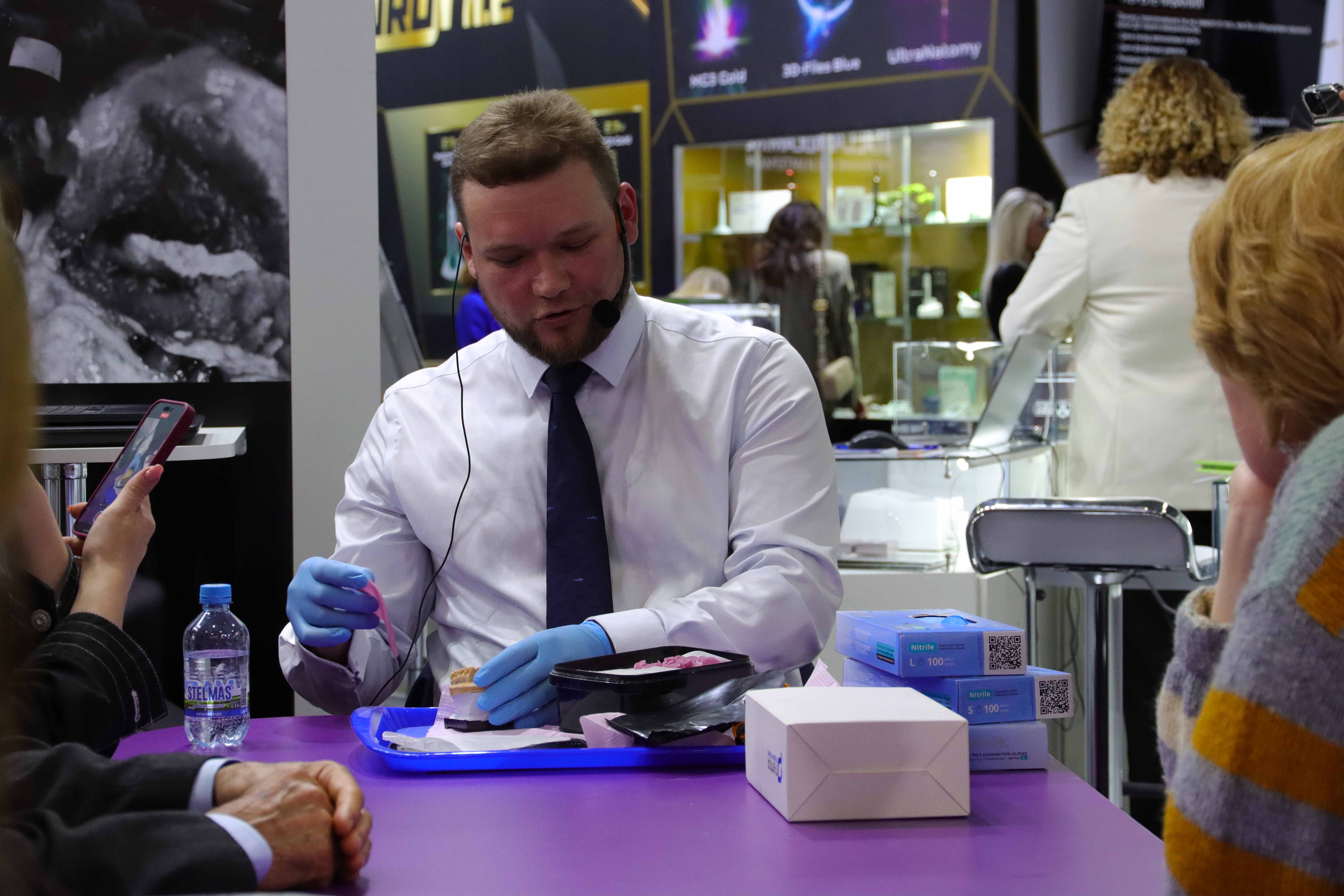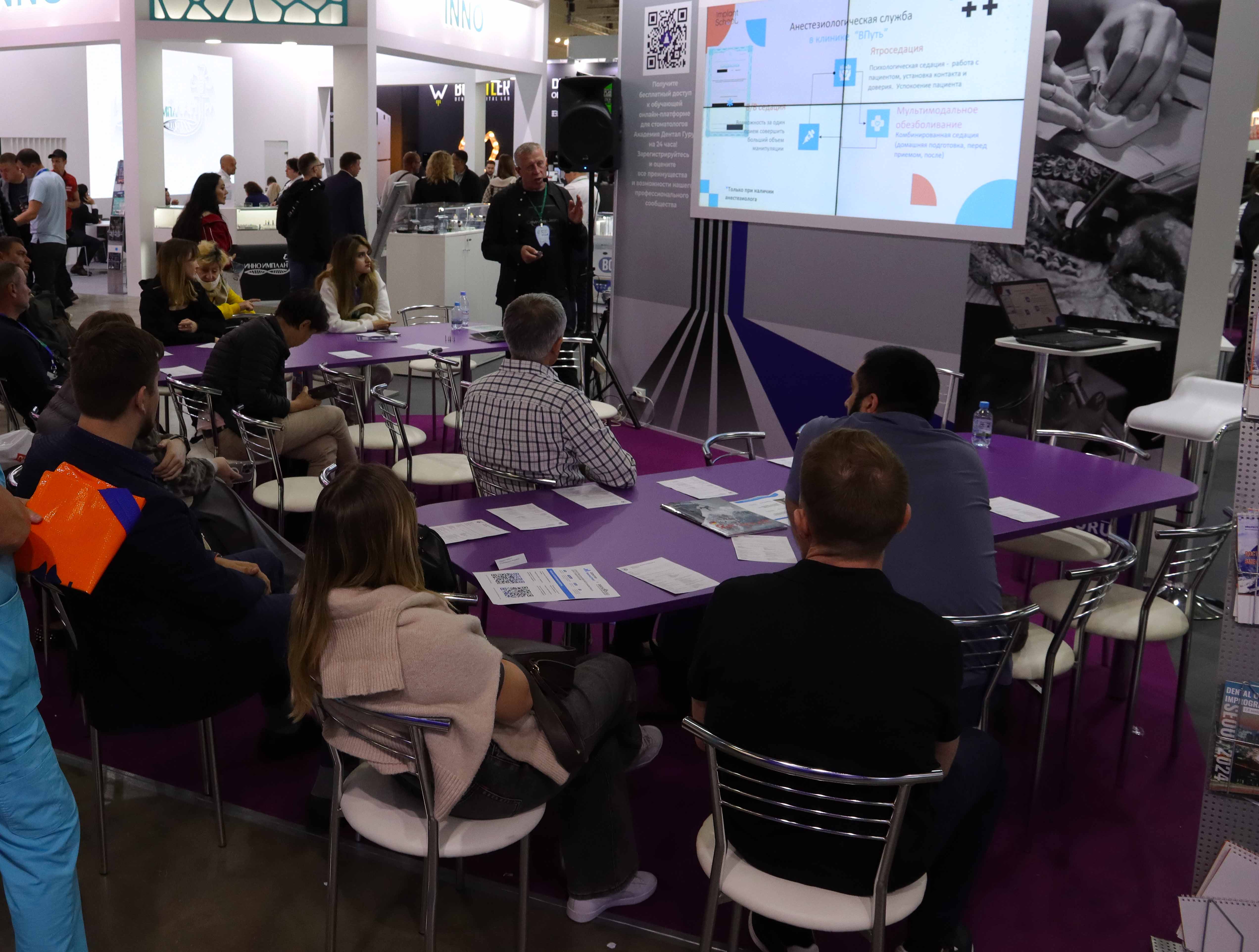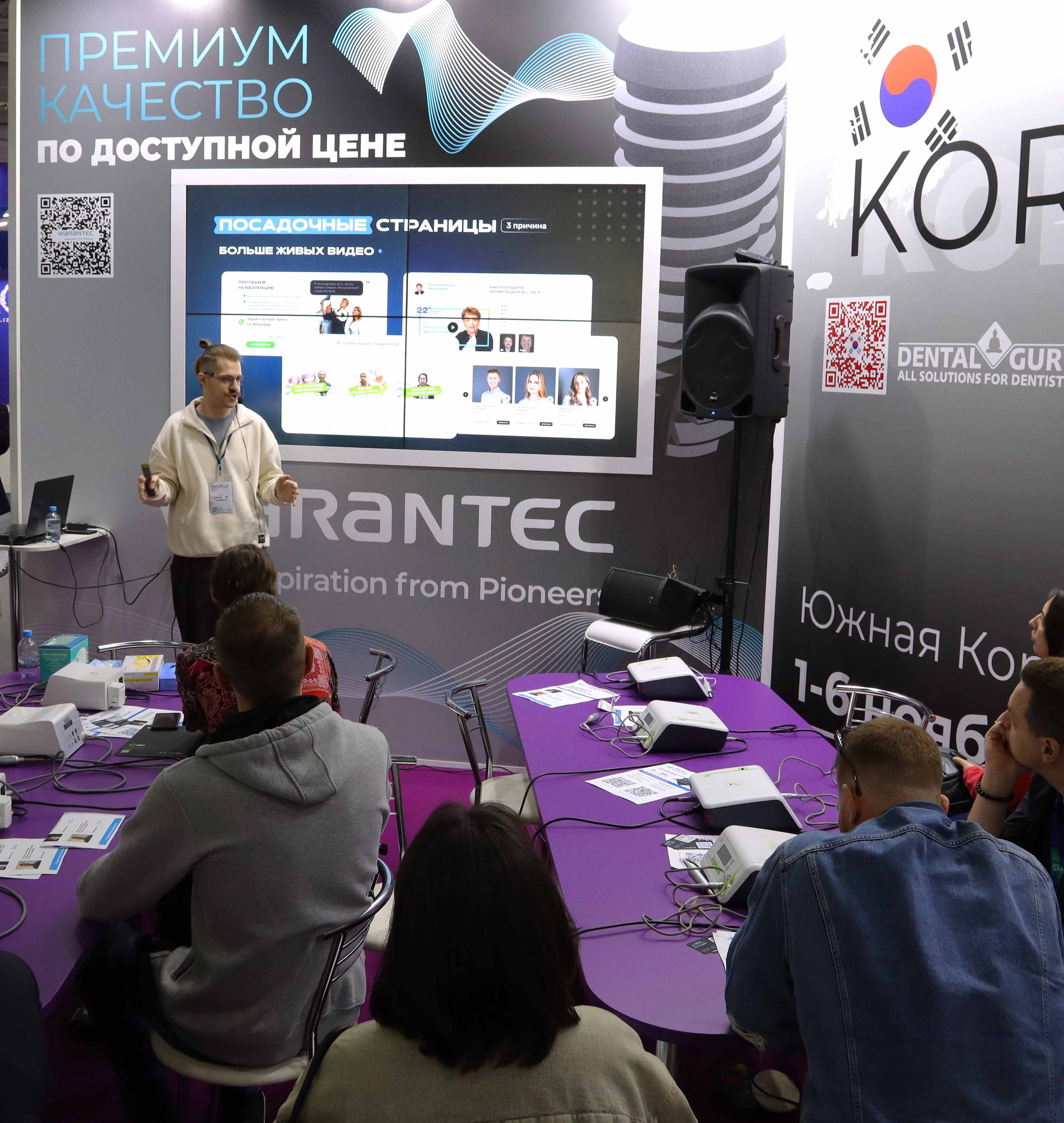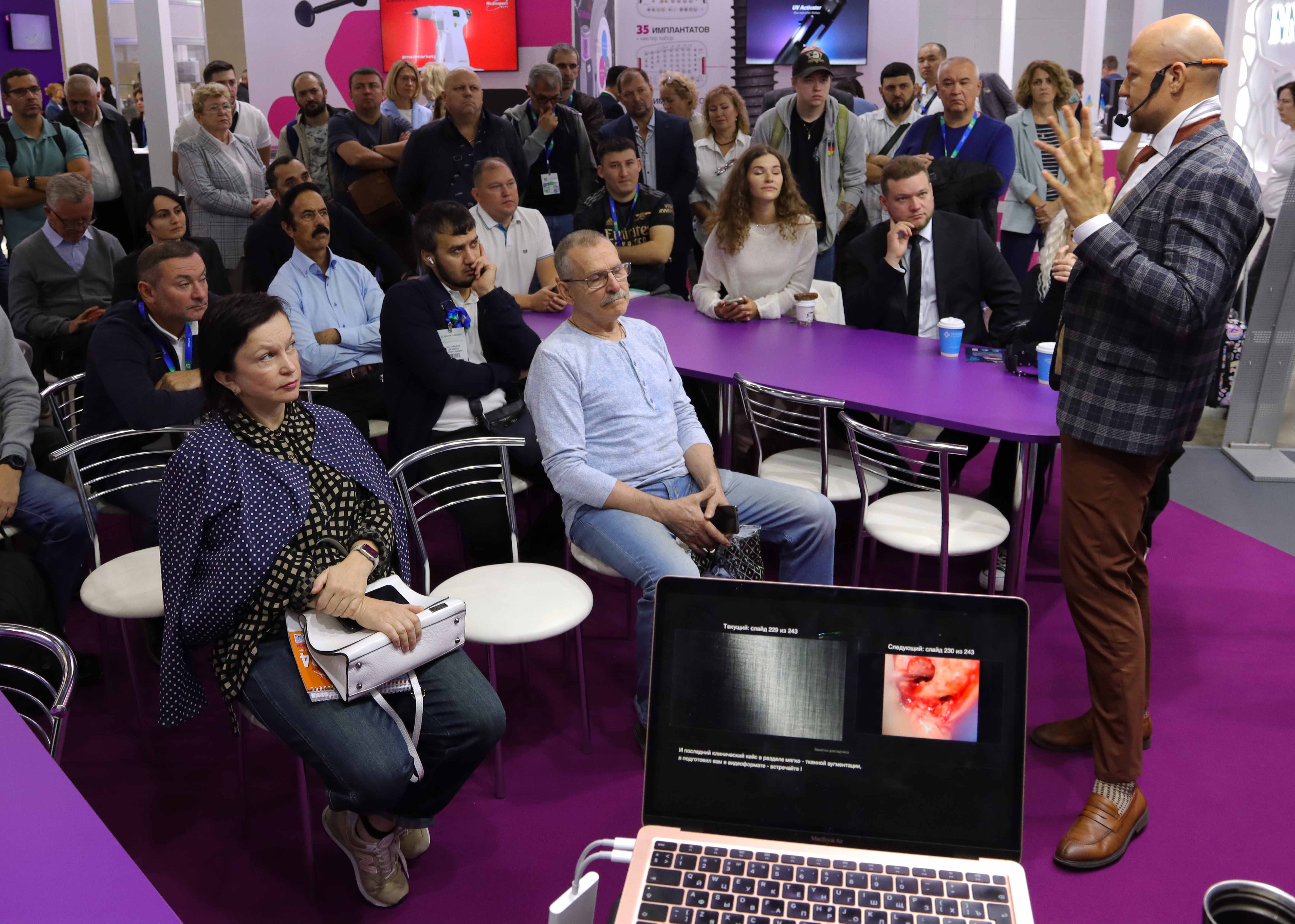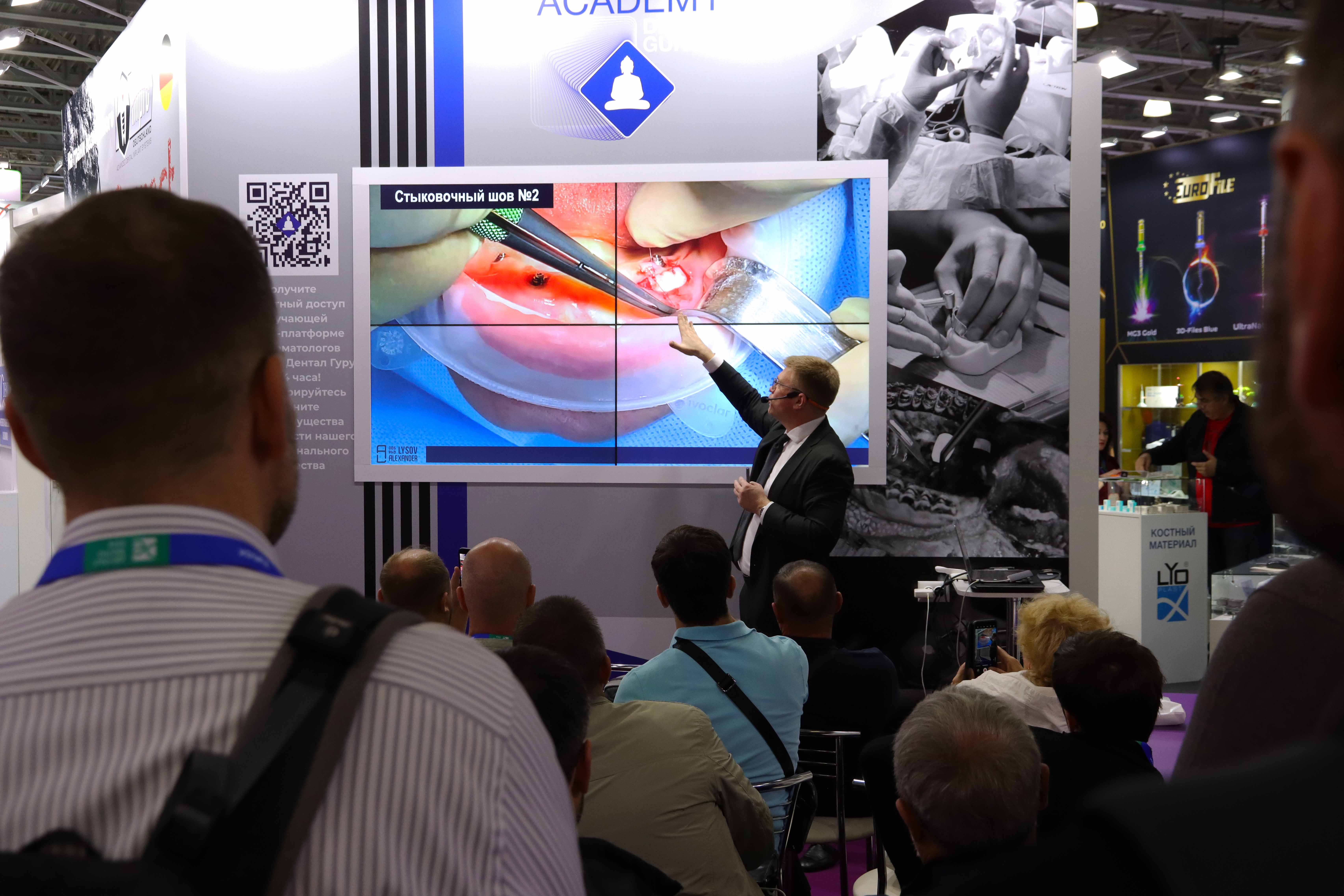 В двух учебных зонах выдающиеся лекторы Дентал Гуру читали лекции на самые актуальные темы в стоматологии и проводили полезные практические мастер-классы, у участников которых была возможность отточить свои навыки под руководством опытных специалистов. Чтобы пообщаться с экспертами, посетители заранее собирались у стенда и занимали места!