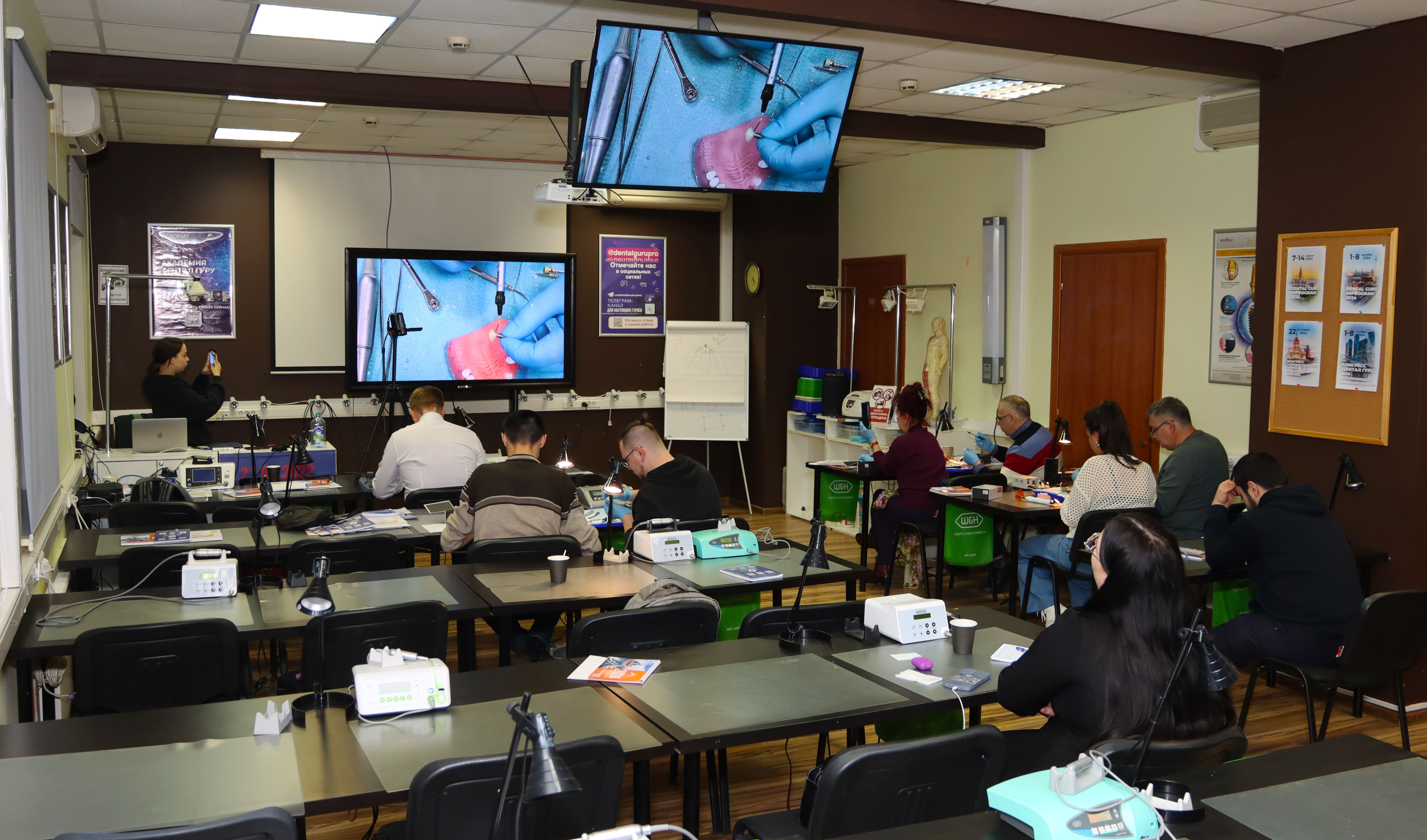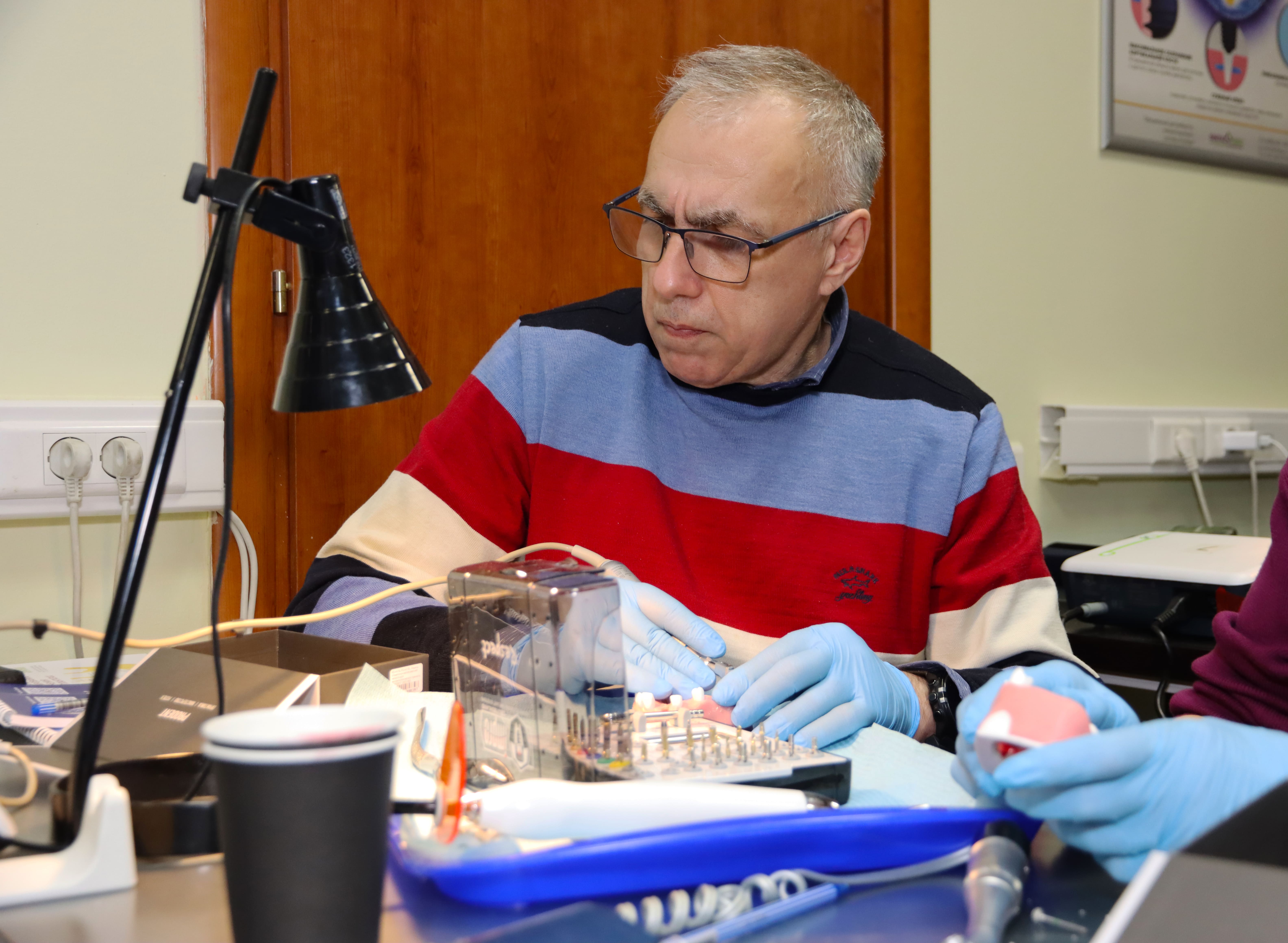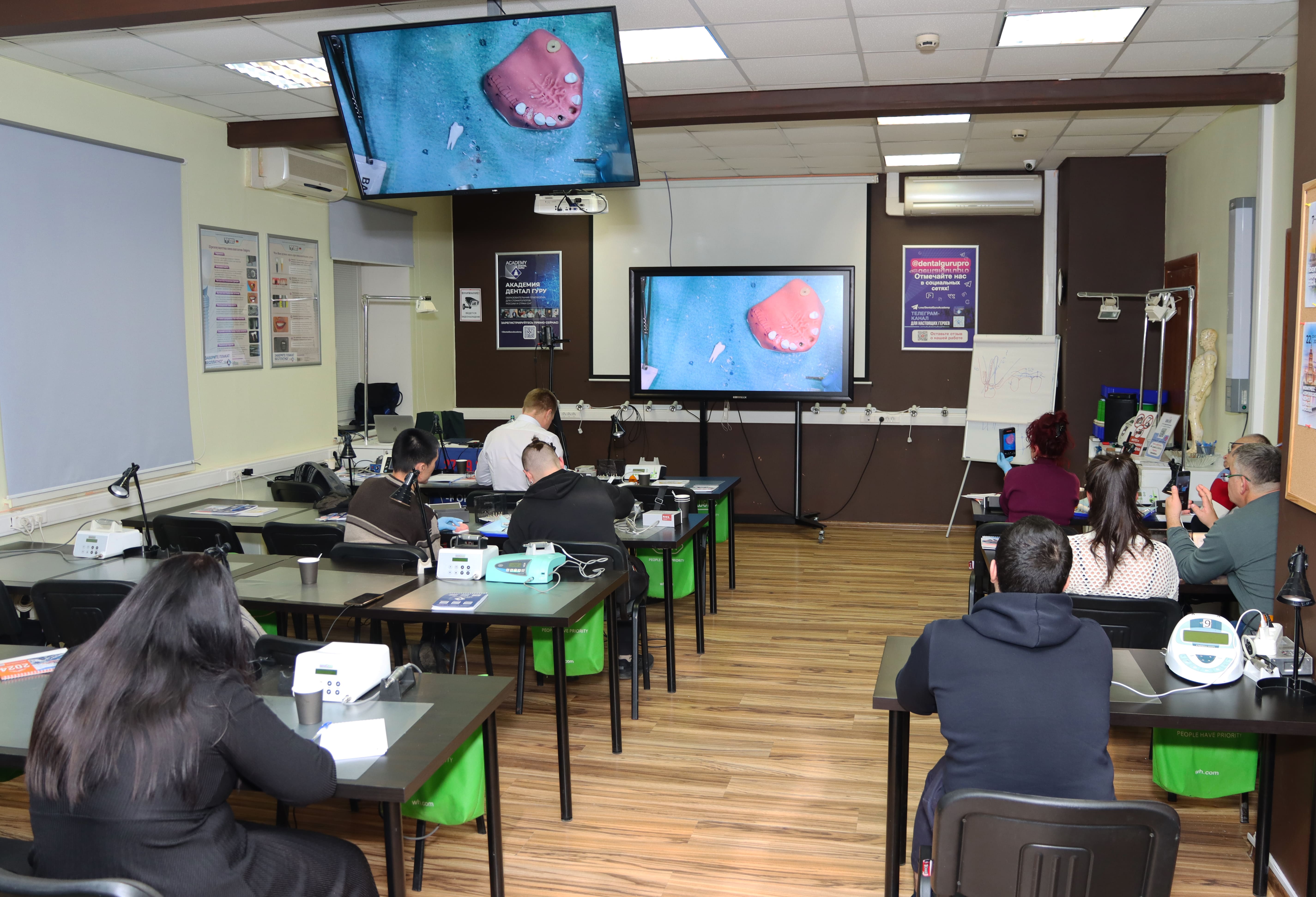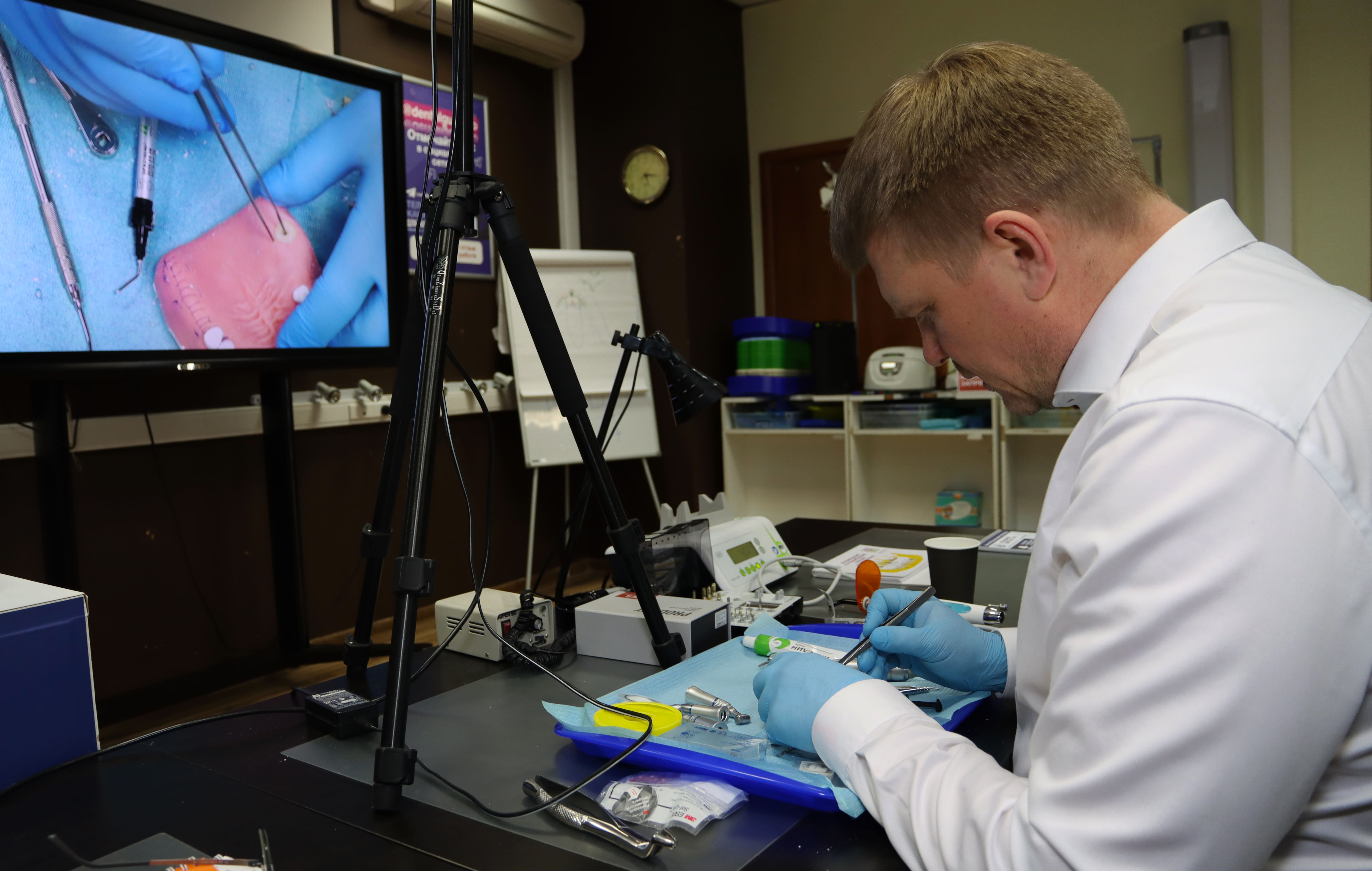 Во время курса доктора поэтапно разобрали особенности установки имплантата в лунку одно-, двух- и трехкорневого зуба, научились добиваться первичной стабилизации, а также изучили тему немедленной нагрузки. На практическом мастер-классе имплантологи и хирурги отработали полученные навыки удаления зубов и установки имплантата в лунку зуба на бараньей челюсти. Такой подход позволил участникам не только получить ценный опыт, но и улучшить свои профессиональные навыки.