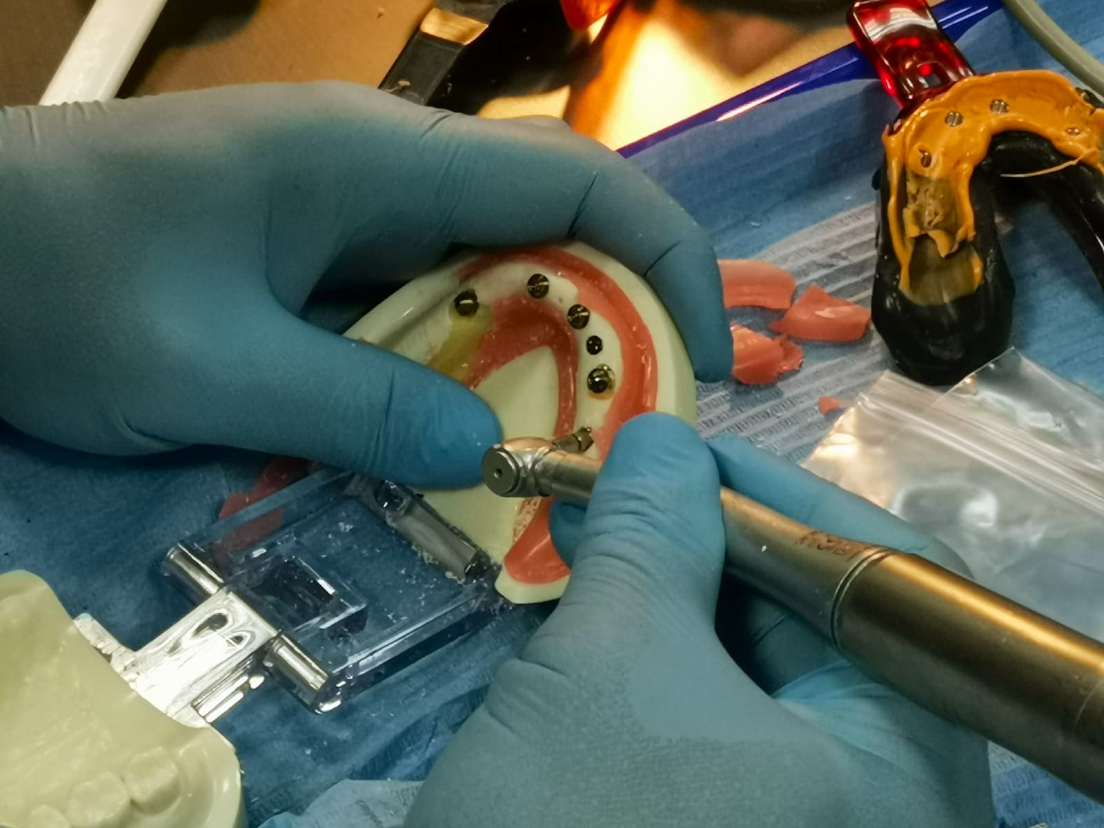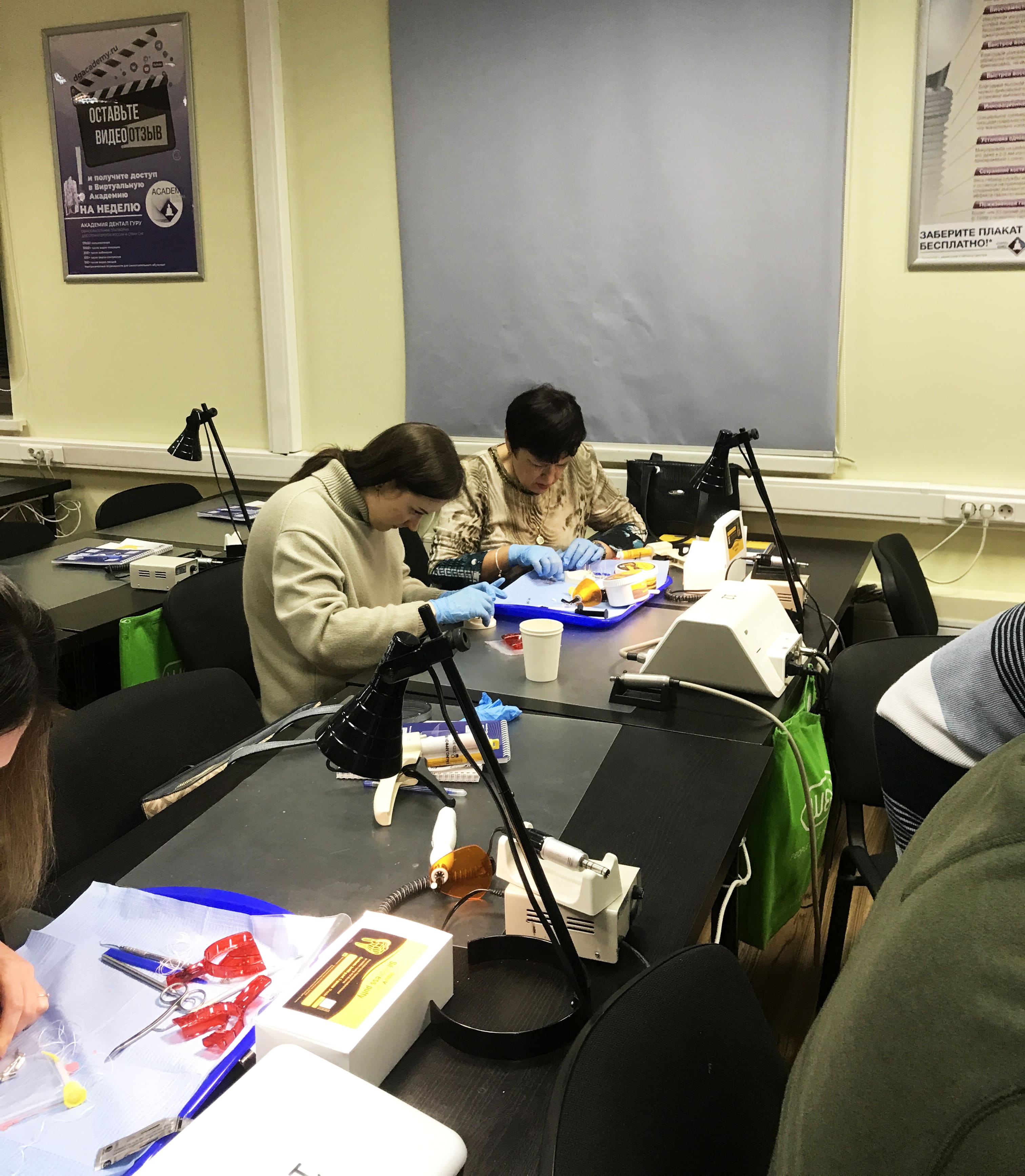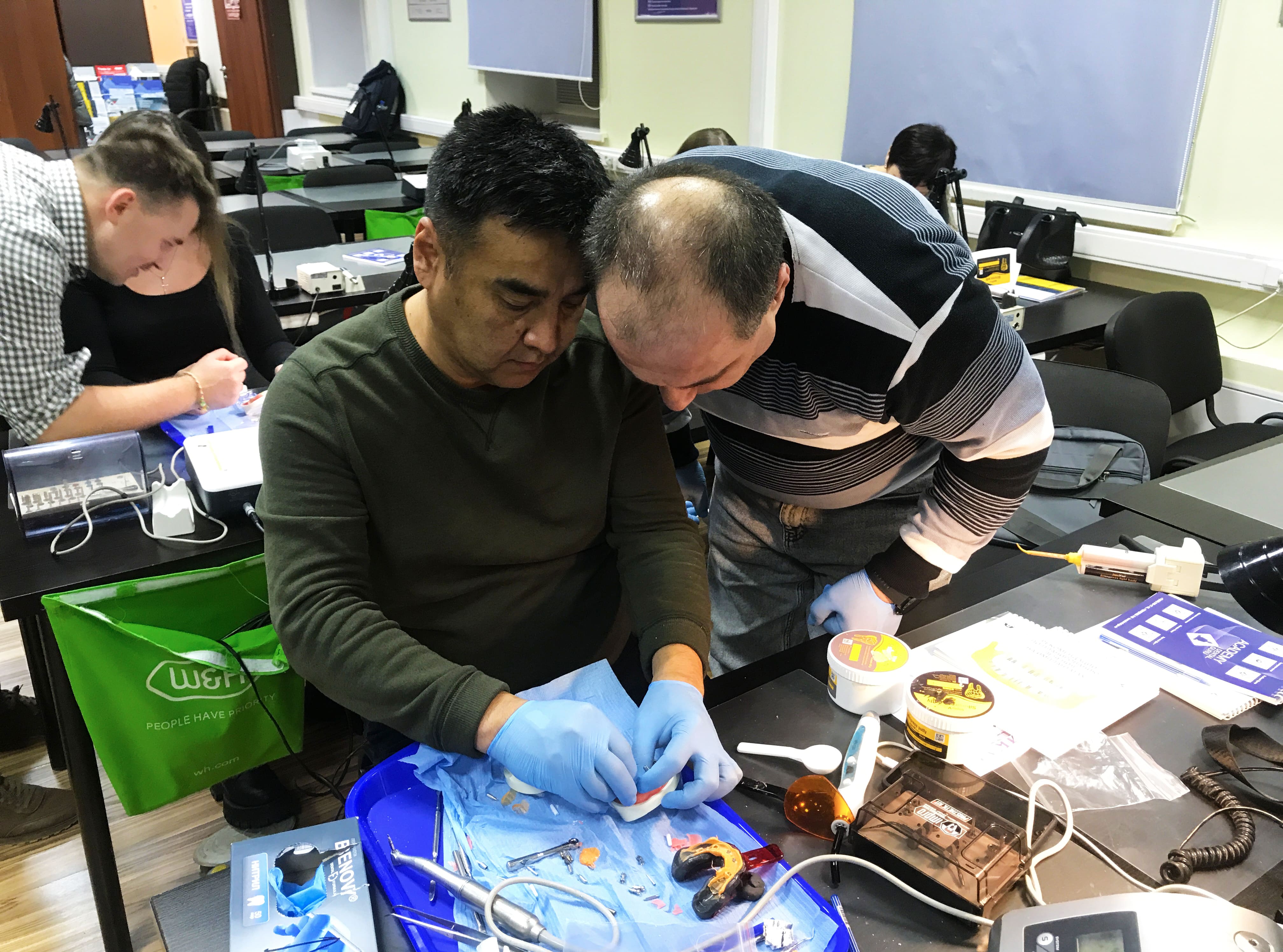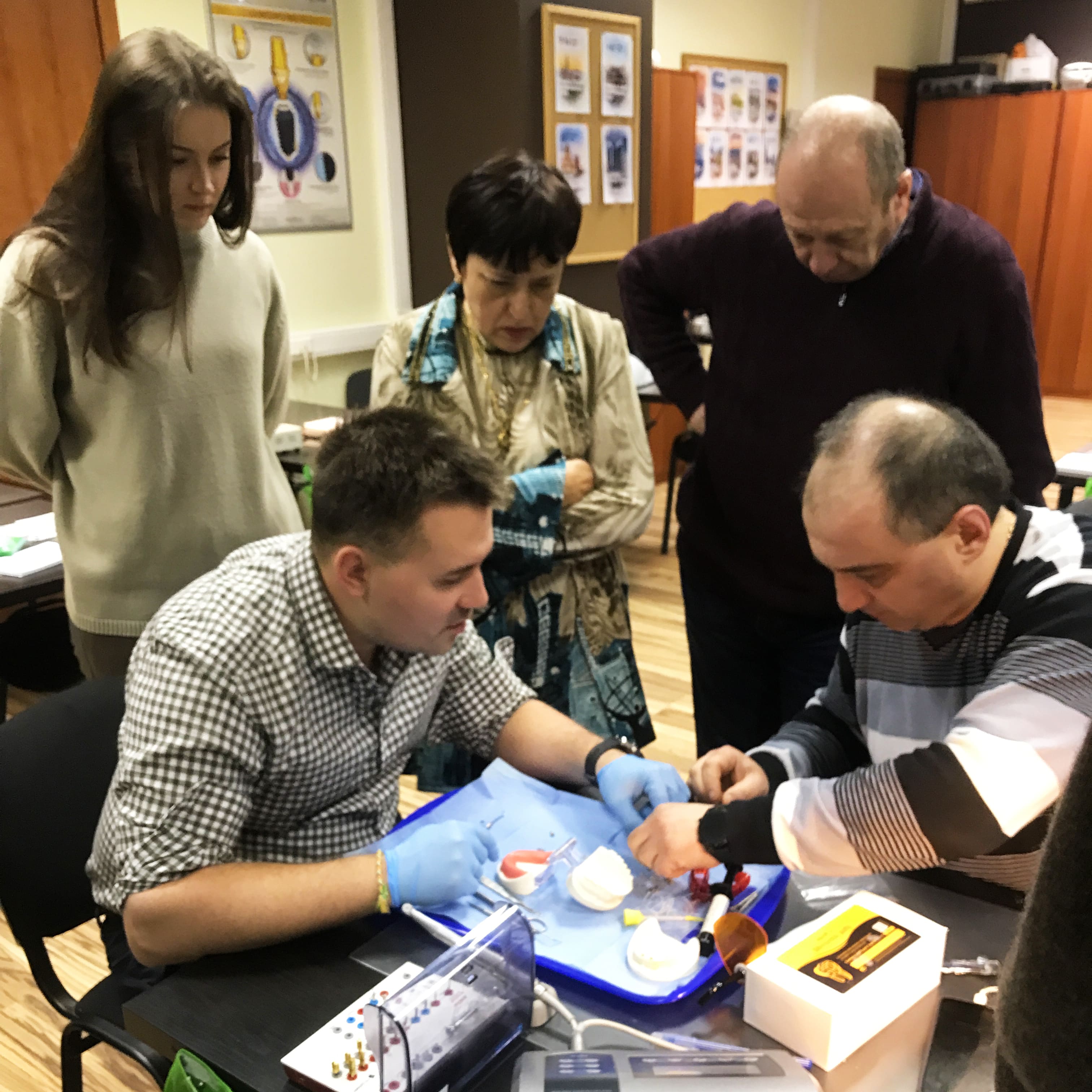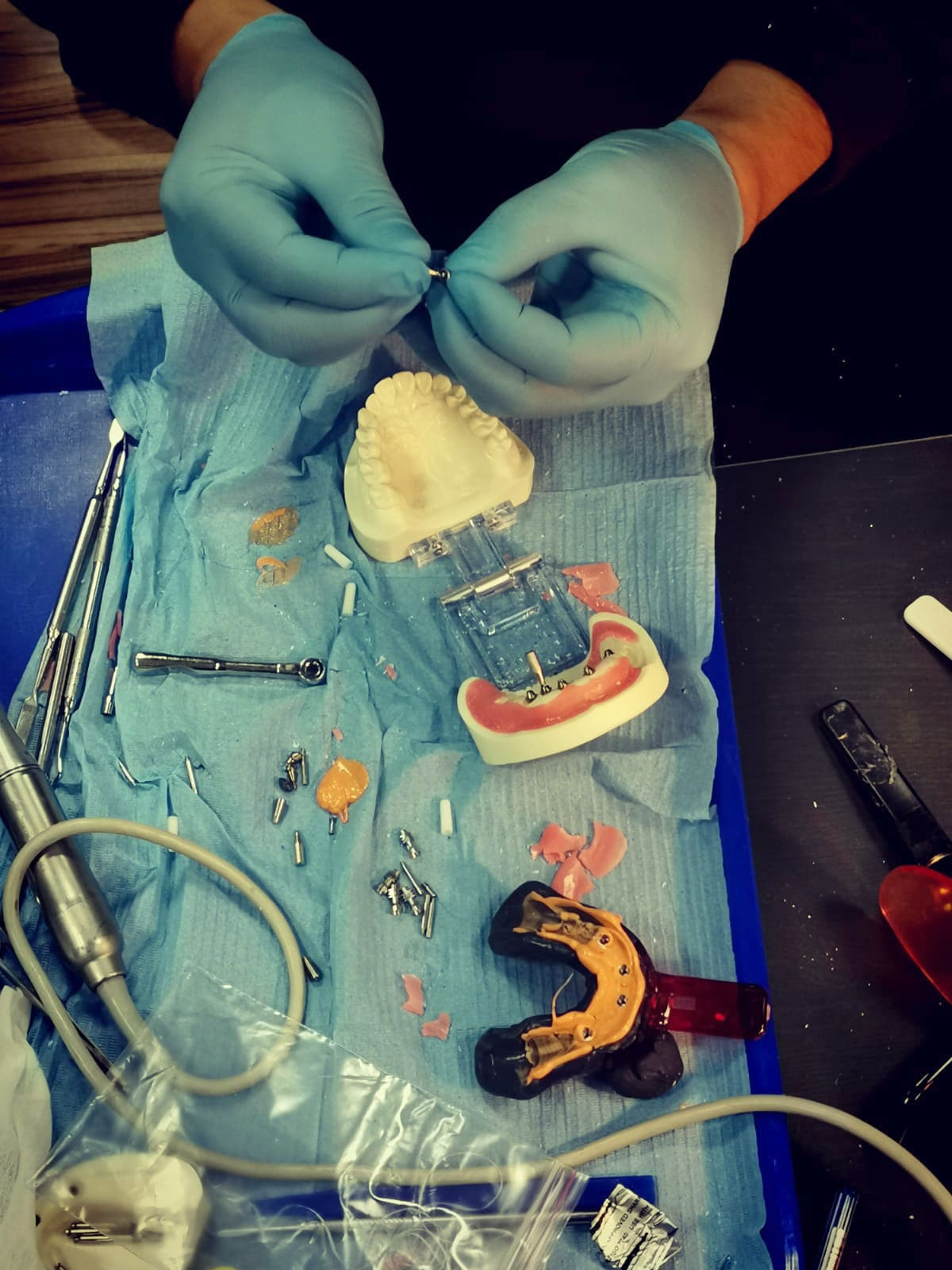 Во время практической части доктора отработали полученные знания на модели беззубой челюсти:
