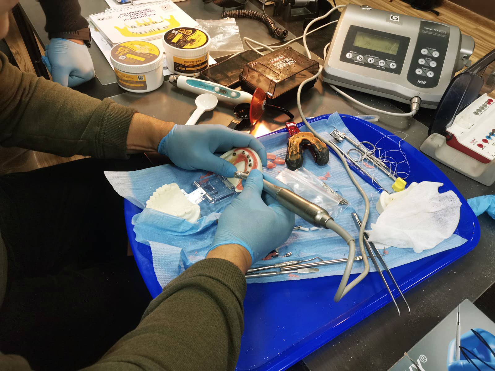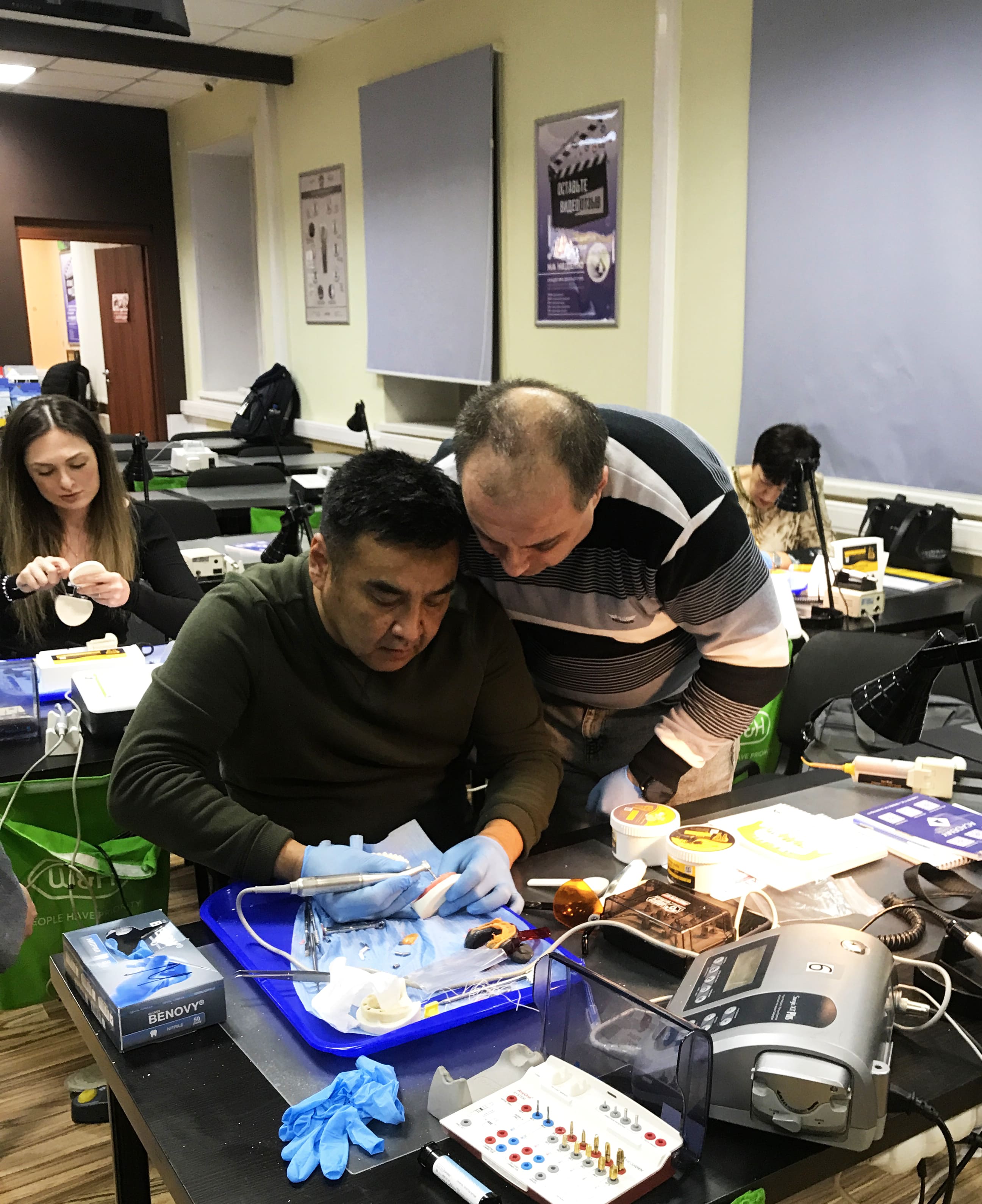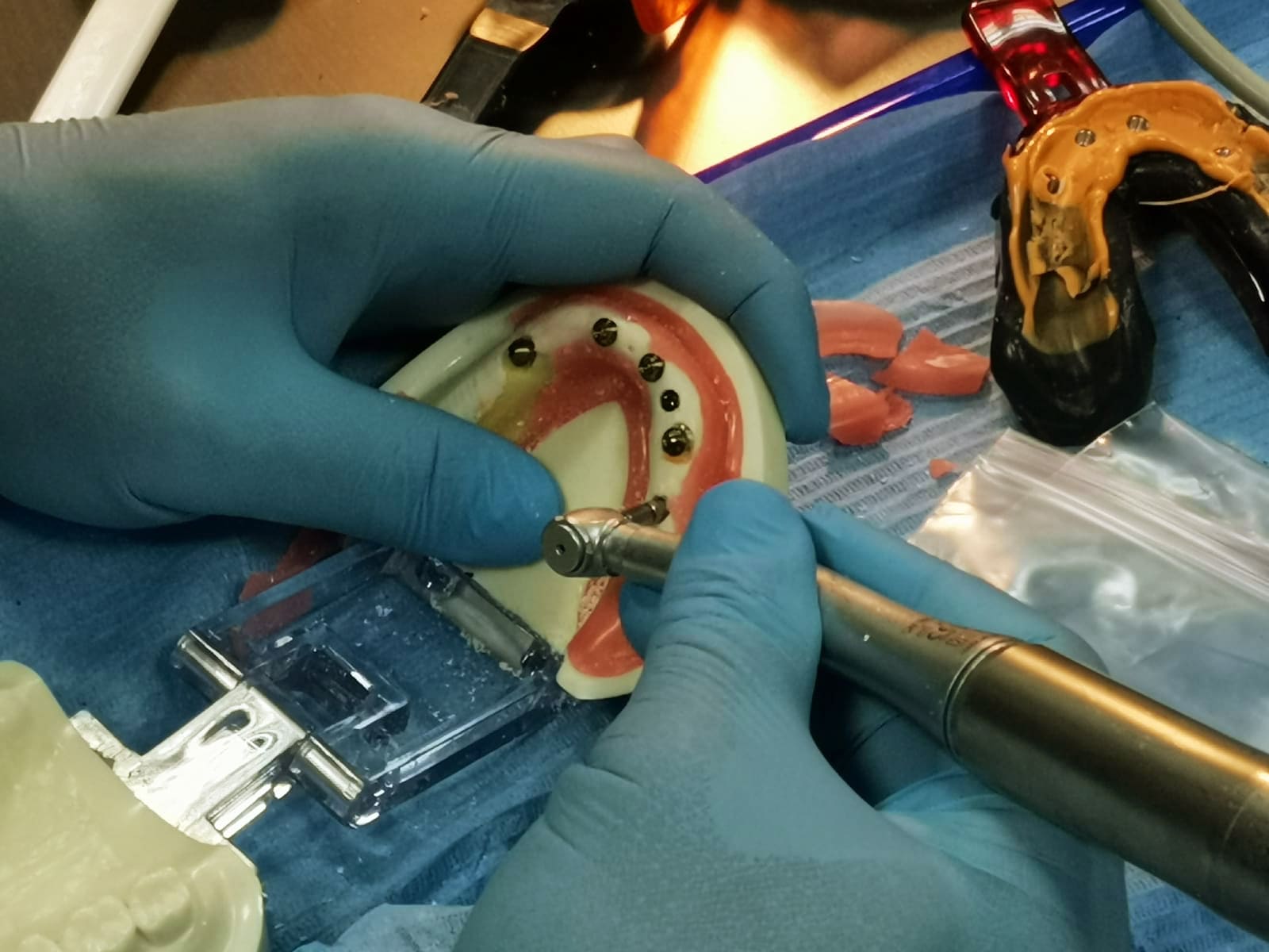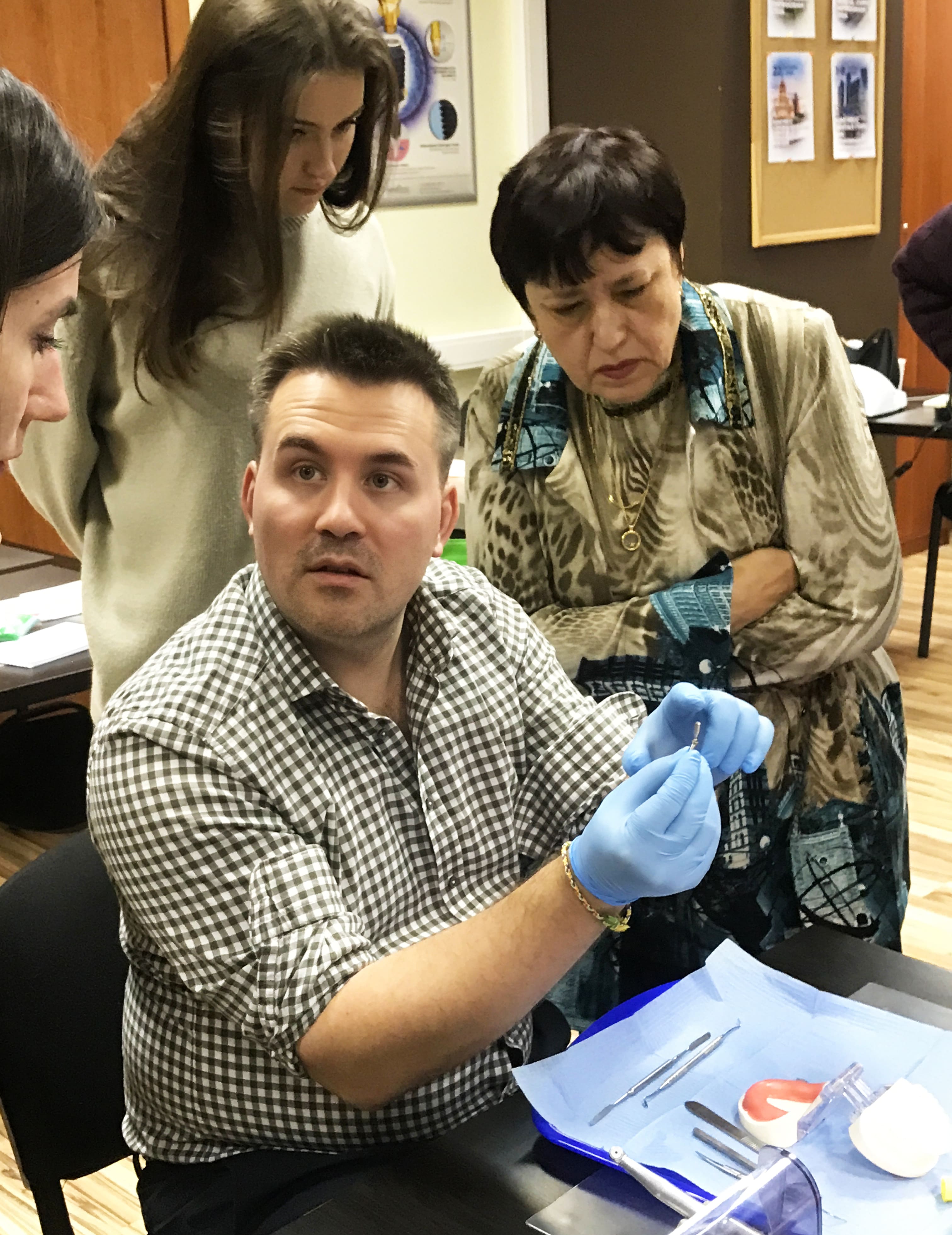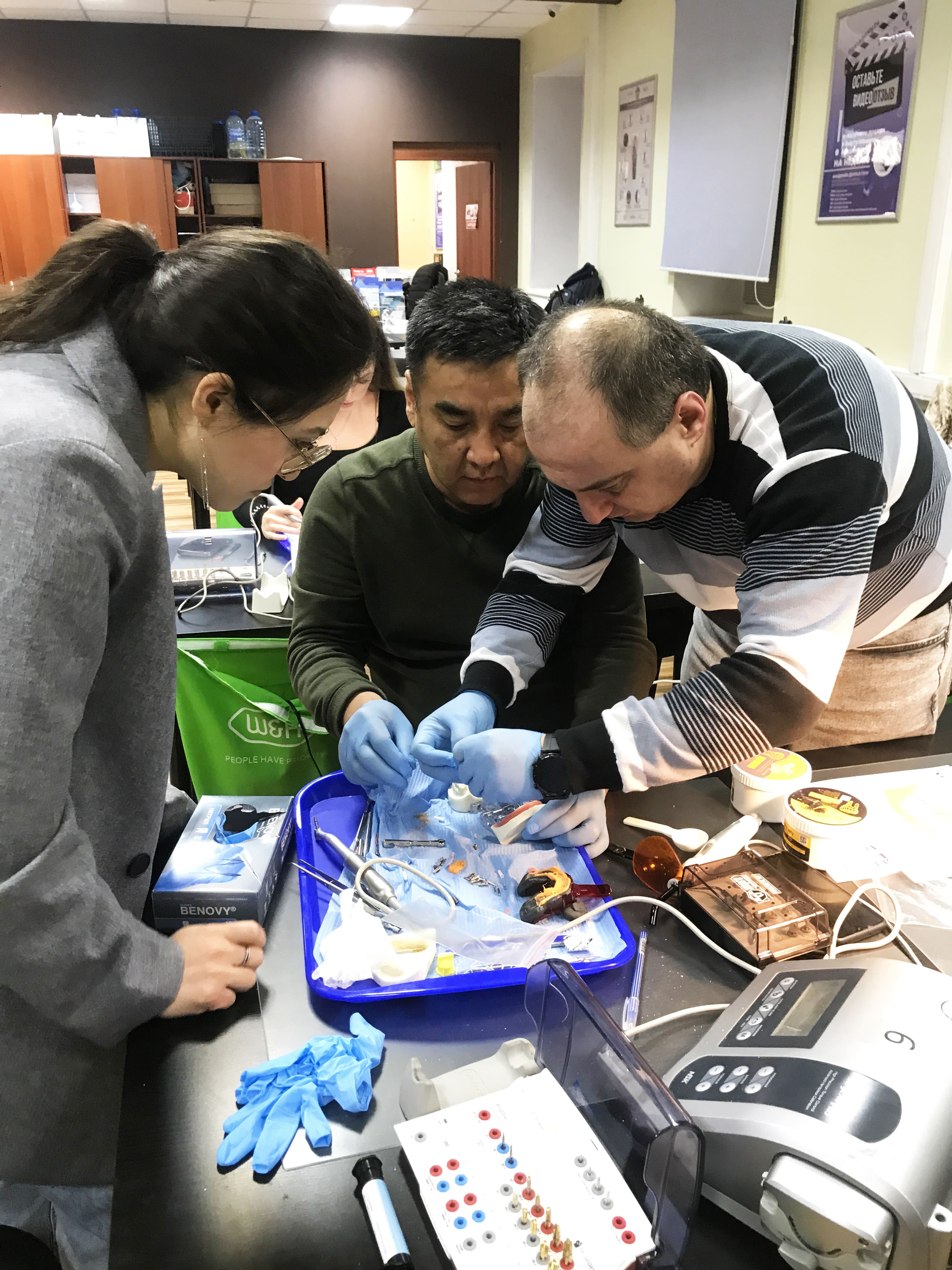 Во время практической части доктора отработали полученные знания на модели беззубой челюсти: