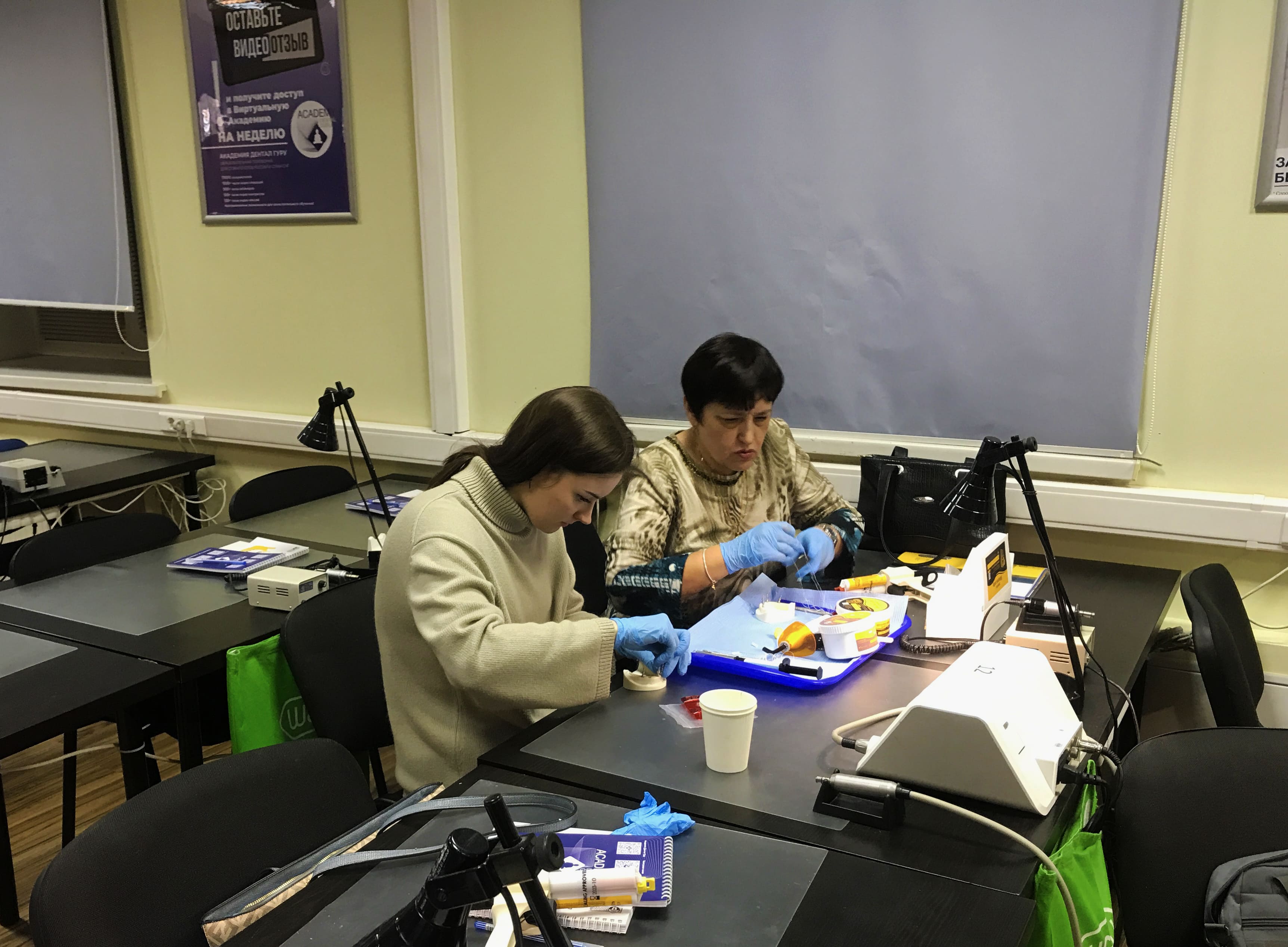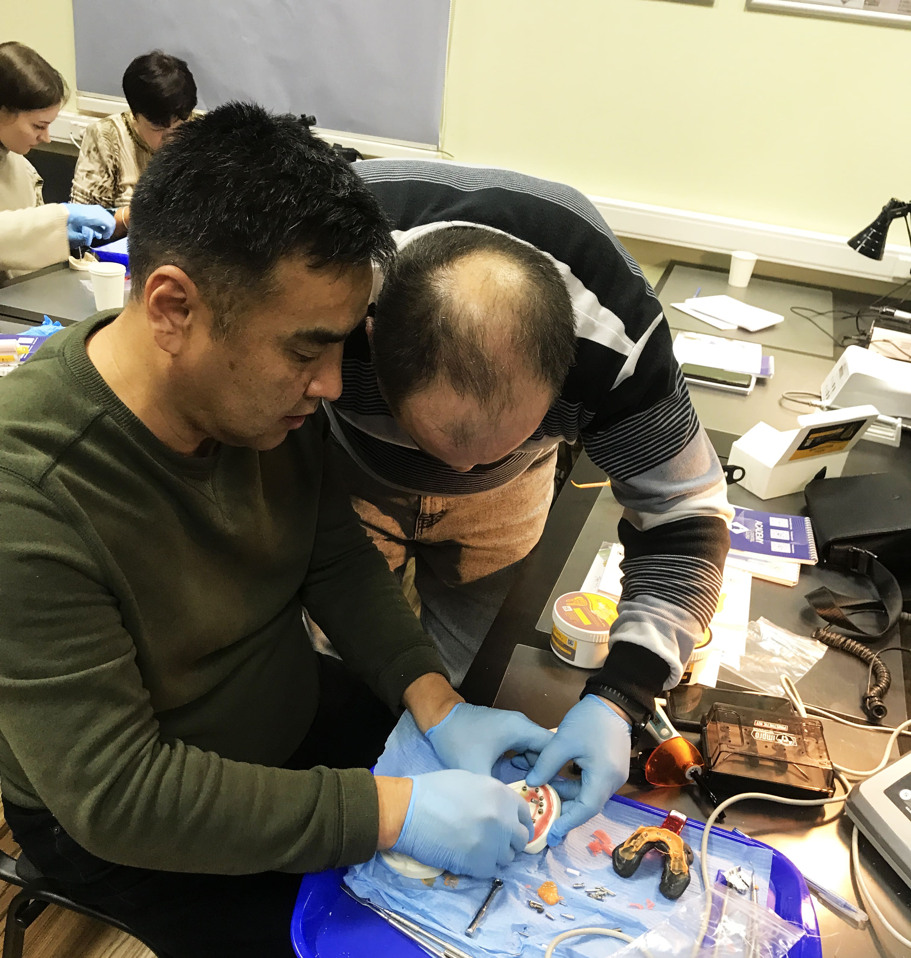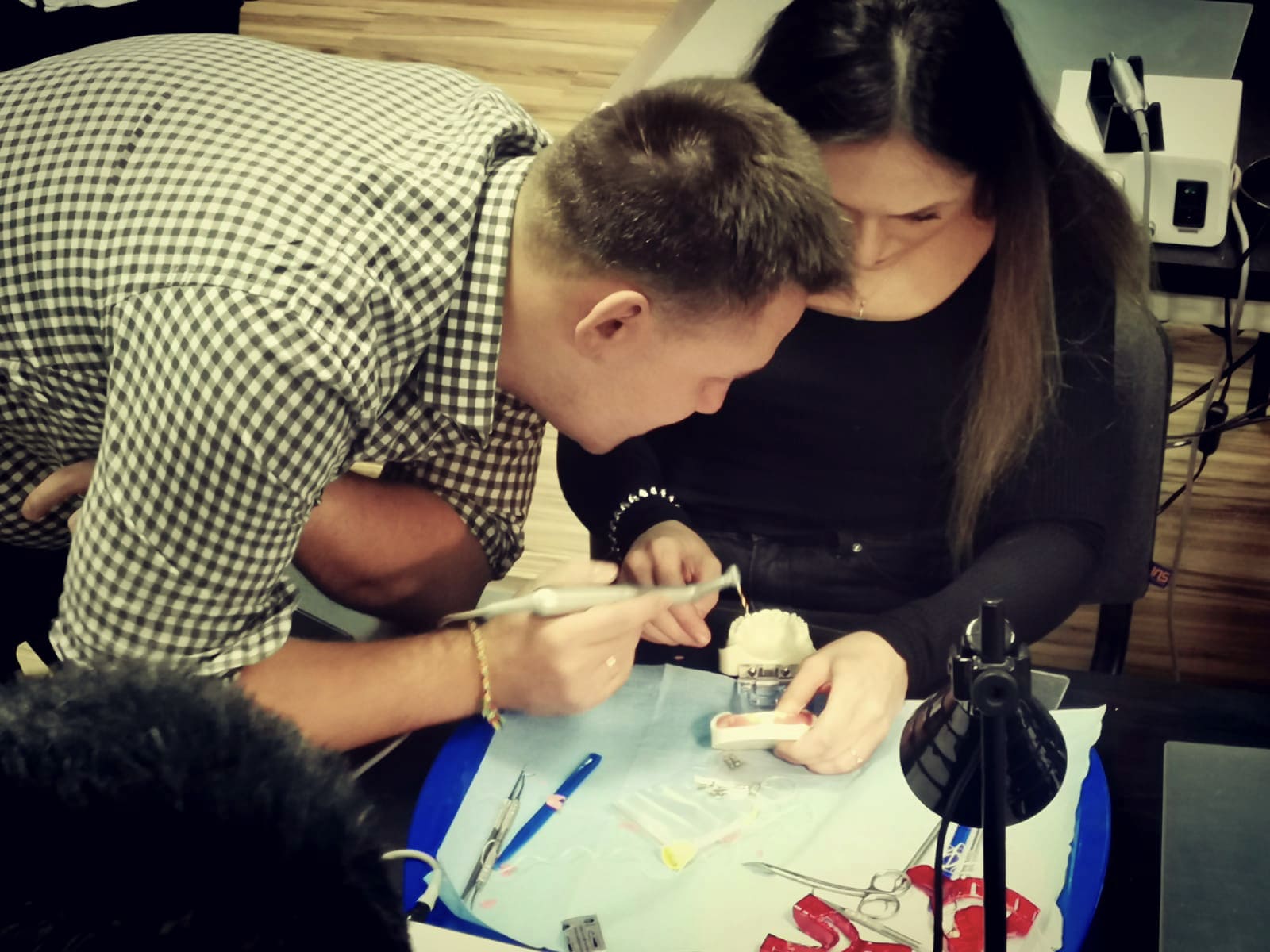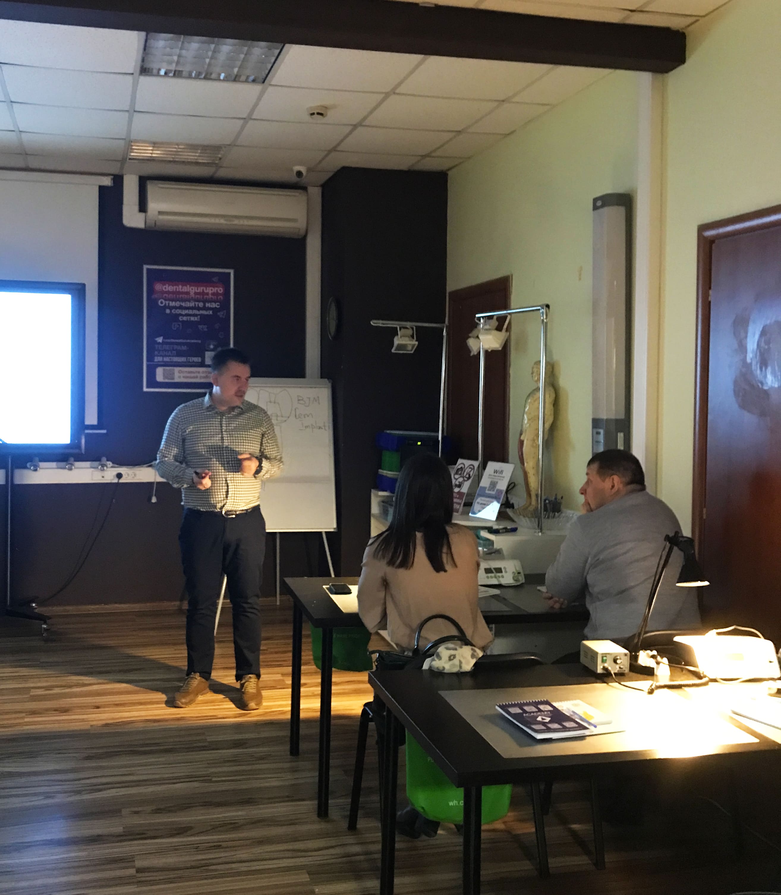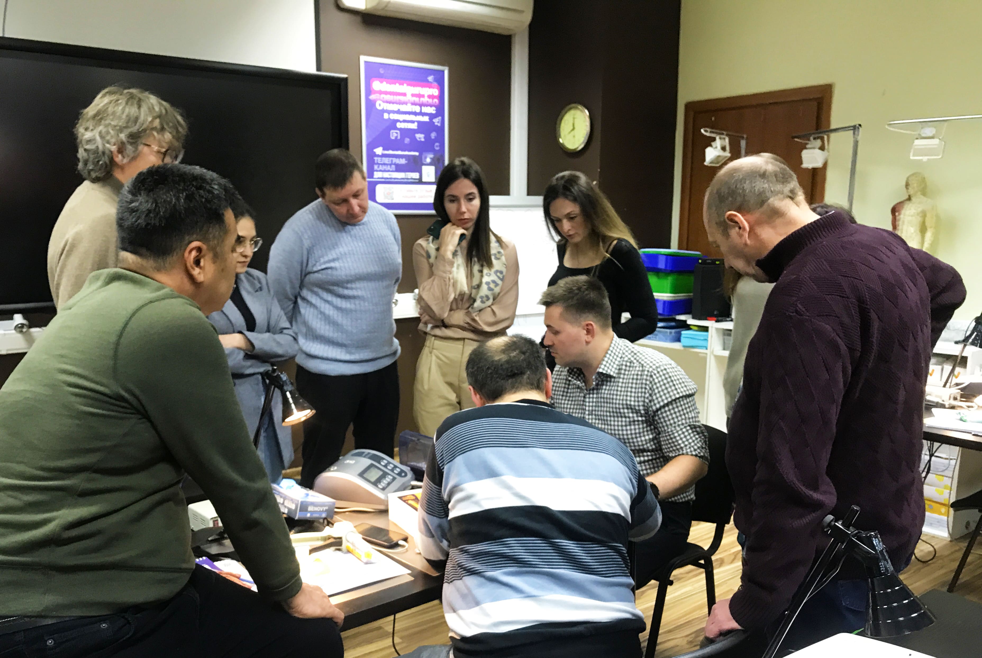 Во время практической части доктора отработали полученные знания на модели беззубой челюсти: