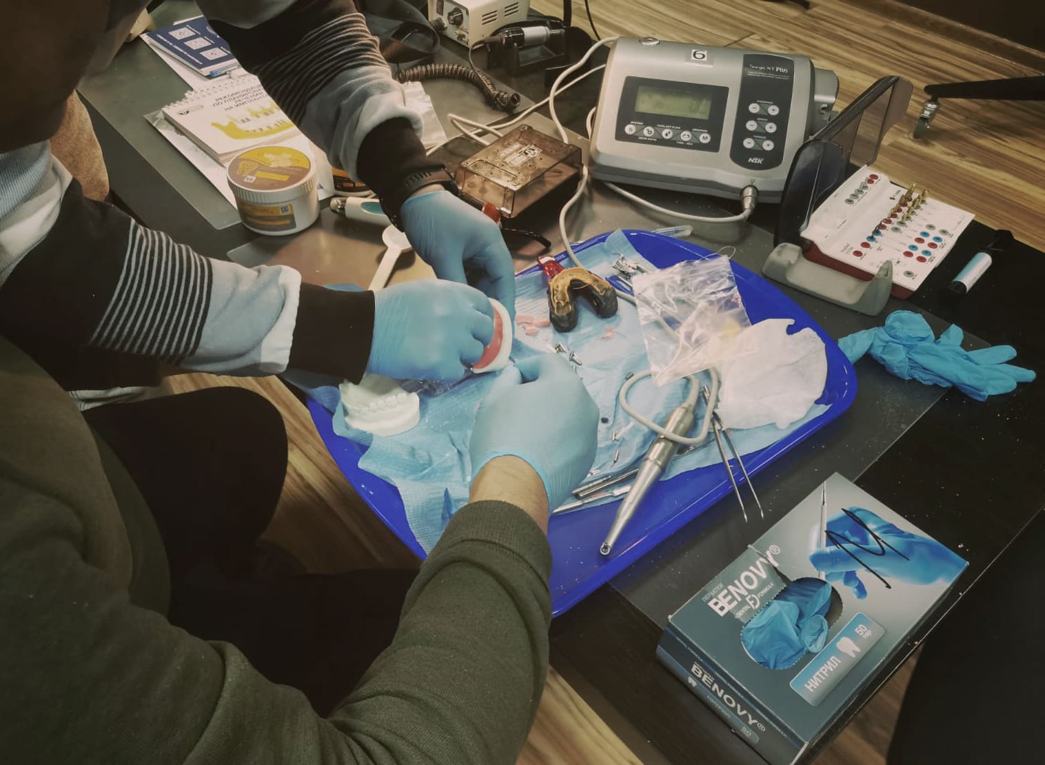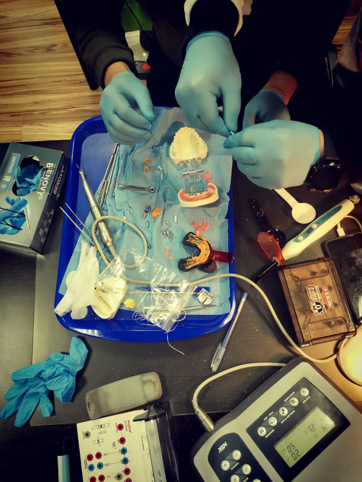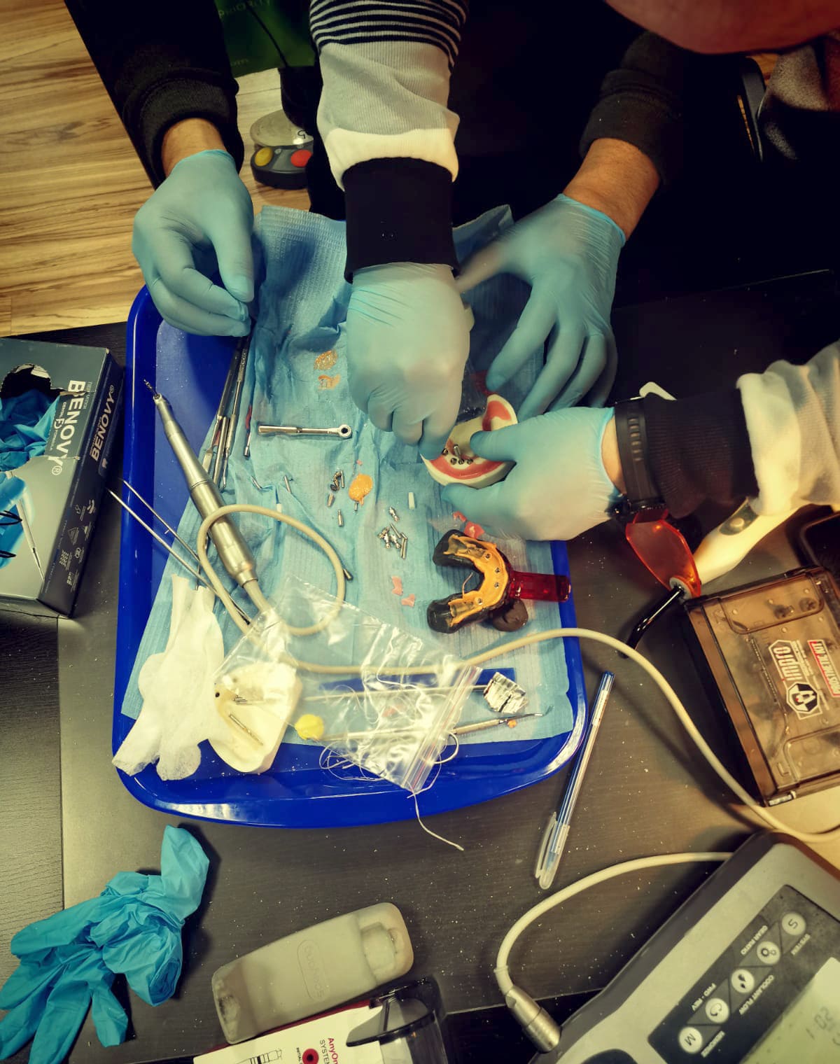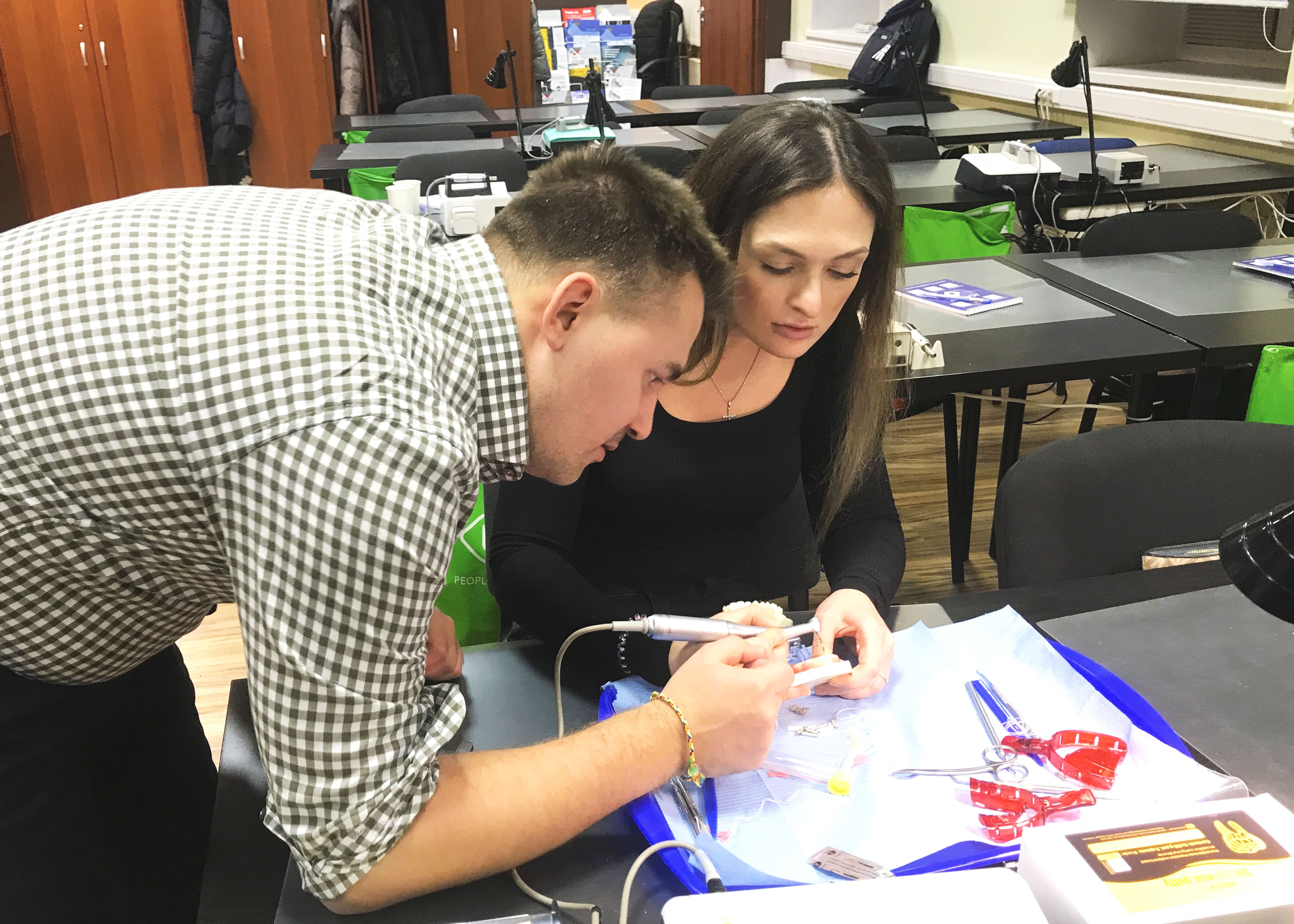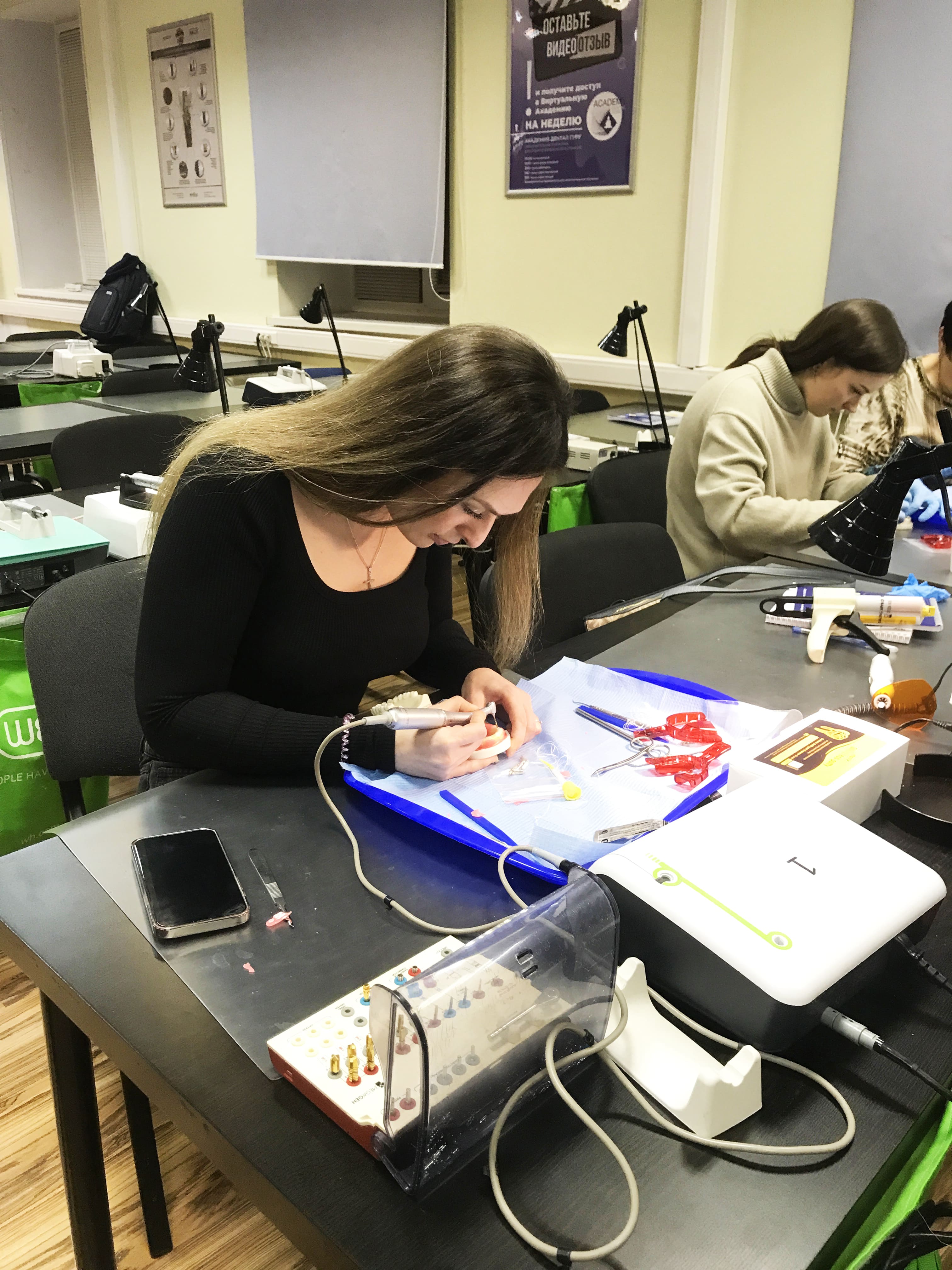 Во время практической части доктора отработали полученные знания на модели беззубой челюсти:
