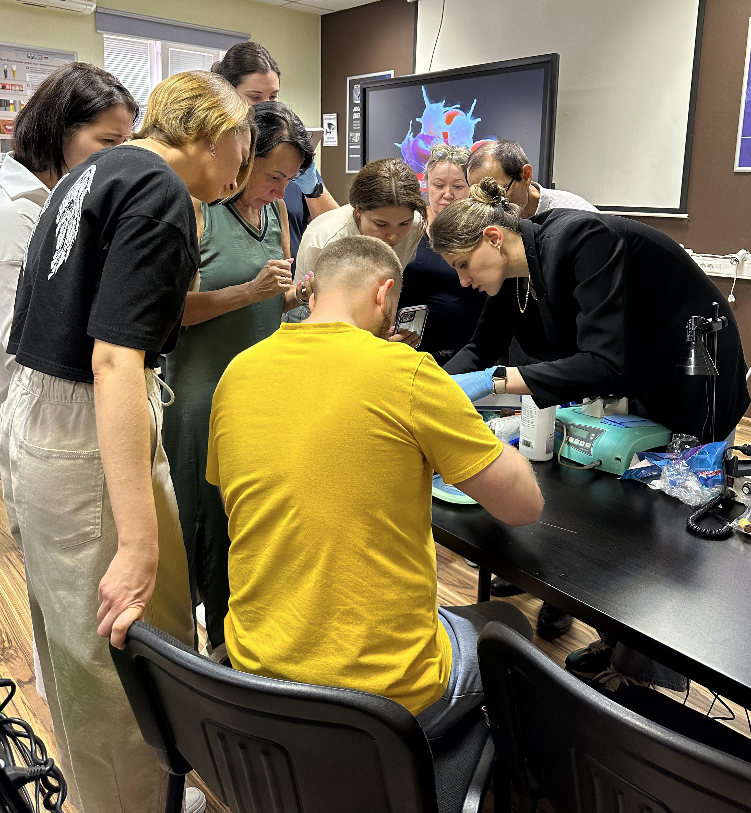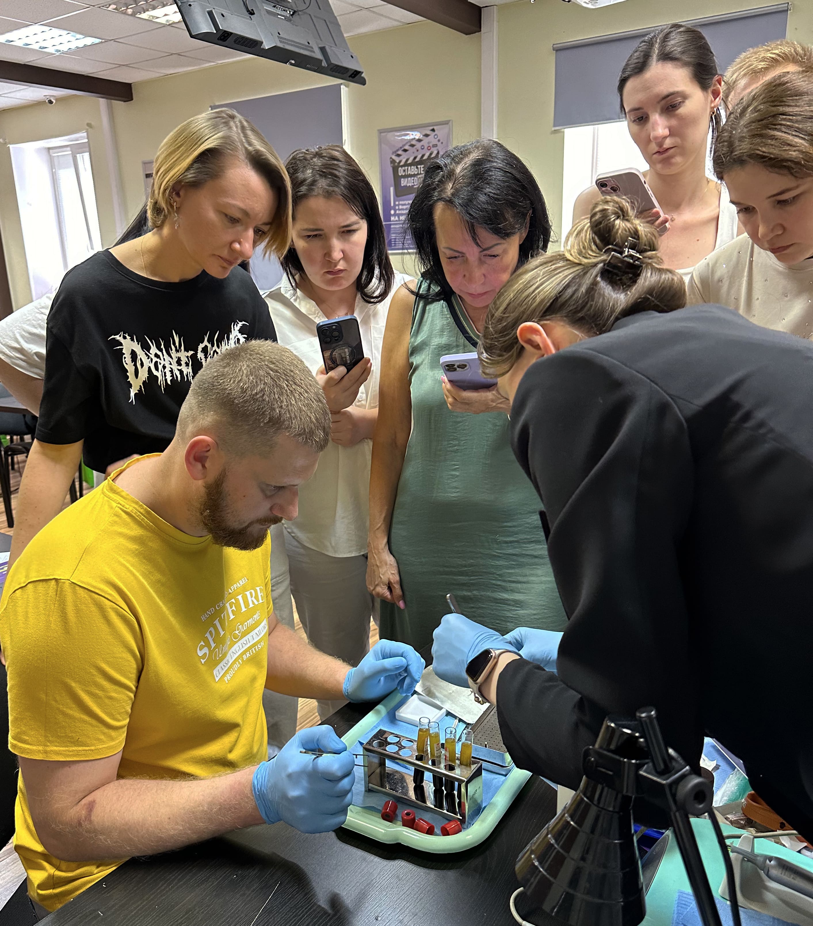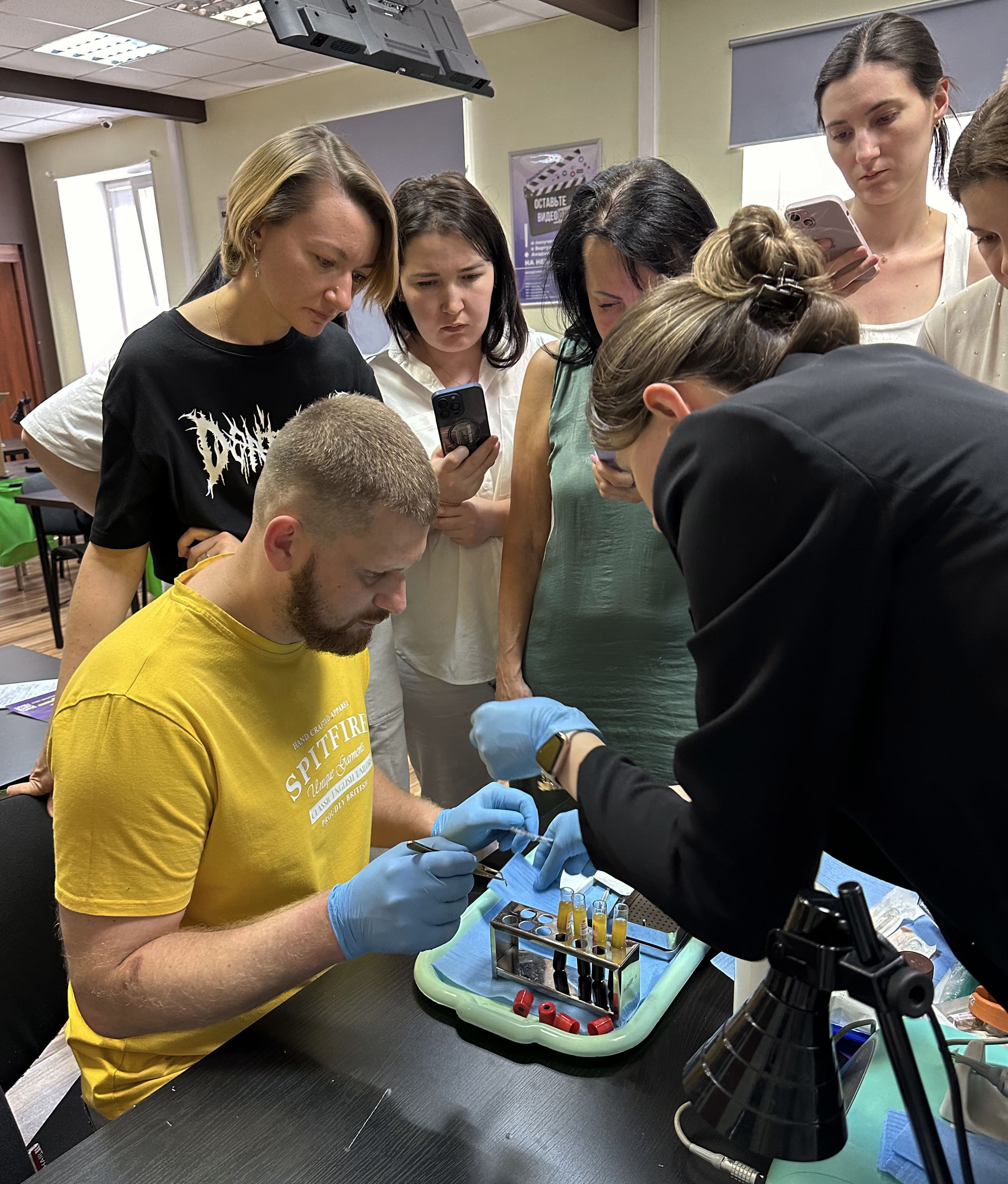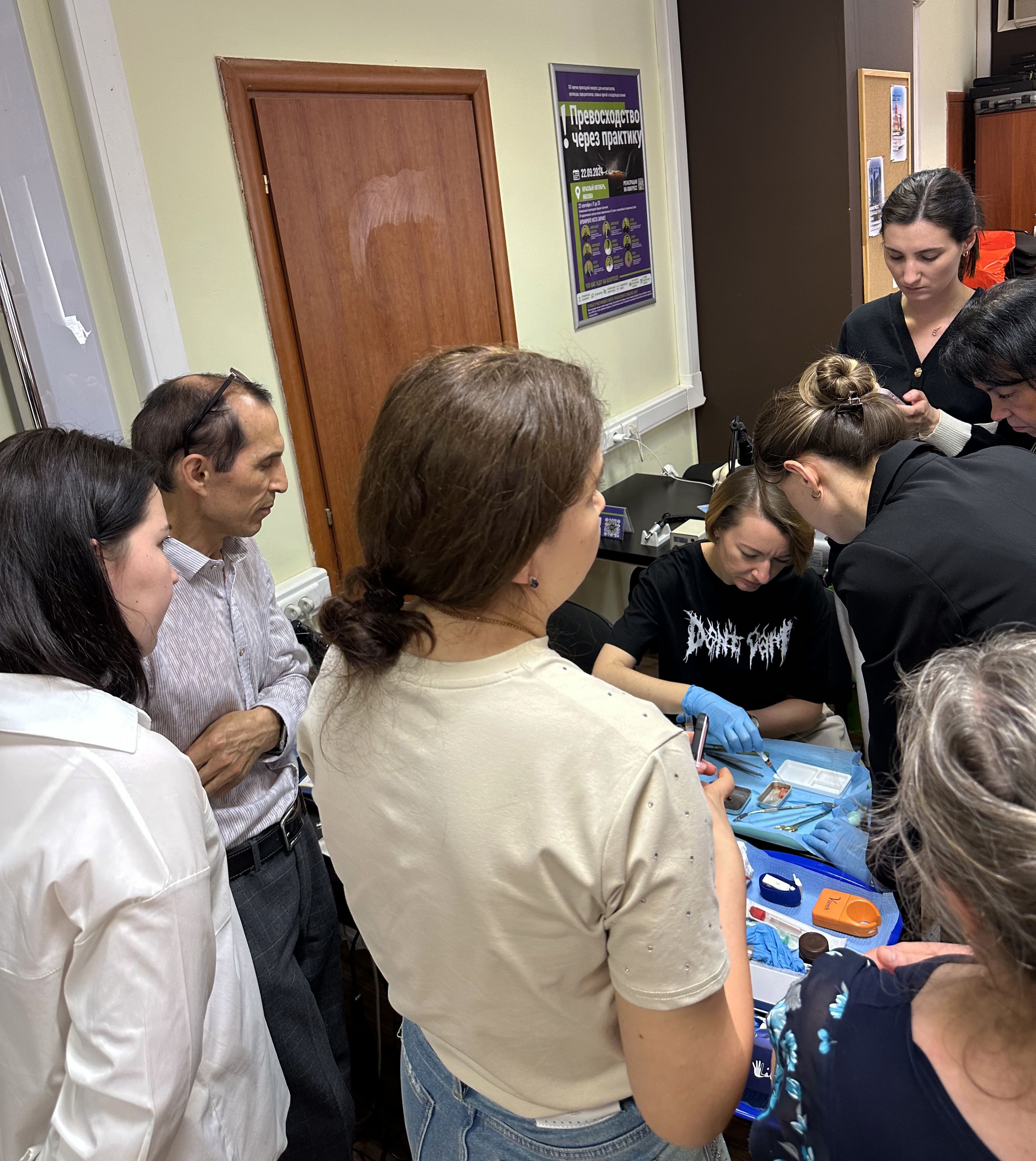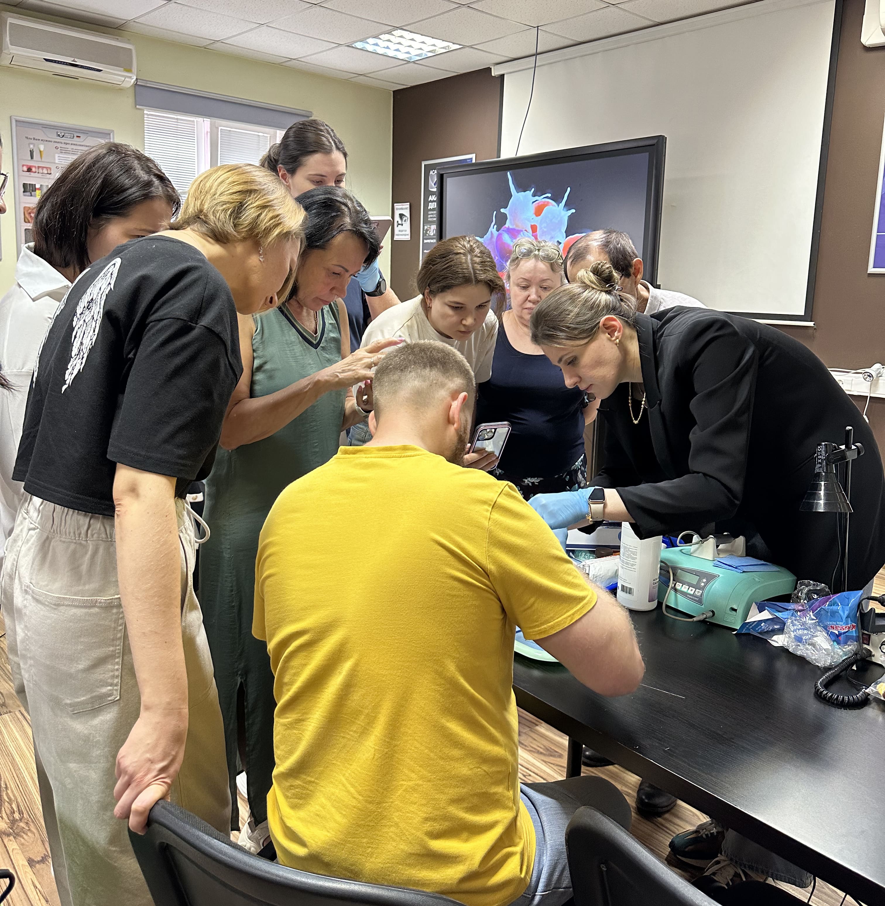 Курс включал авторский мастер-класс с подробным анализом современного оборудования и расходных материалов для получения плазмы. Доктора ознакомились с полными протоколами центрифугирования, формирования мембран, получения фибриновых сгустков и фибринового клея.