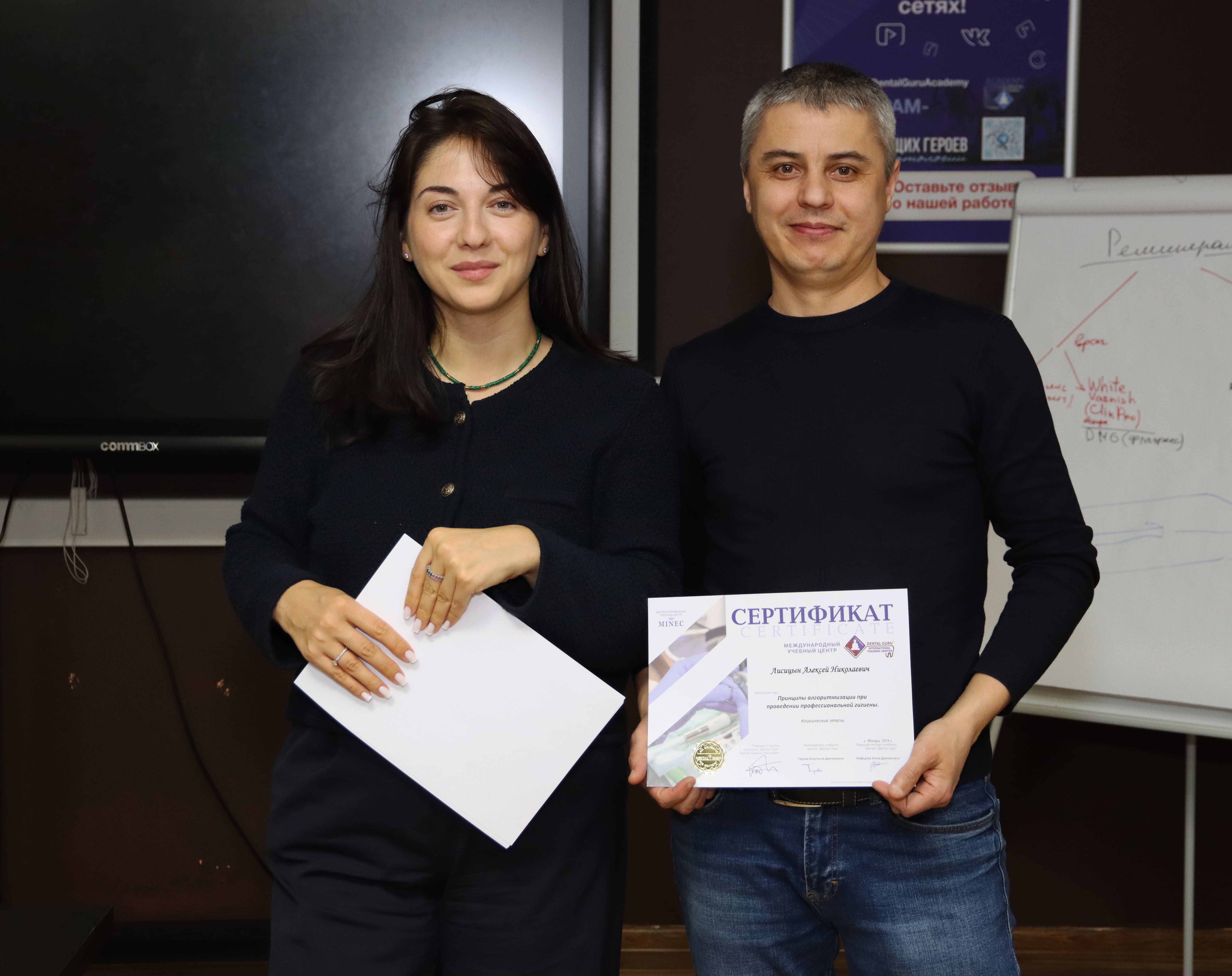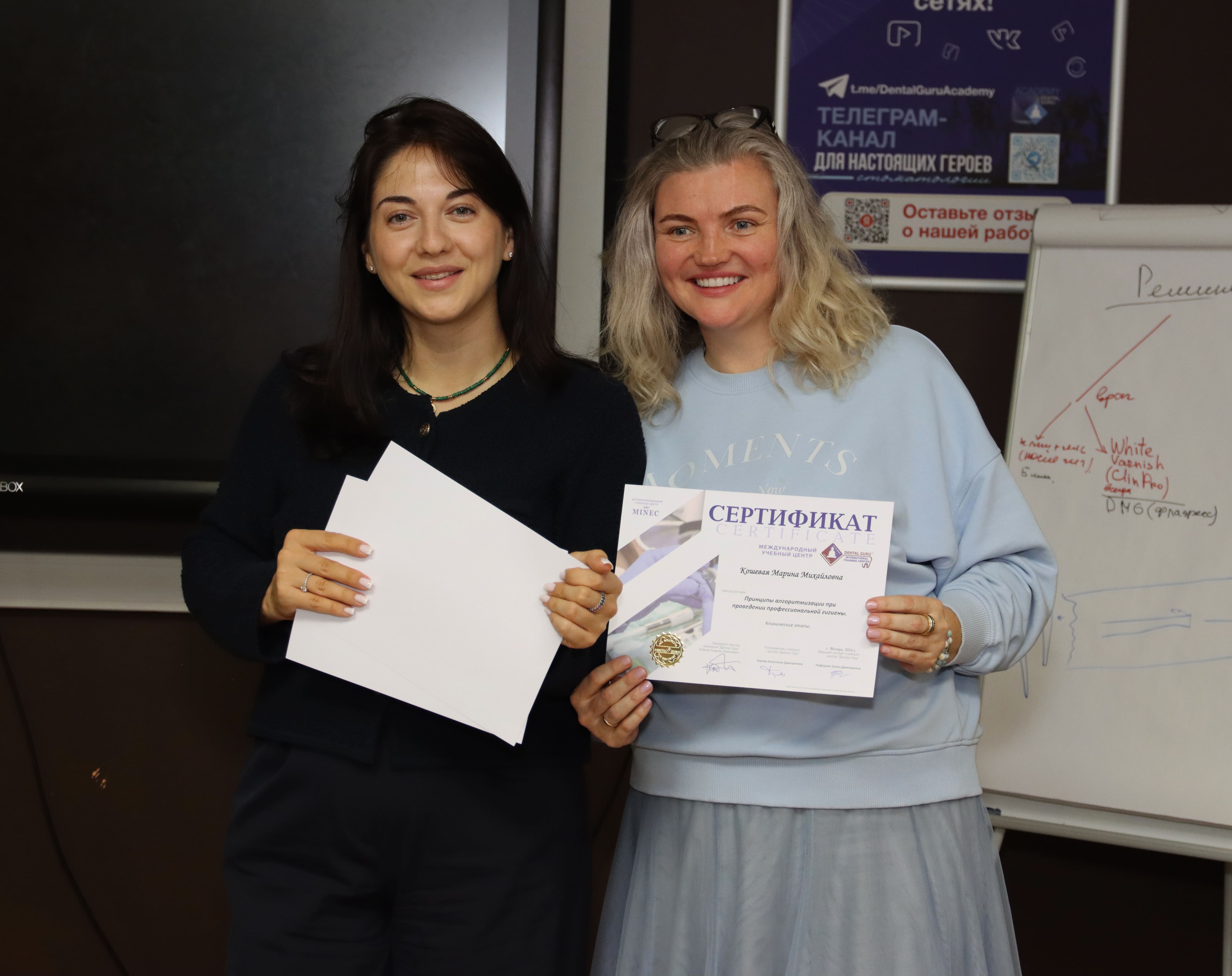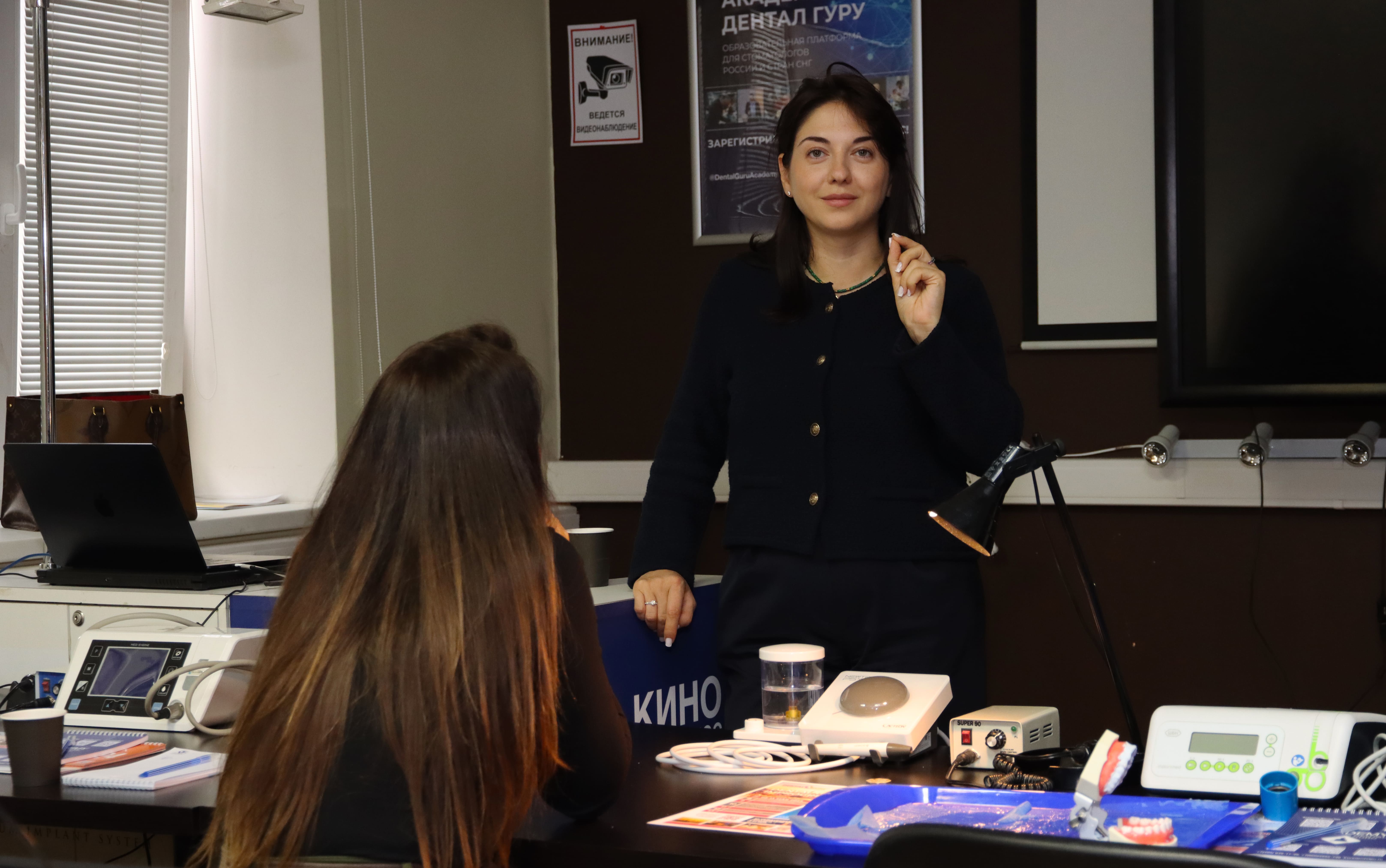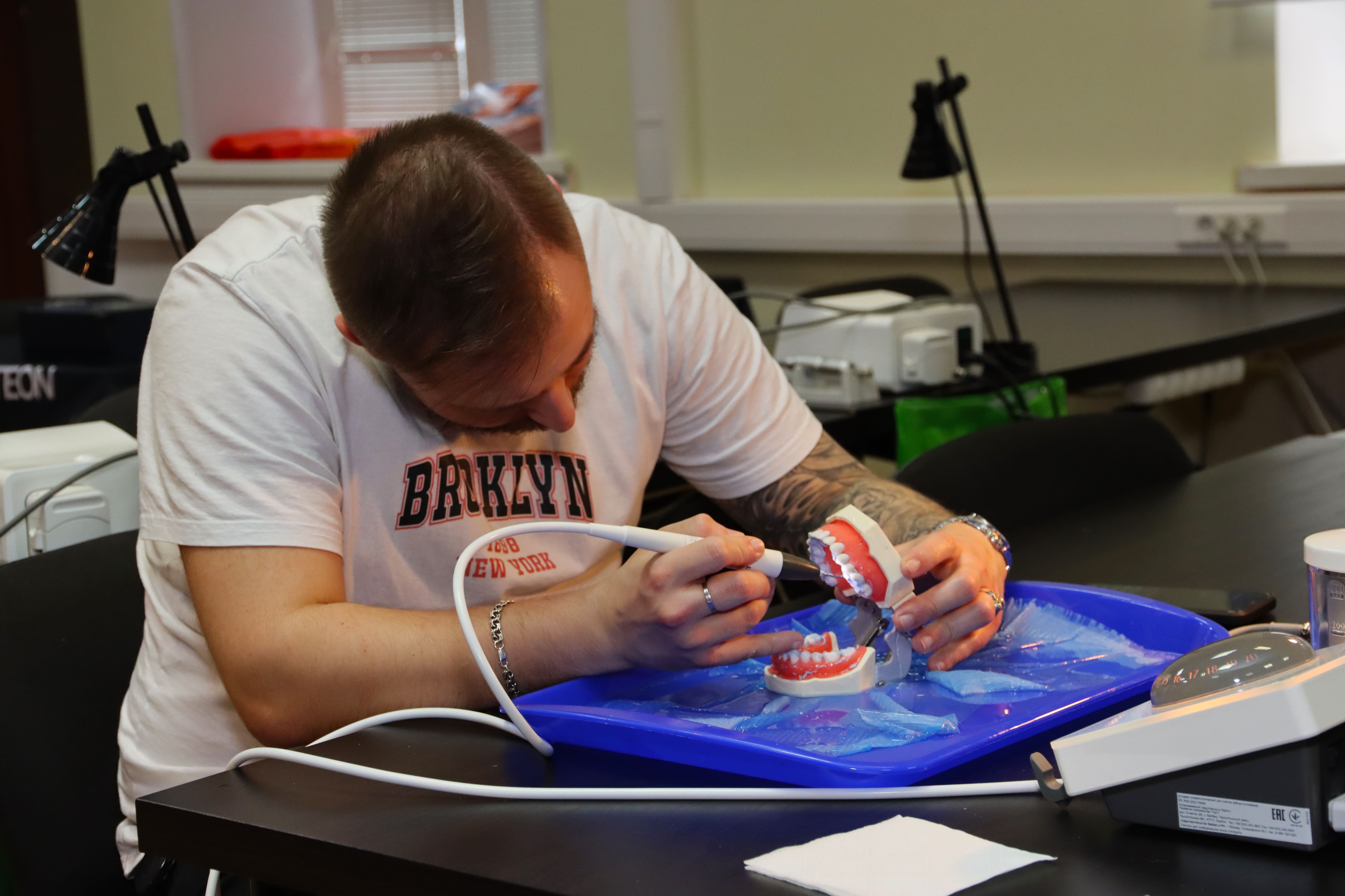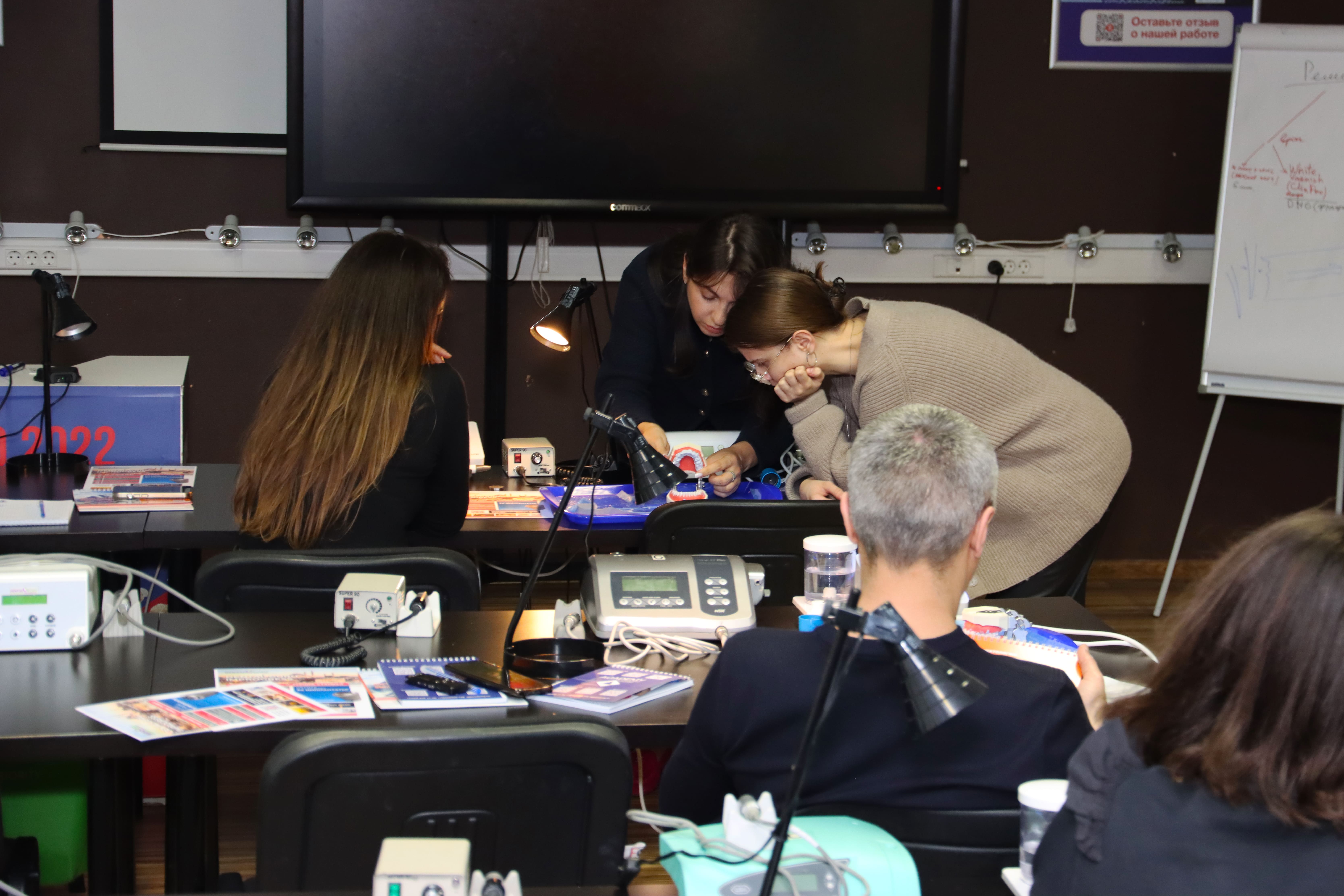 На практической части курса доктора научились использовать аппарат airflow и ультразвуковой скеллер с различными насадками для каждой группы и поверхности зубов, а также узнали секреты дополнительных продаж и рекомендации от опытного специалиста по ценообразованию профессиональной гигиены полости рта.