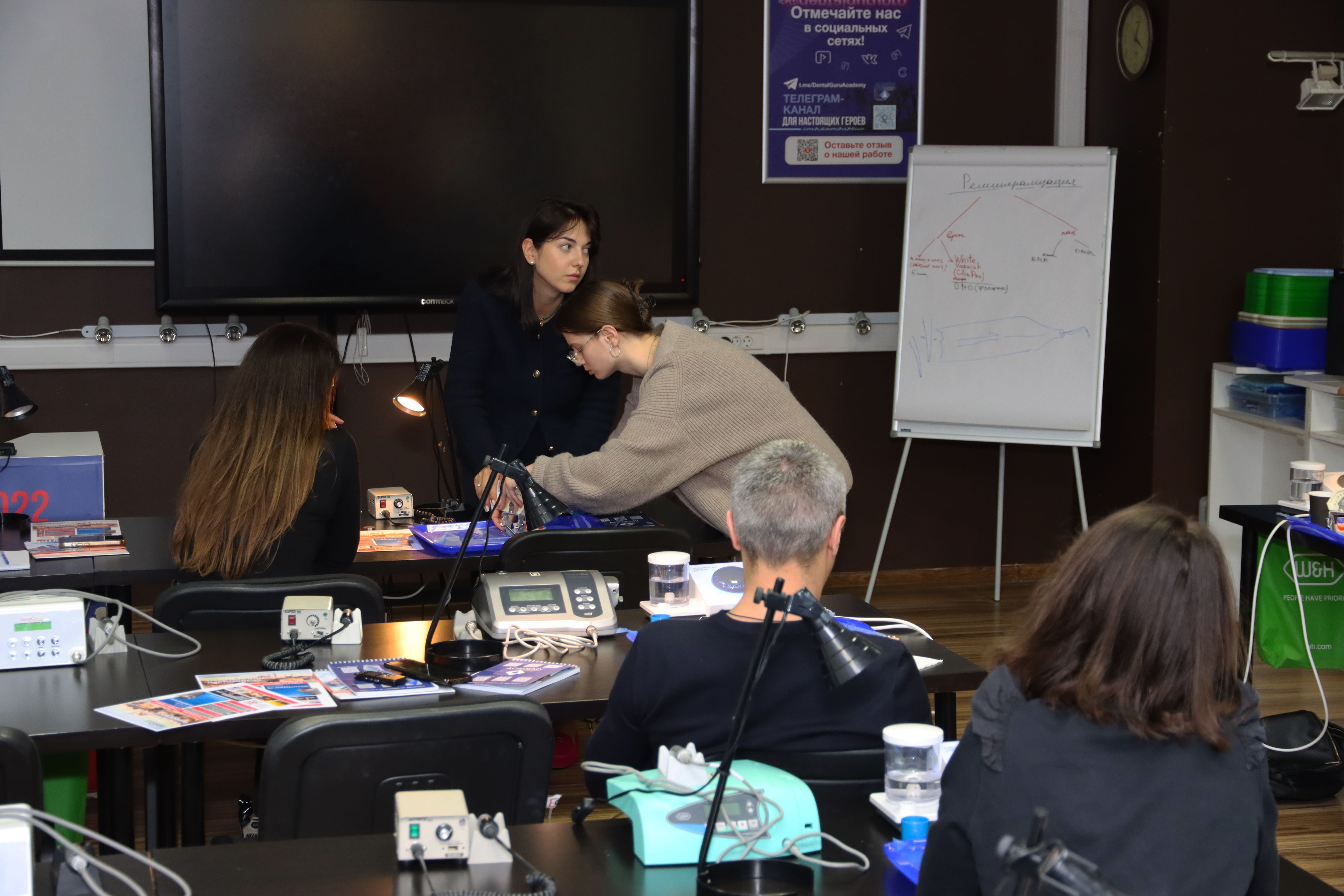 В ходе курса доктора изучили формы и причины заболеваний гингивита и пародонтита, узнали при каких заболеваниях слизистой оболочки полости рта лучше перенести прием, как правильно выбрать насадки, какая продолжительность работы является безопасной и какие материалы нужно выбрать для проведения процедуры.