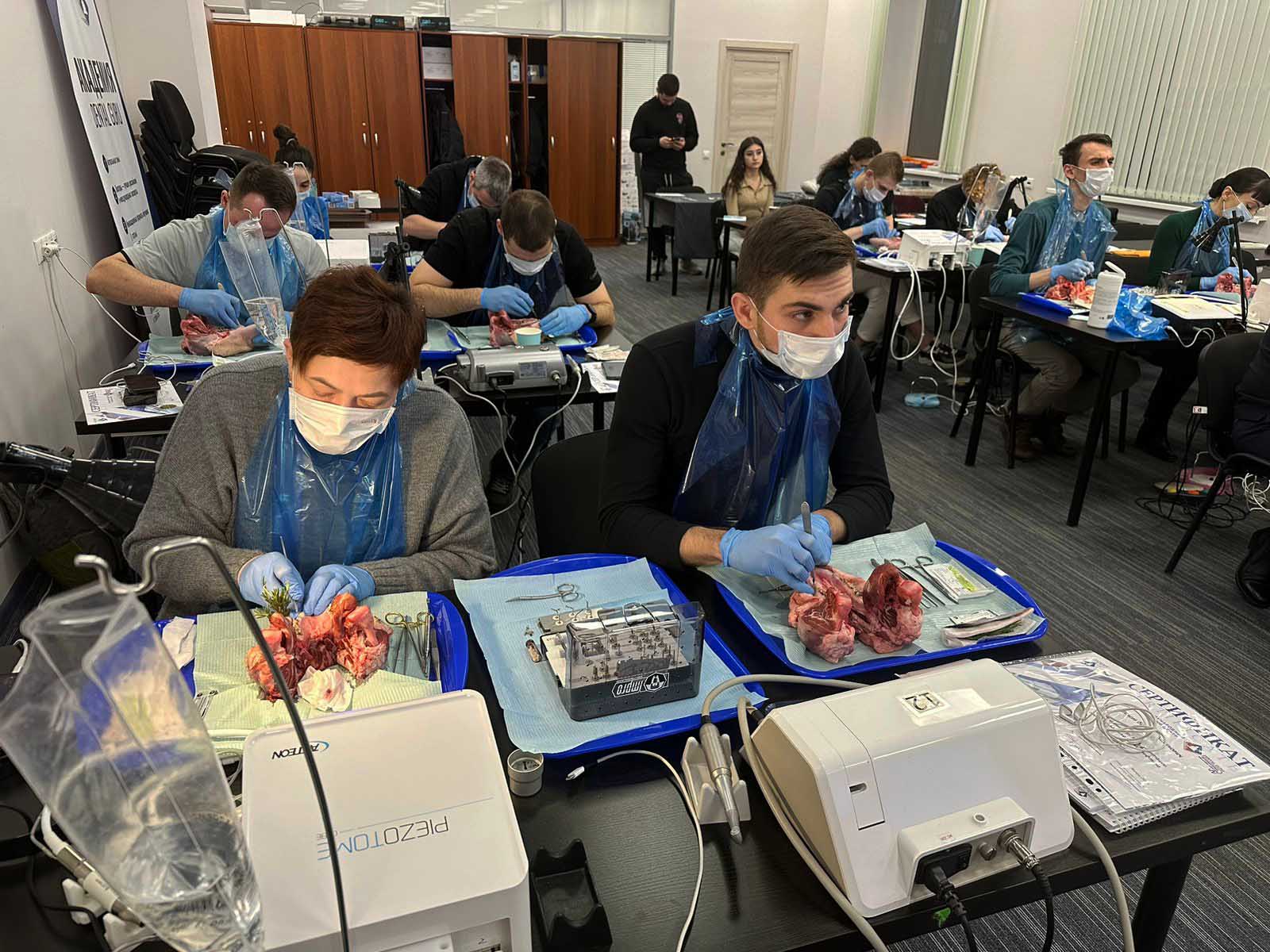 Участники курса под руководством лектора анализировали различные методики проведения костной пластики и синус-лифтинга, их особенности и тонкости применения на практике. Усовершенствовали свои навыки в проведении расщепление гребня по классической методике с установкой имплантата при разных типах костной ткани, отработали методики проведения трансальвеолярного синус-лифтинга с помощью остеотомов и трепанов и учились формировать латеральное окно на куриных яйцах.