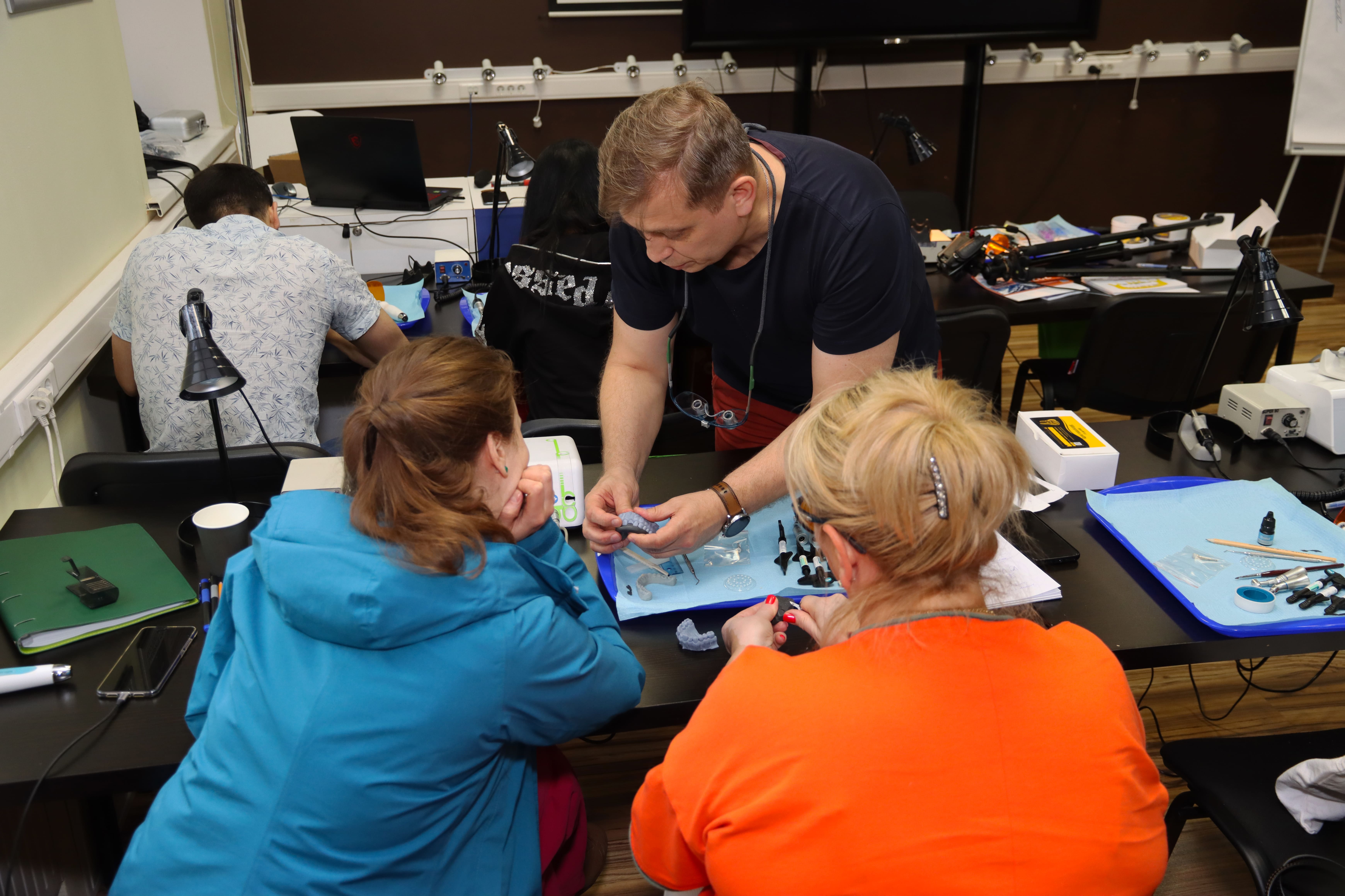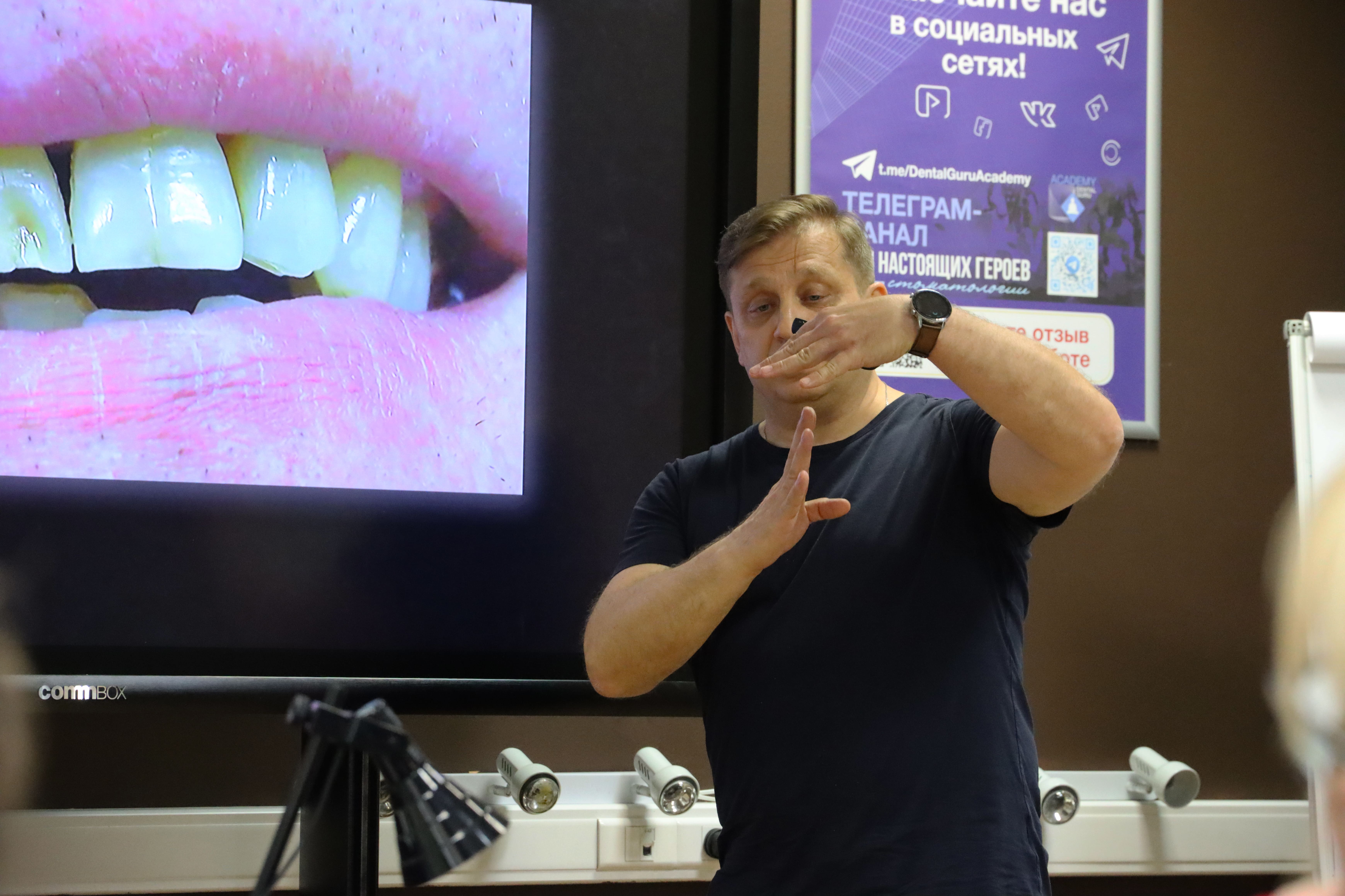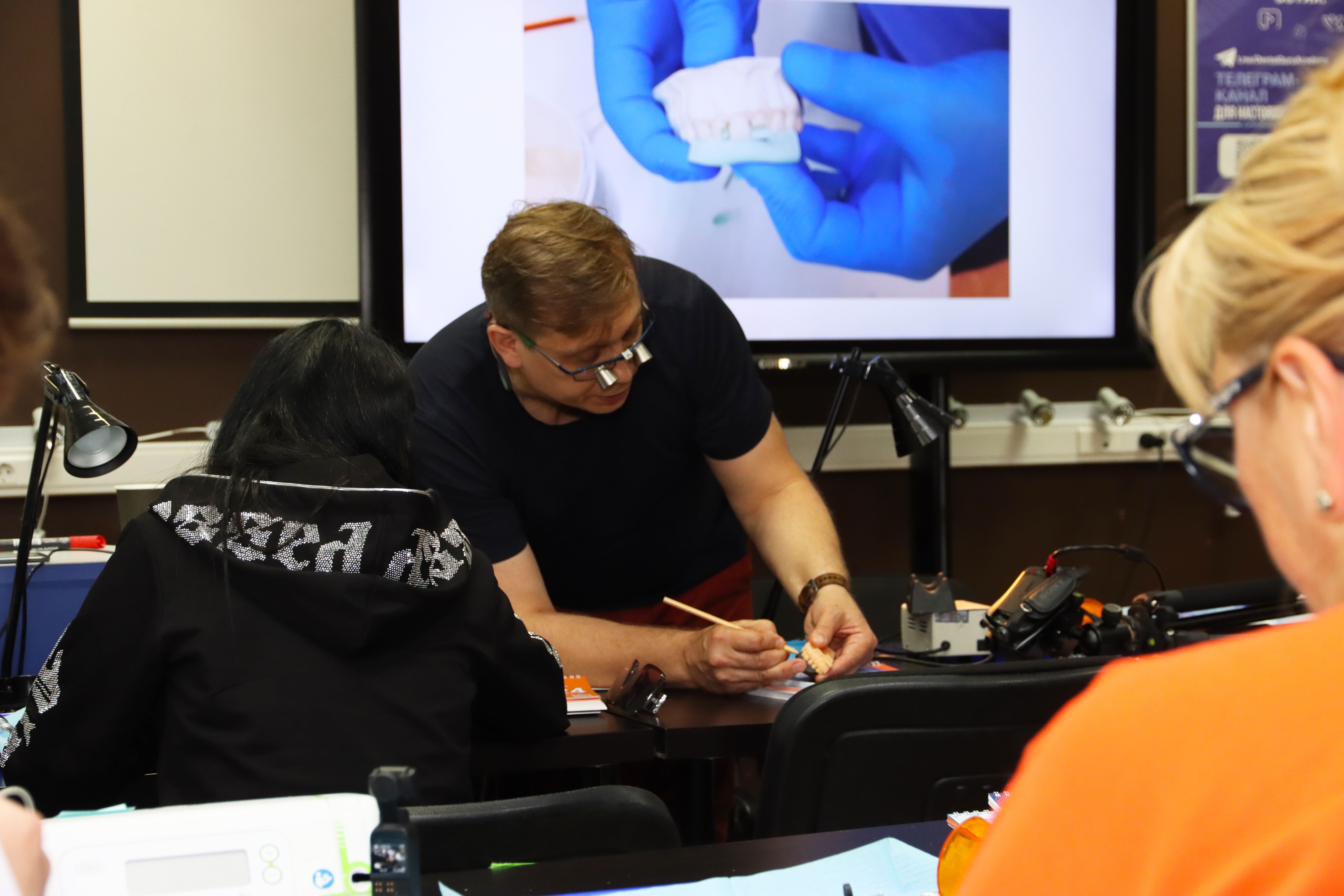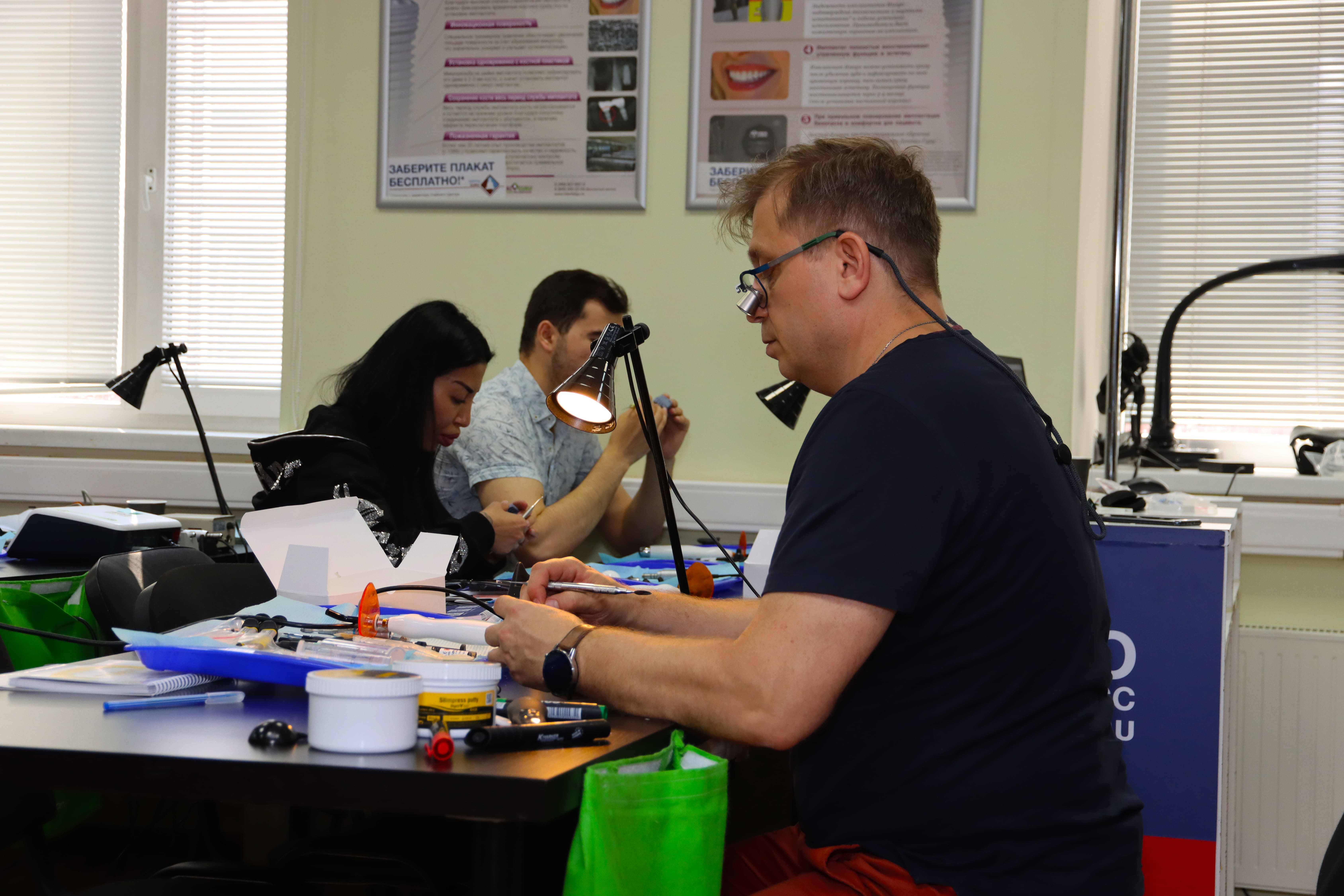 Во время курса доктора получили пошаговую методику реставрации зубов при дистопированном положении и при тесном расположении в зубном ряду. Узнали, как создается четкий контактный пункт и что такое «правило черных треугольников». Изучили поэтапные шаги реставрации после ортопедического лечения. Научились восстанавливать улыбку при сниженной высоте зубного ряда и при синдроме стираемости.