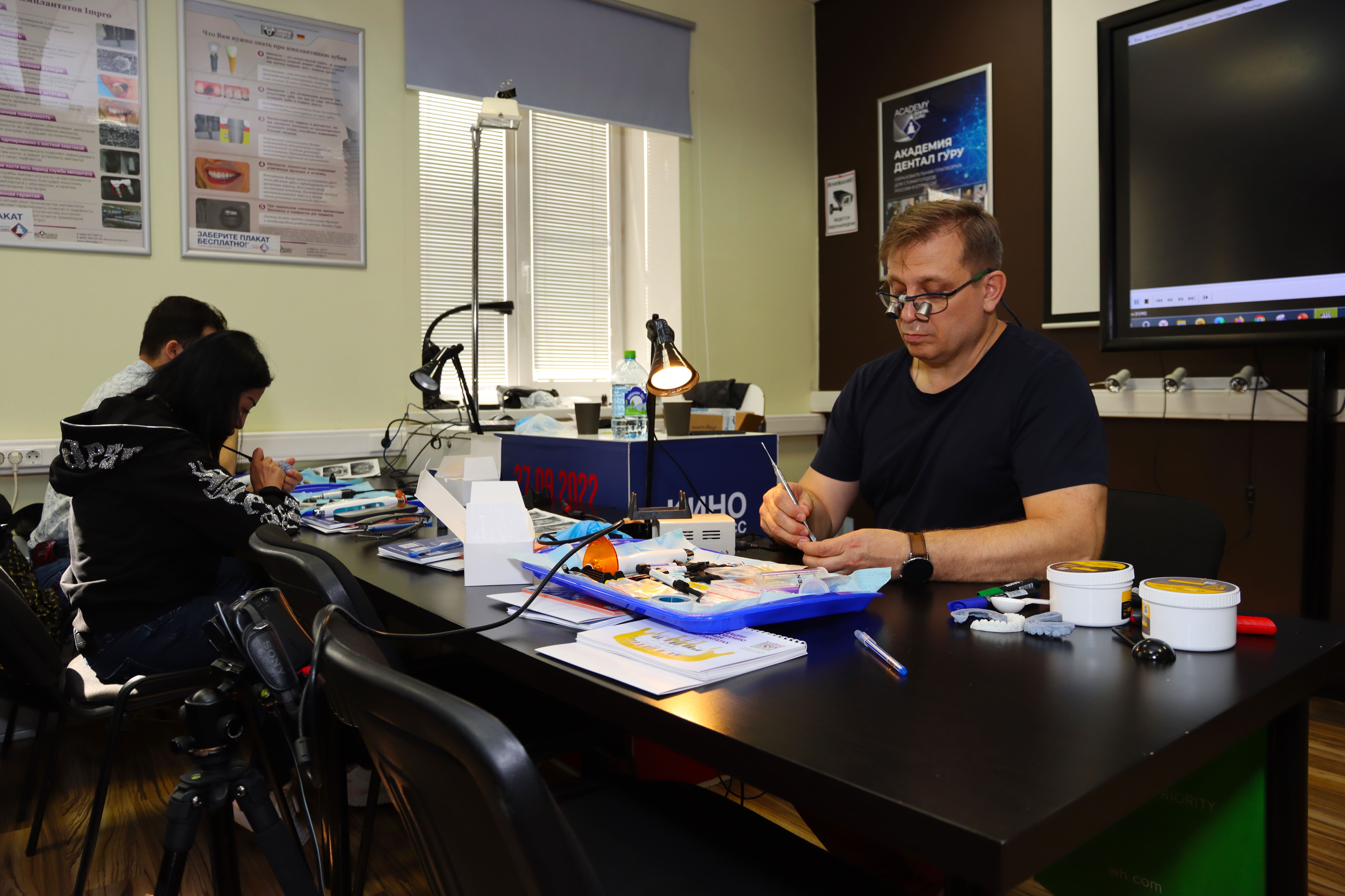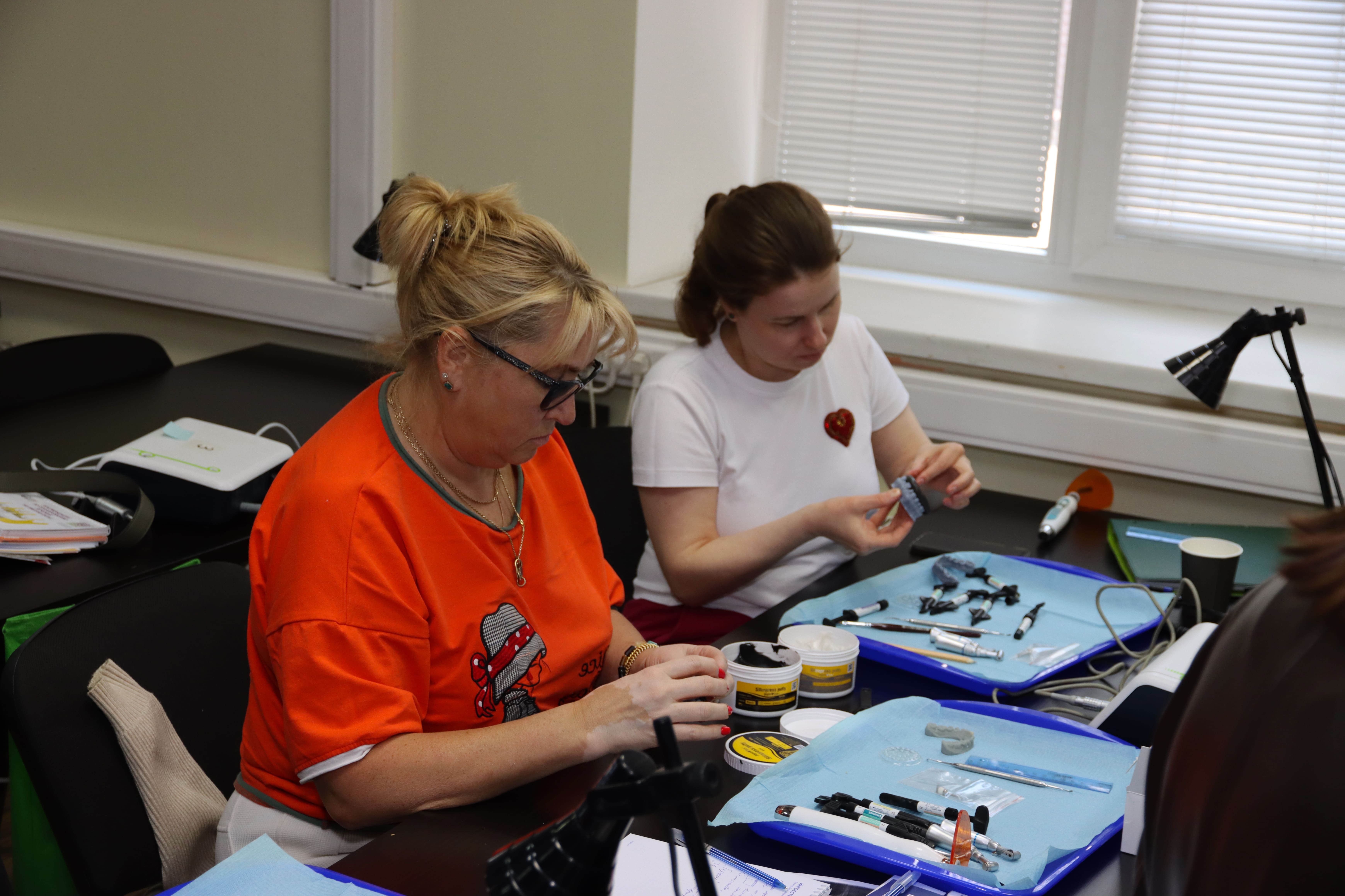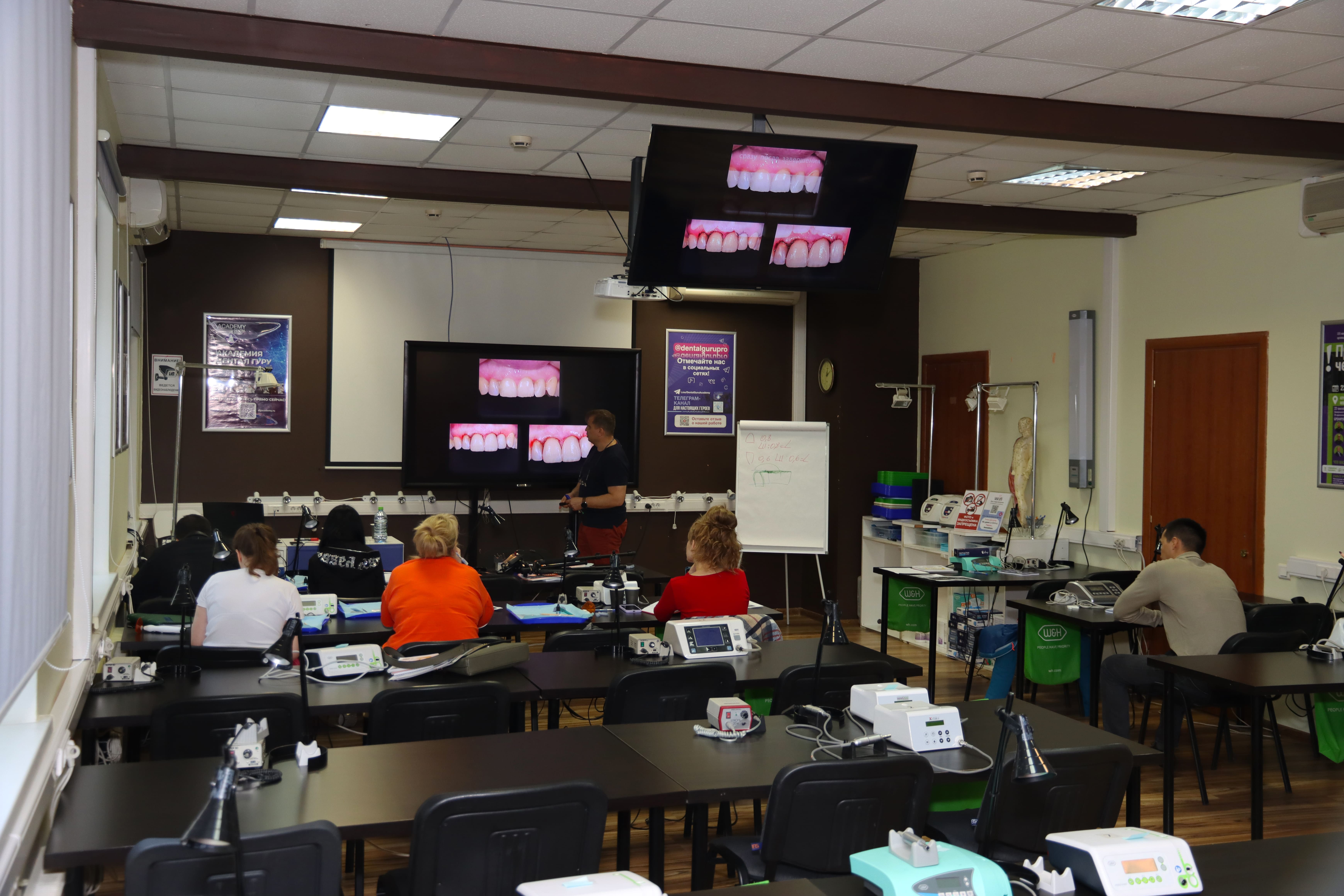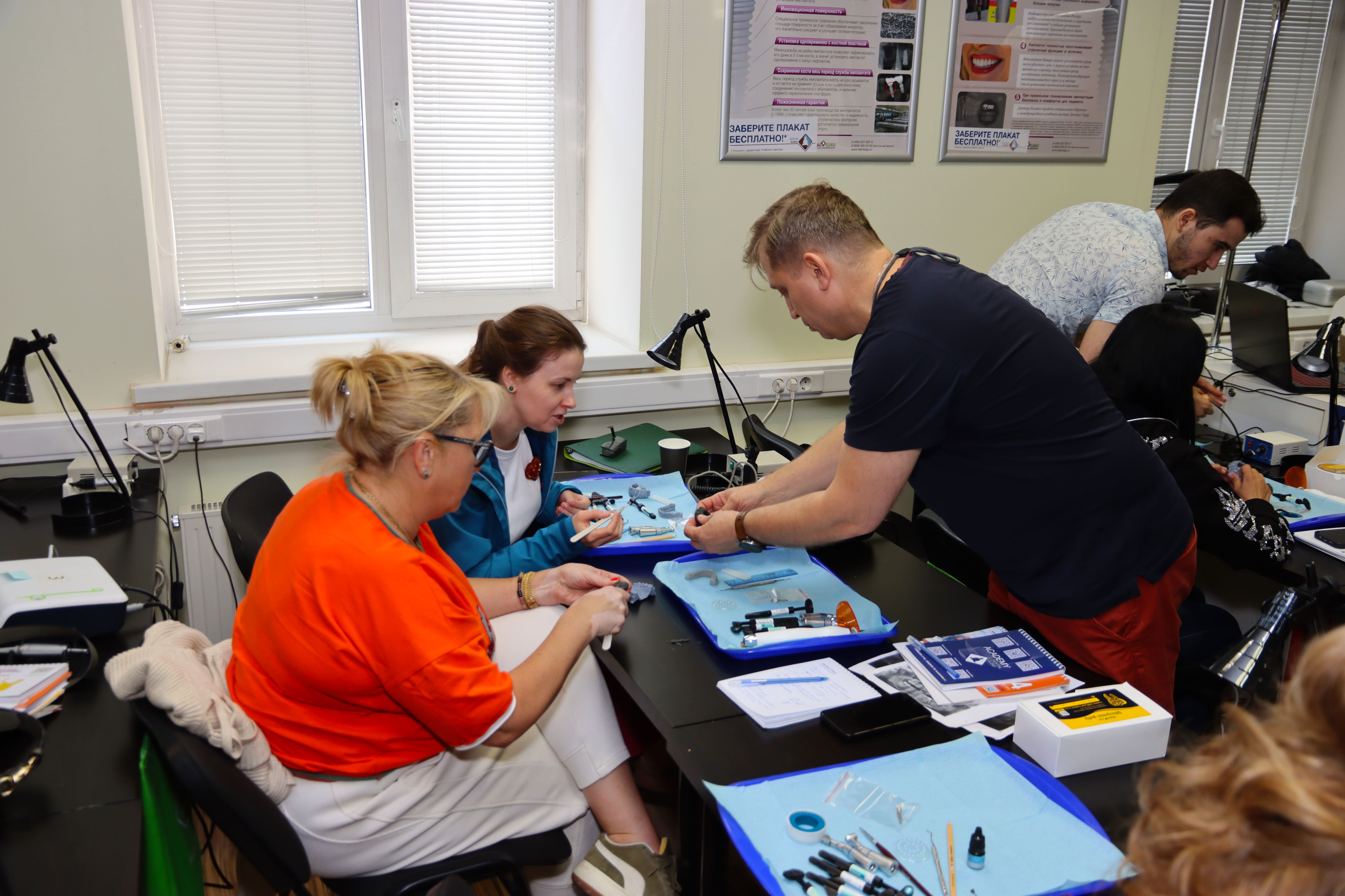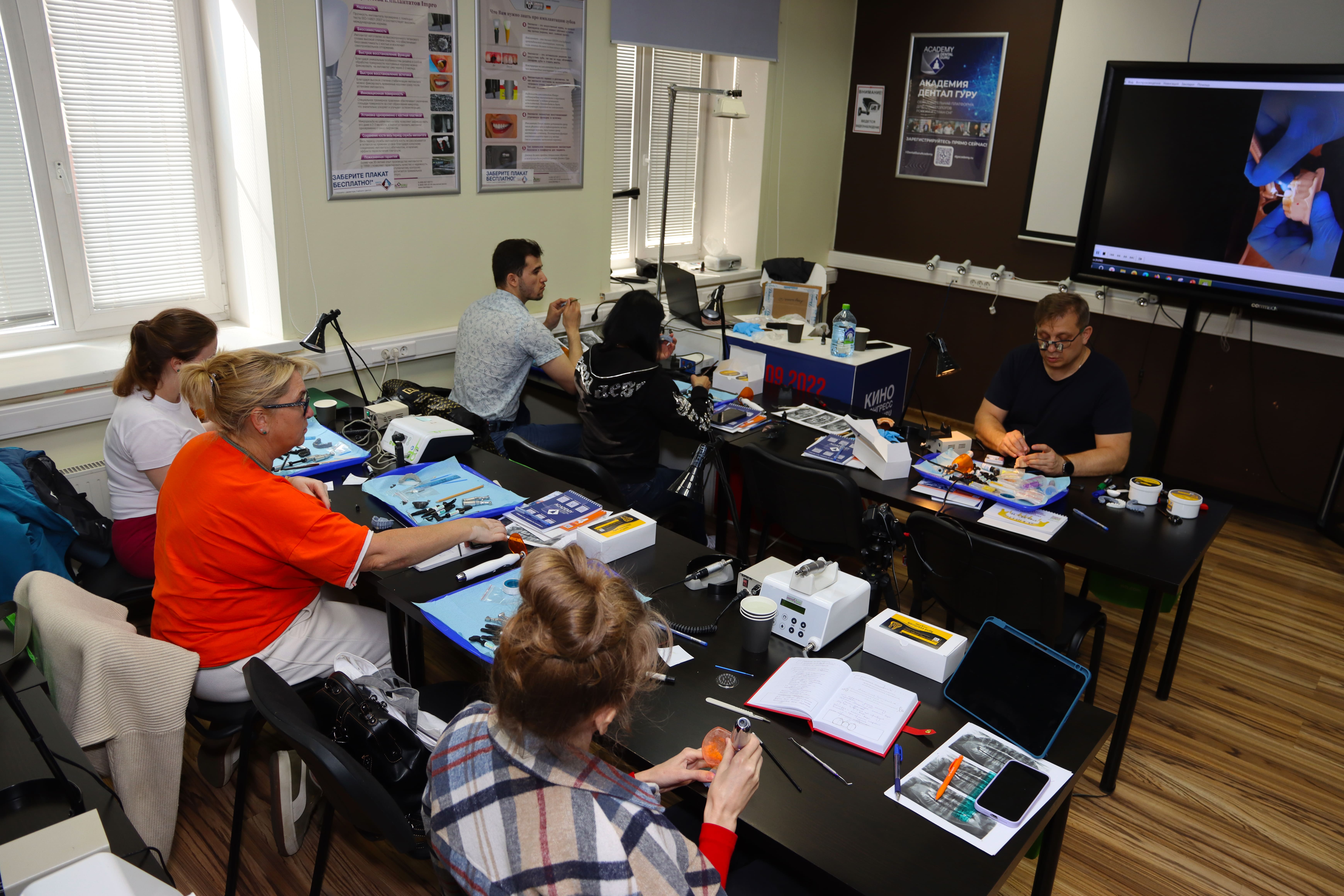 Во время курса доктора получили пошаговую методику реставрации зубов при дистопированном положении и при тесном расположении в зубном ряду. Узнали, как создается четкий контактный пункт и что такое «правило черных треугольников». Изучили поэтапные шаги реставрации после ортопедического лечения. Научились восстанавливать улыбку при сниженной высоте зубного ряда и при синдроме стираемости.