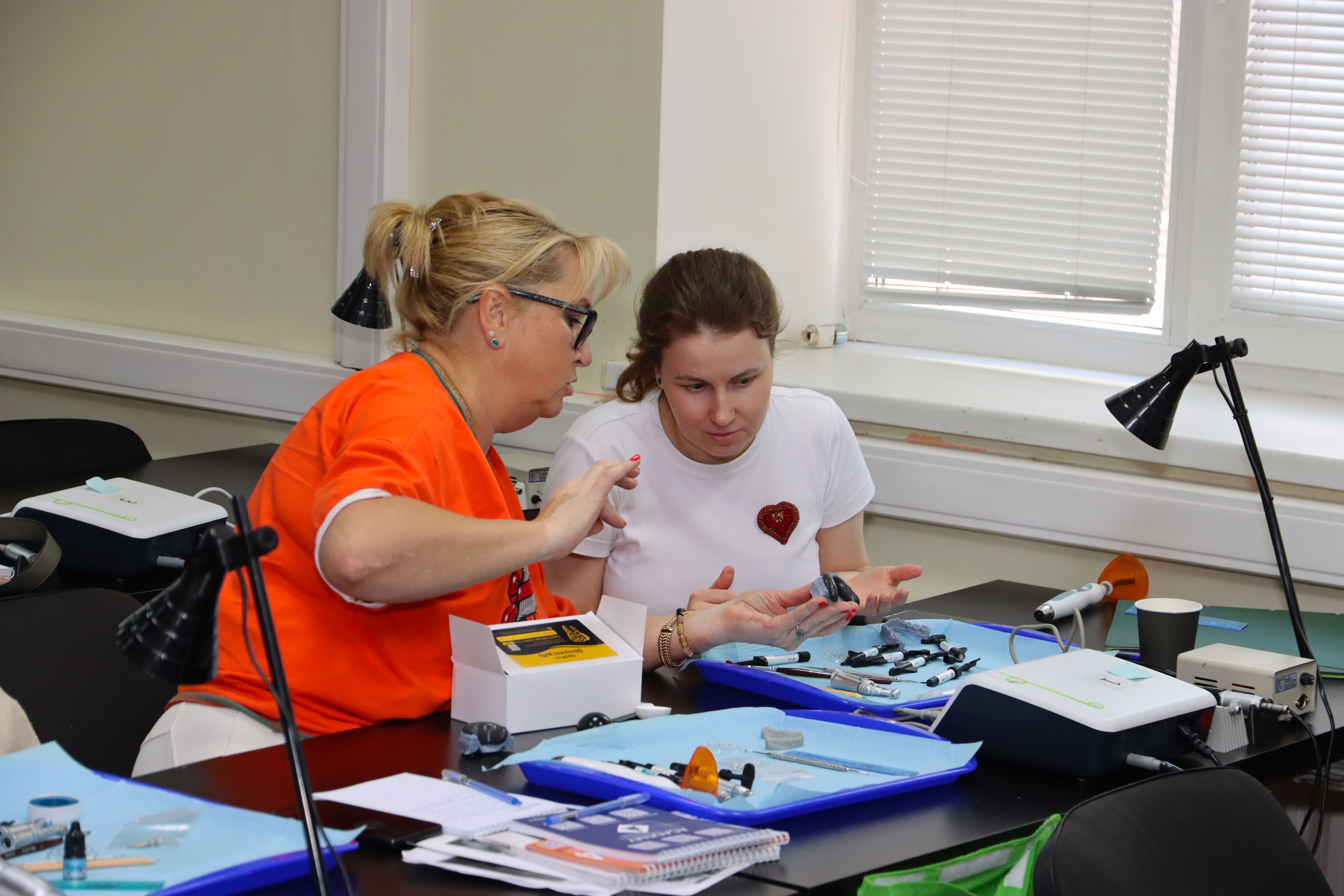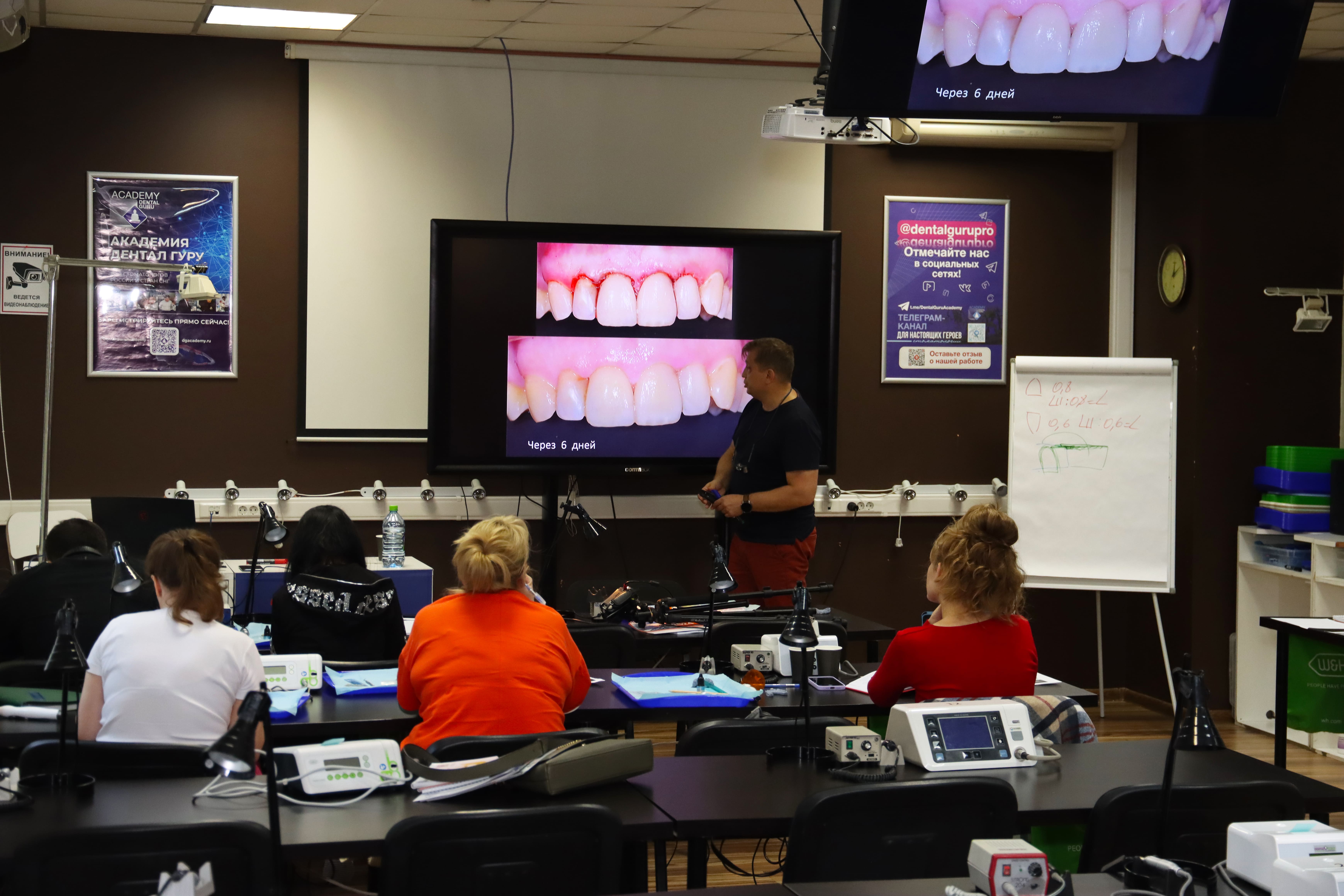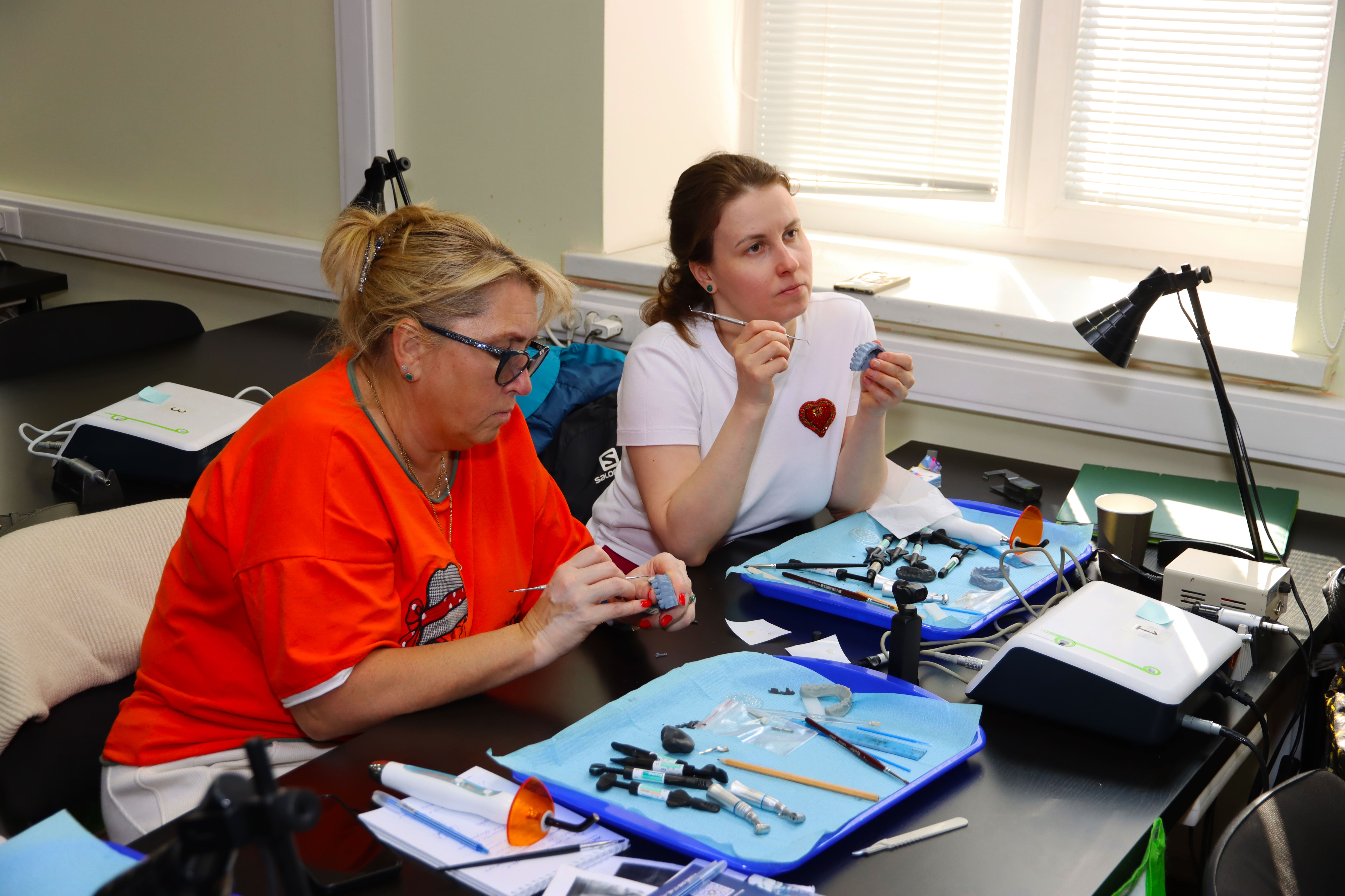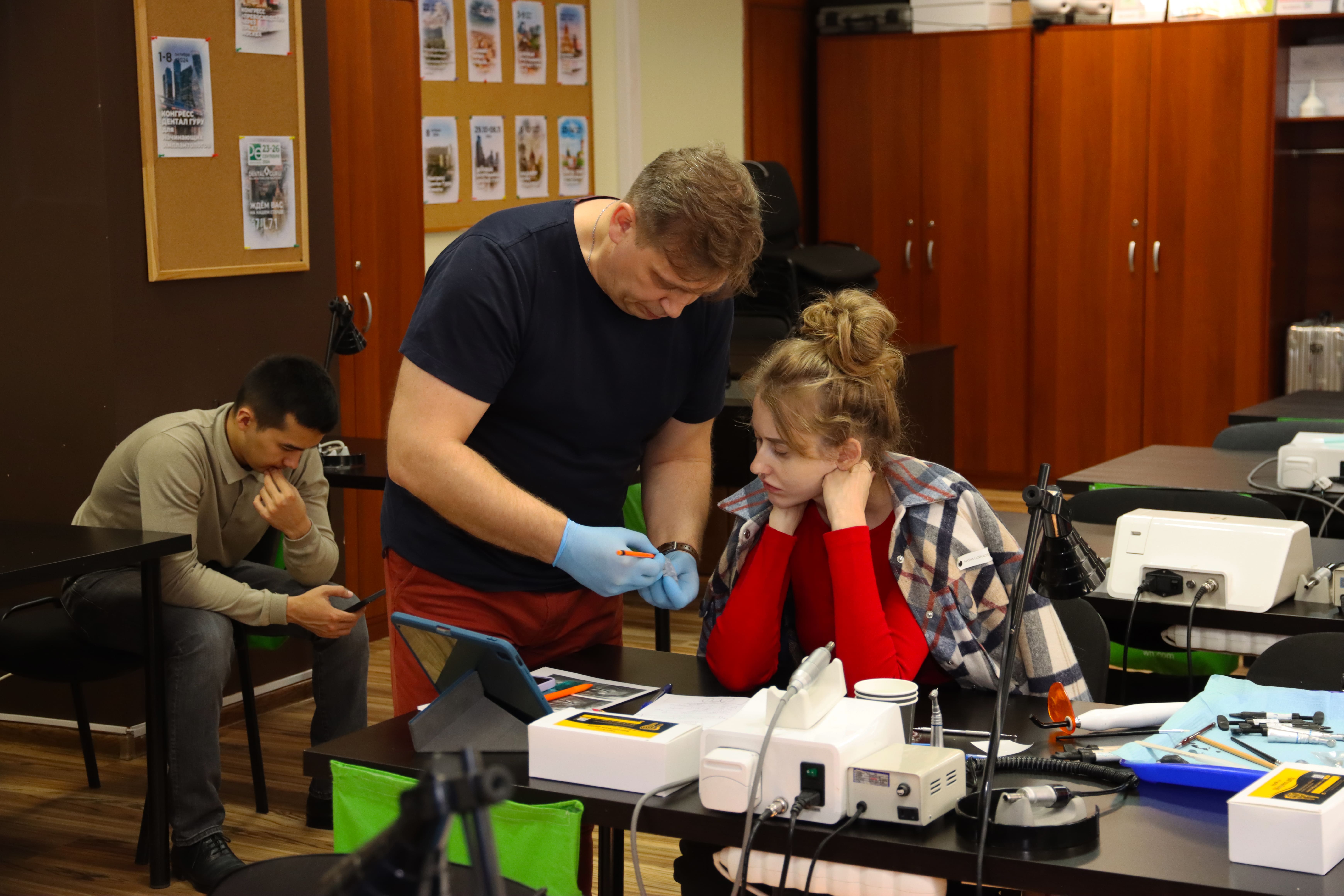 Во время курса доктора получили пошаговую методику реставрации зубов при дистопированном положении и при тесном расположении в зубном ряду. Узнали, как создается четкий контактный пункт и что такое «правило черных треугольников». Изучили поэтапные шаги реставрации после ортопедического лечения. Научились восстанавливать улыбку при сниженной высоте зубного ряда и при синдроме стираемости.