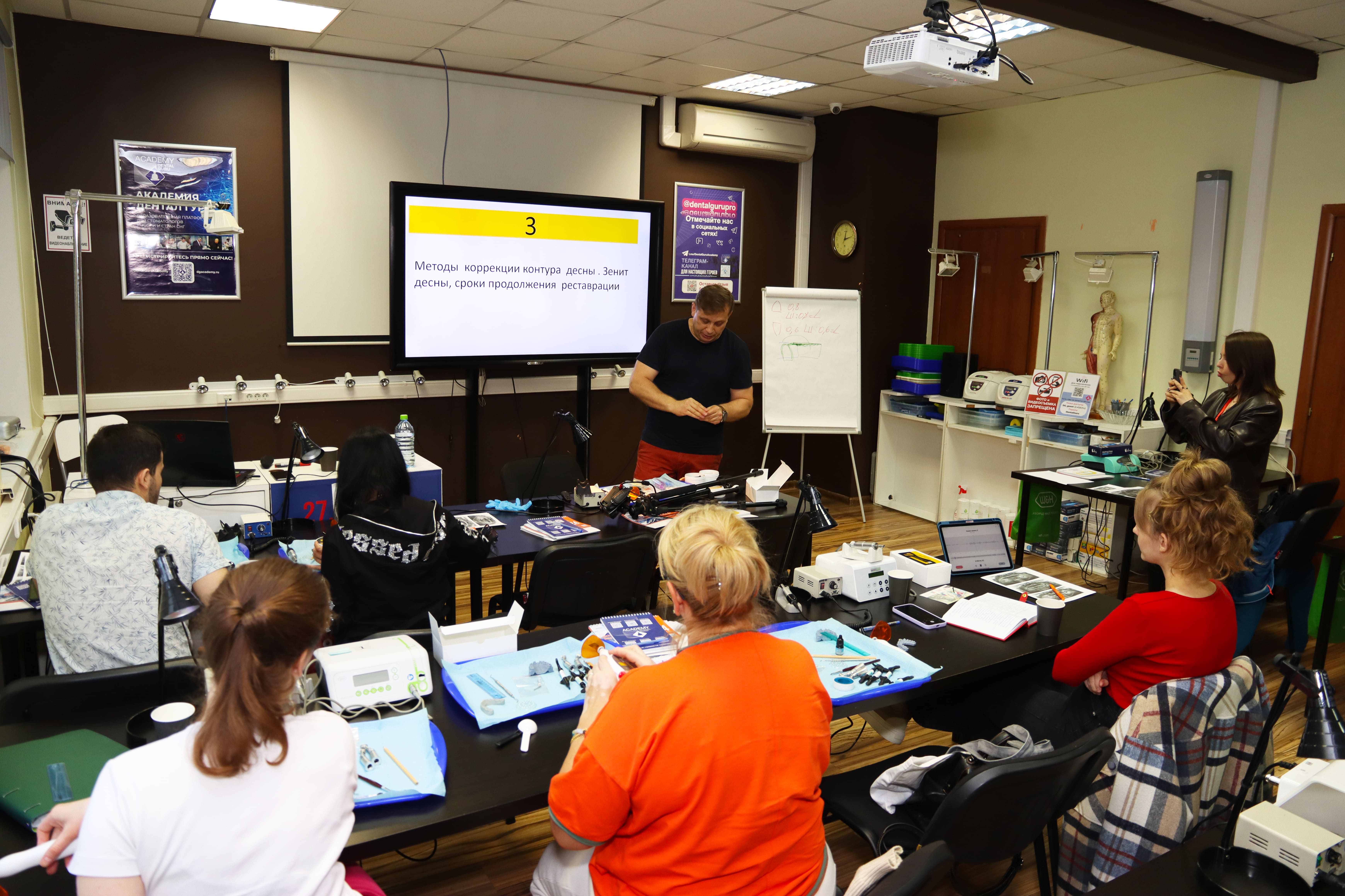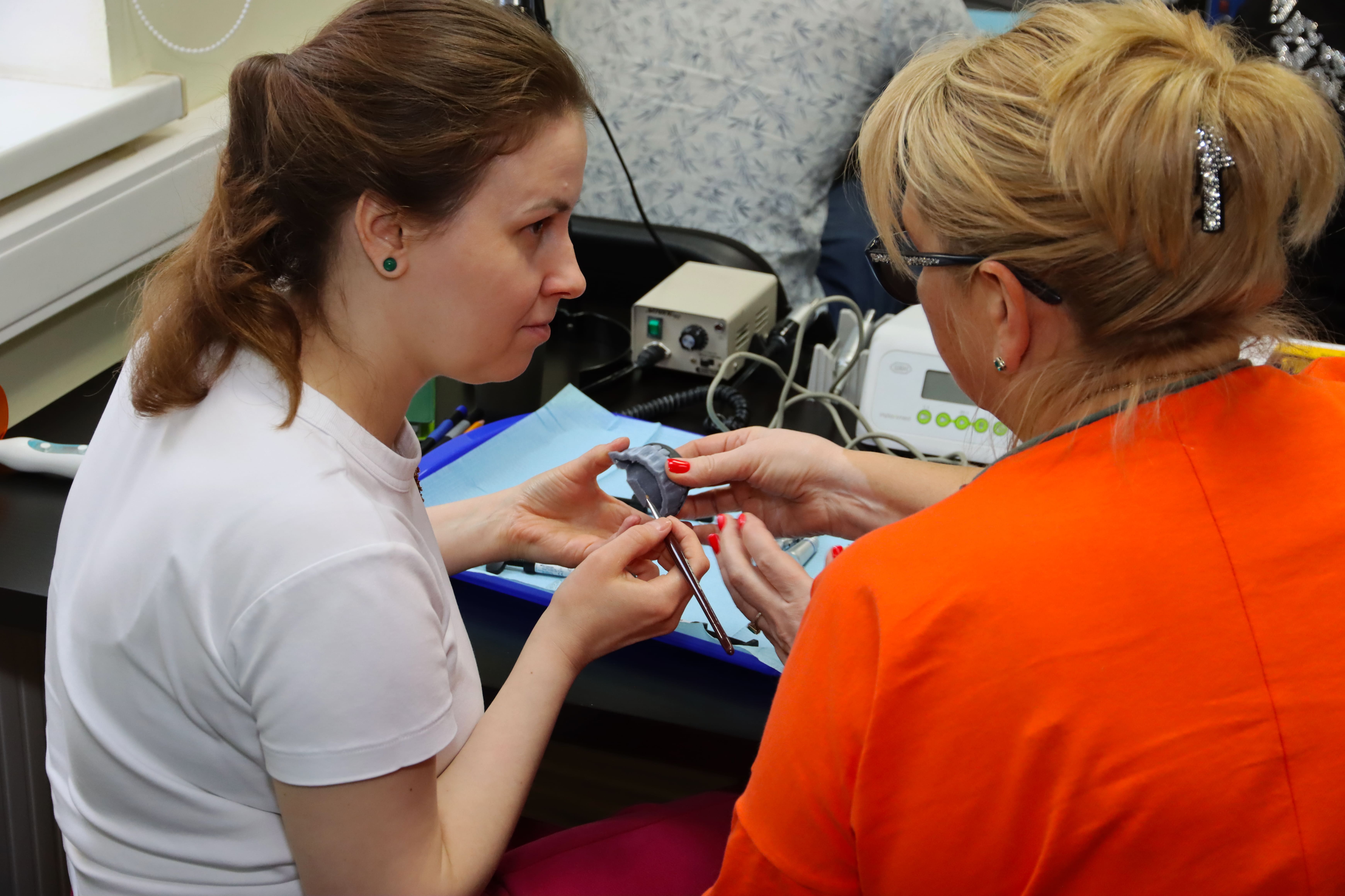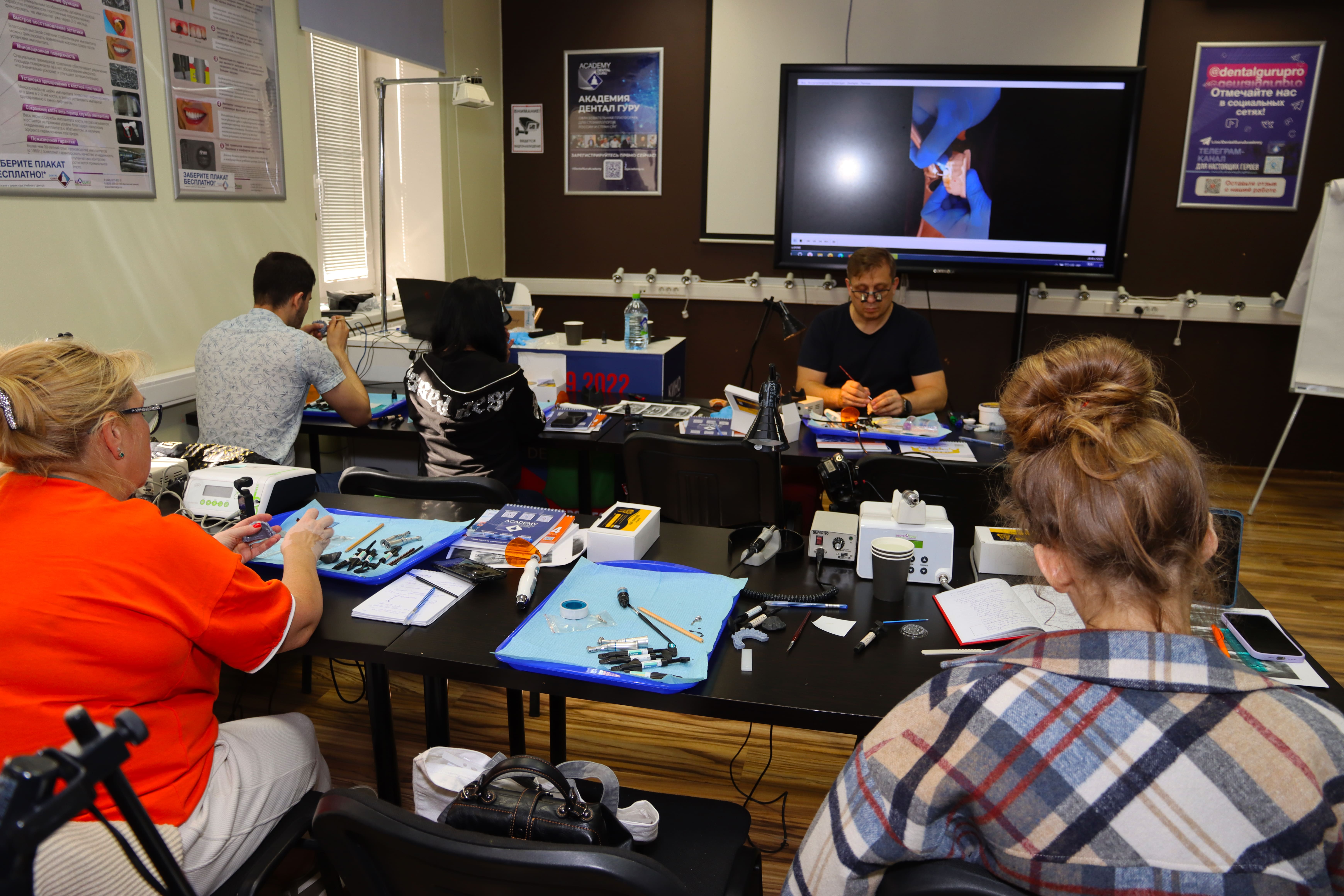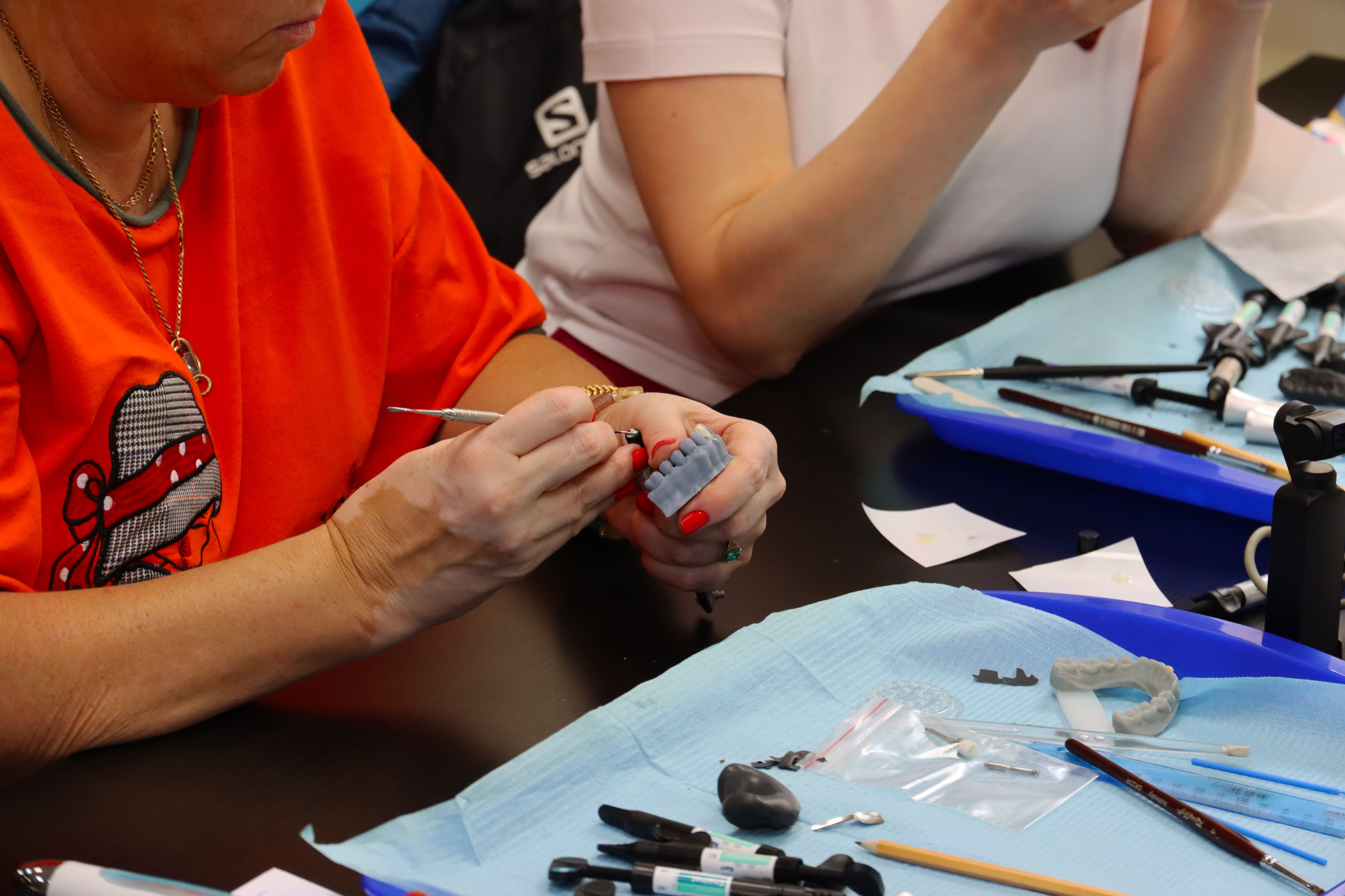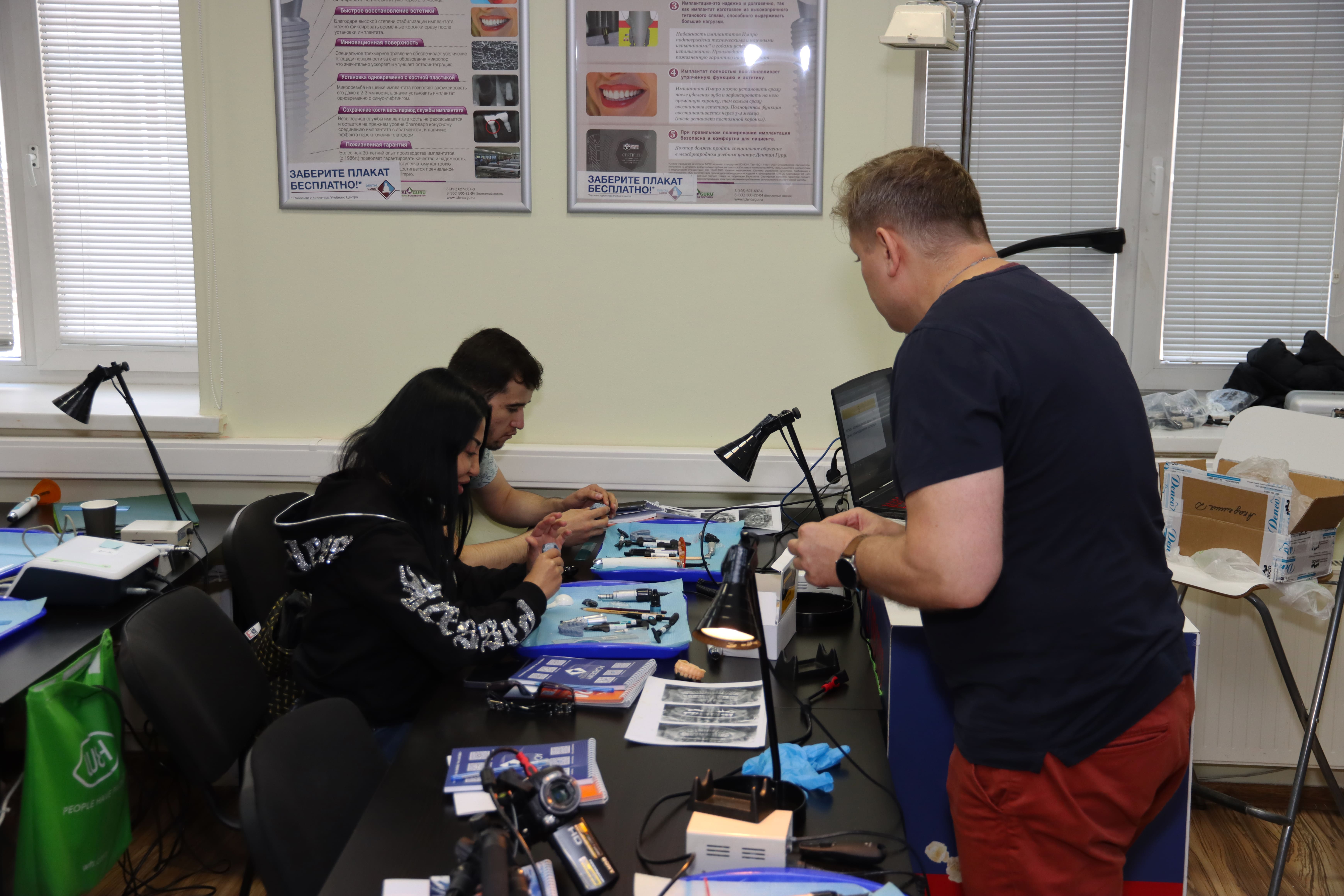 Во время курса доктора получили пошаговую методику реставрации зубов при дистопированном положении и при тесном расположении в зубном ряду. Узнали, как создается четкий контактный пункт и что такое «правило черных треугольников». Изучили поэтапные шаги реставрации после ортопедического лечения. Научились восстанавливать улыбку при сниженной высоте зубного ряда и при синдроме стираемости.