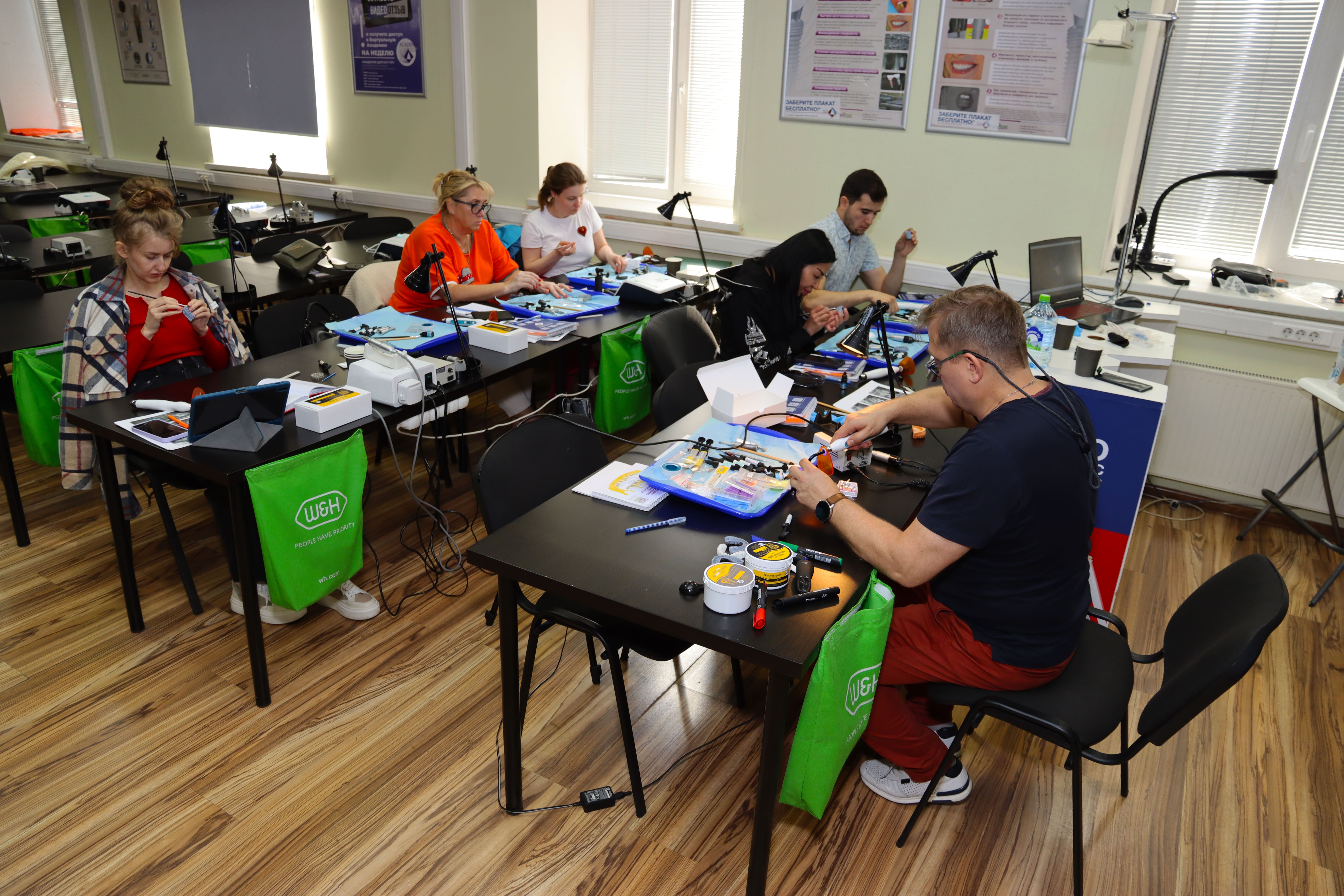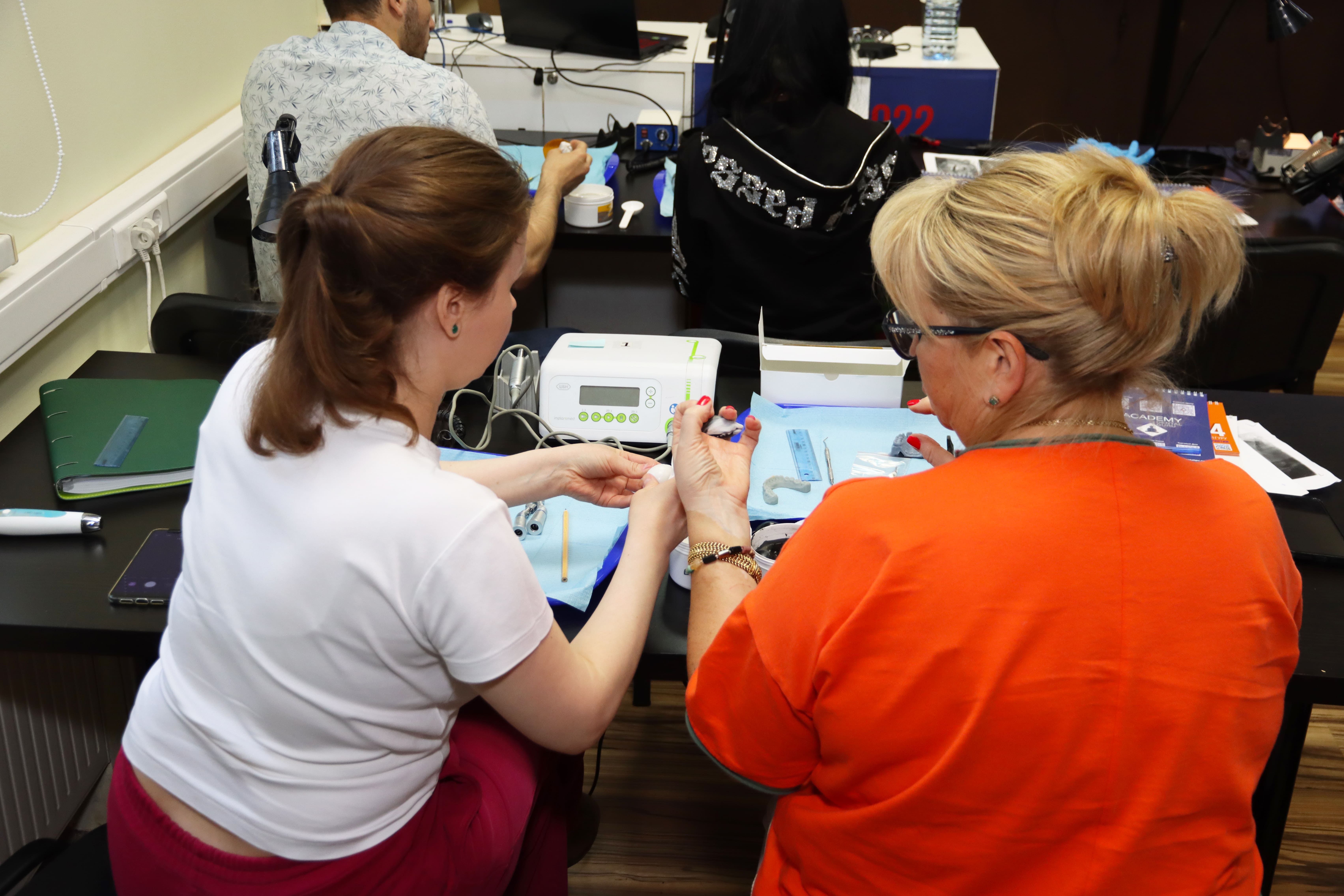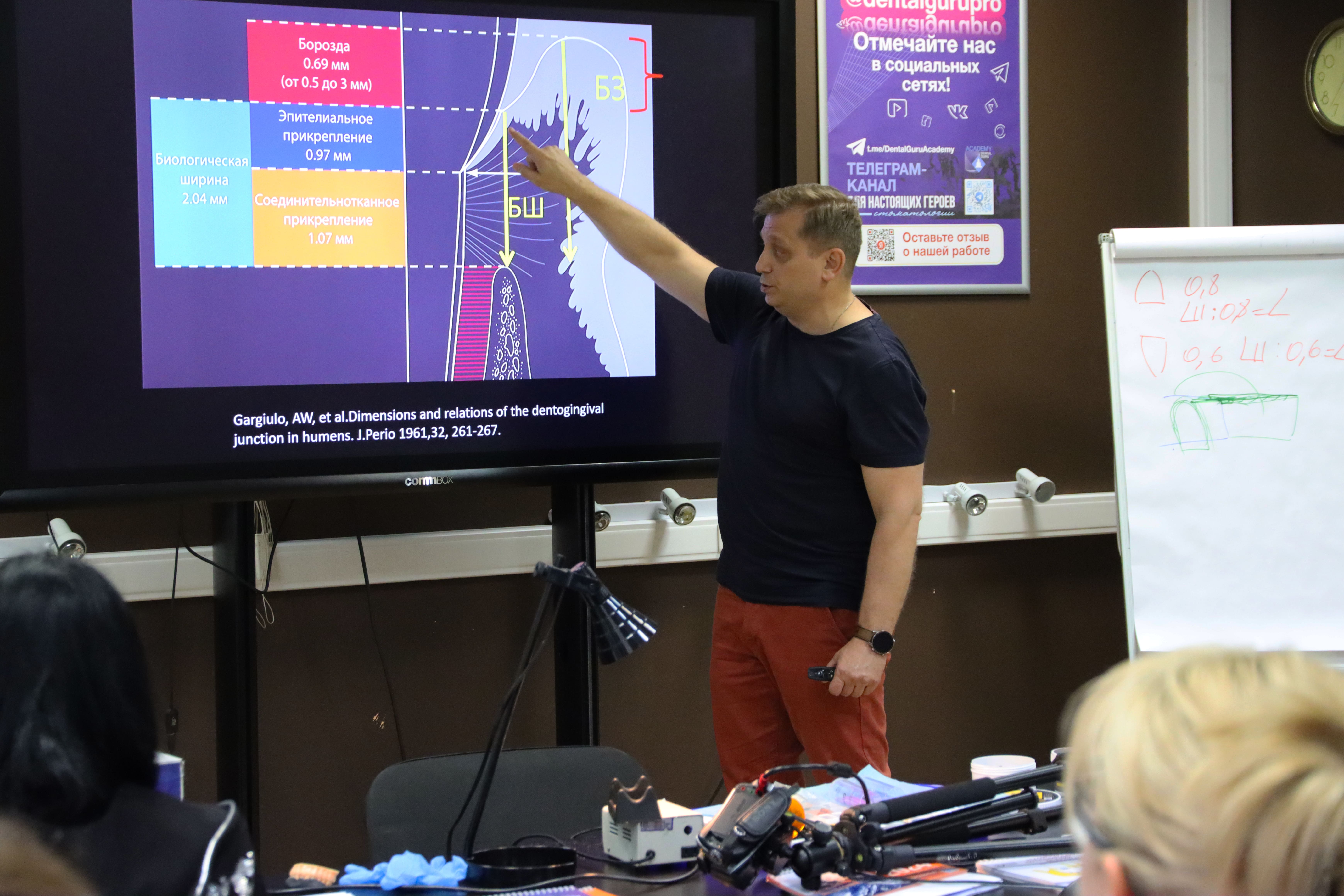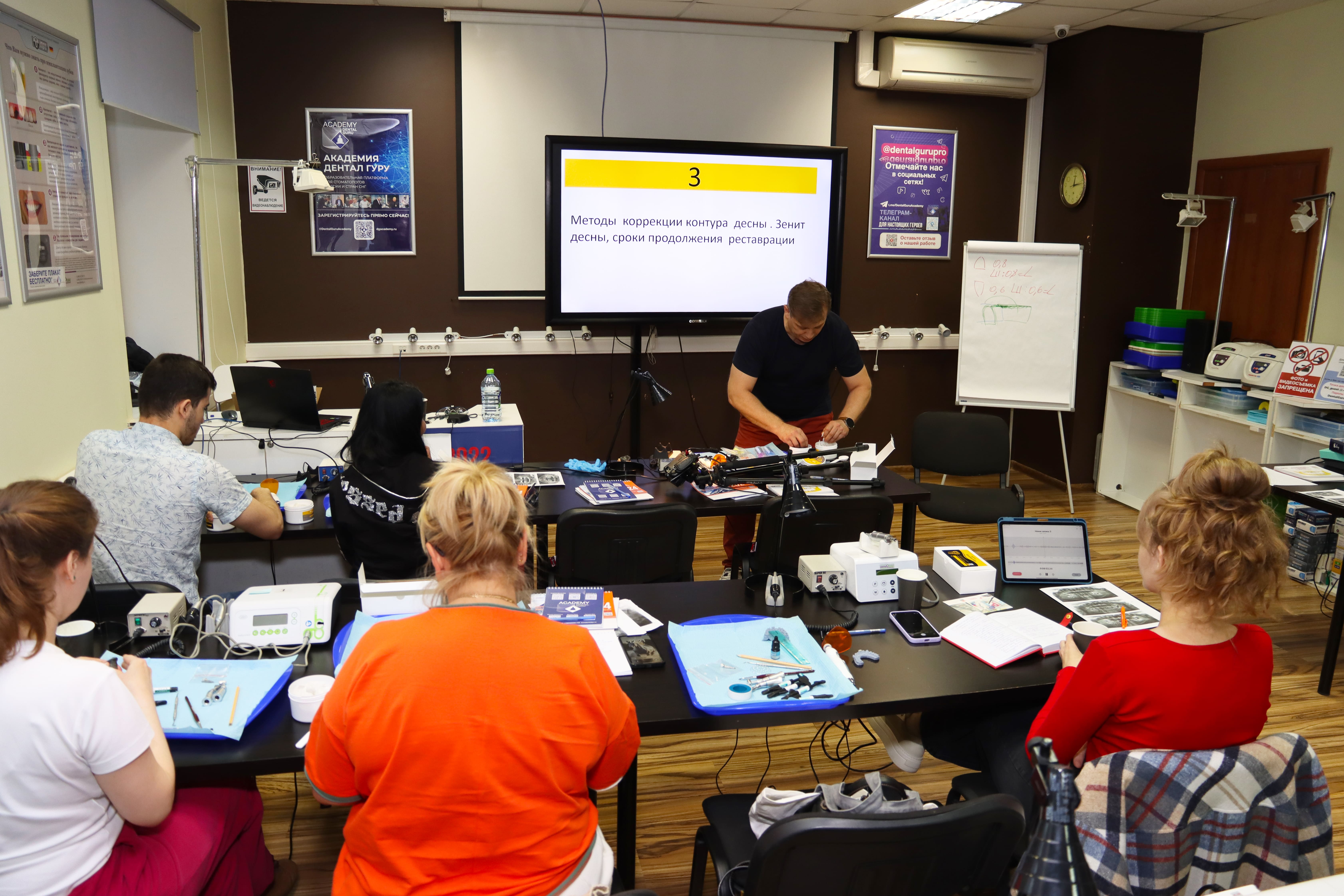 Во время курса доктора получили пошаговую методику реставрации зубов при дистопированном положении и при тесном расположении в зубном ряду. Узнали, как создается четкий контактный пункт и что такое «правило черных треугольников». Изучили поэтапные шаги реставрации после ортопедического лечения. Научились восстанавливать улыбку при сниженной высоте зубного ряда и при синдроме стираемости.