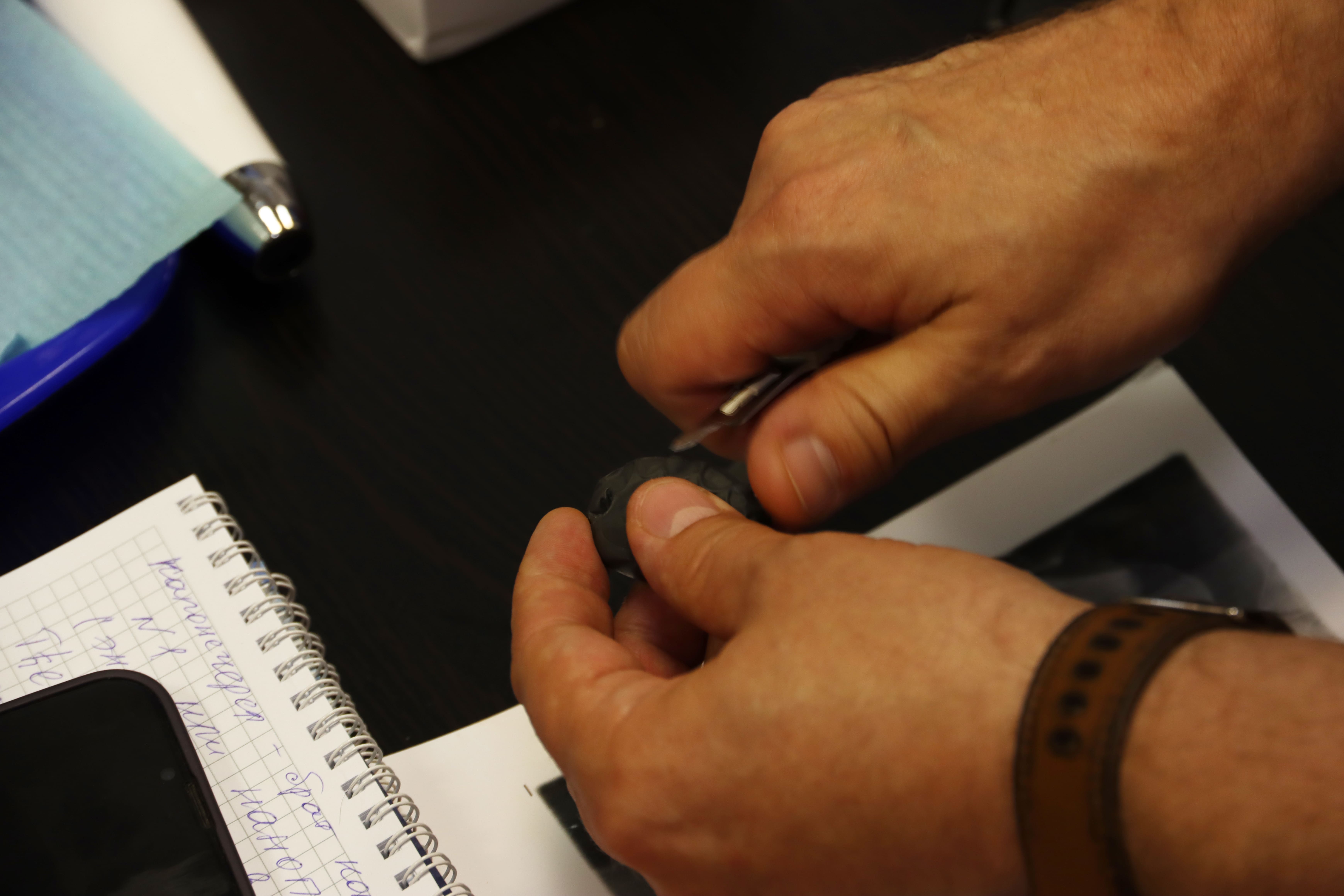 На практическом занятии отрабатывали создание режущего края с различными оптическими характеристиками, послойное заполнение реставрации. Учились делать препарирование по 4 классу и нон-преп реставрацию.