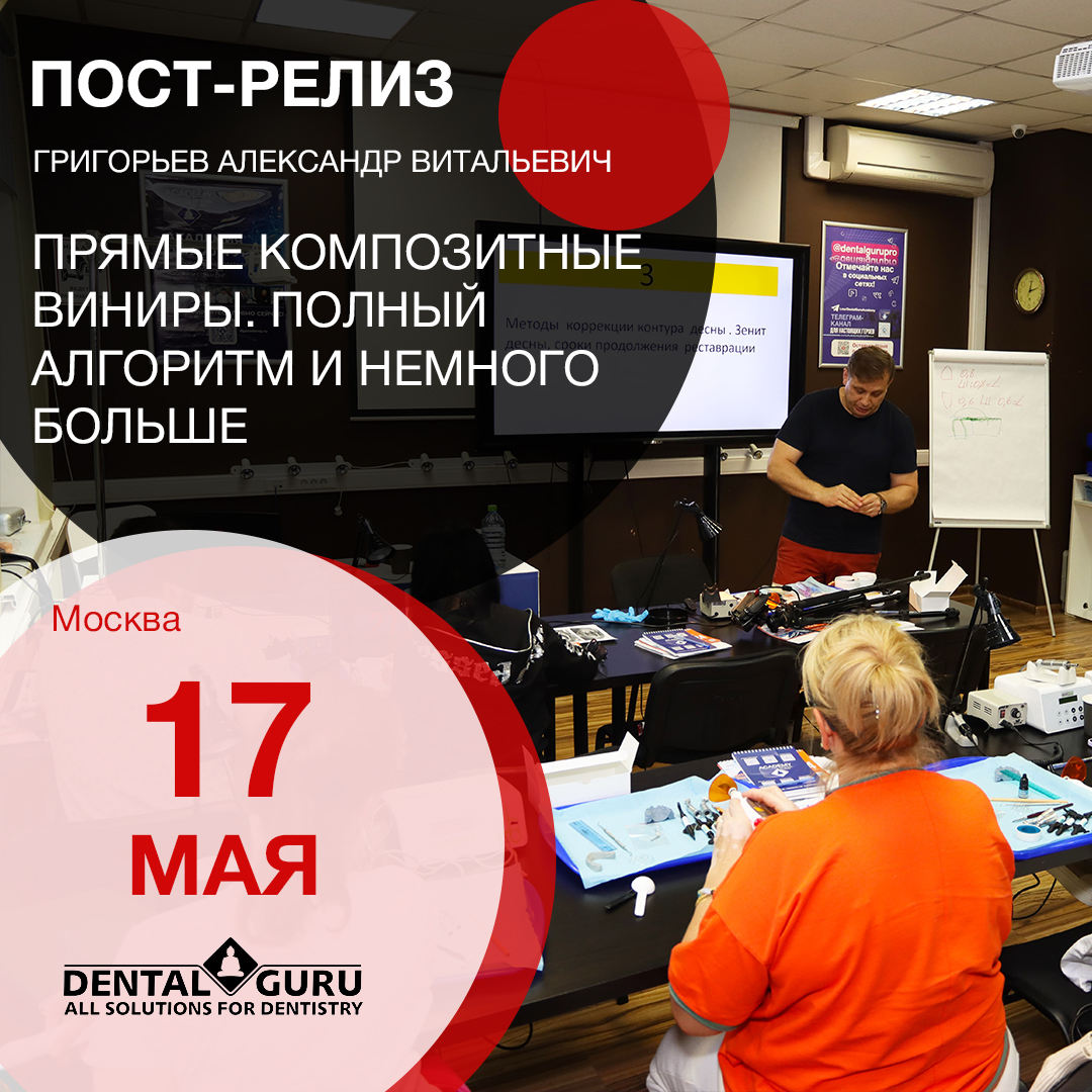 17 мая в Международном Учебном Центре Дентал Гуру состоялся уникальный курс Прямые композитные виниры. Полный алгоритм и немного больше, который провел Александр Григорьев - стоматолог-терапевт, специалист по эстетической реабилитации, эндодонтии и постэндодонтическом восстановлении, протезировании. Действительный член American Dental Academy, Society for Color and Appearance in Dentistry (SCAD) и член Российской ассоциации остеопатической стоматологии (РАОС).