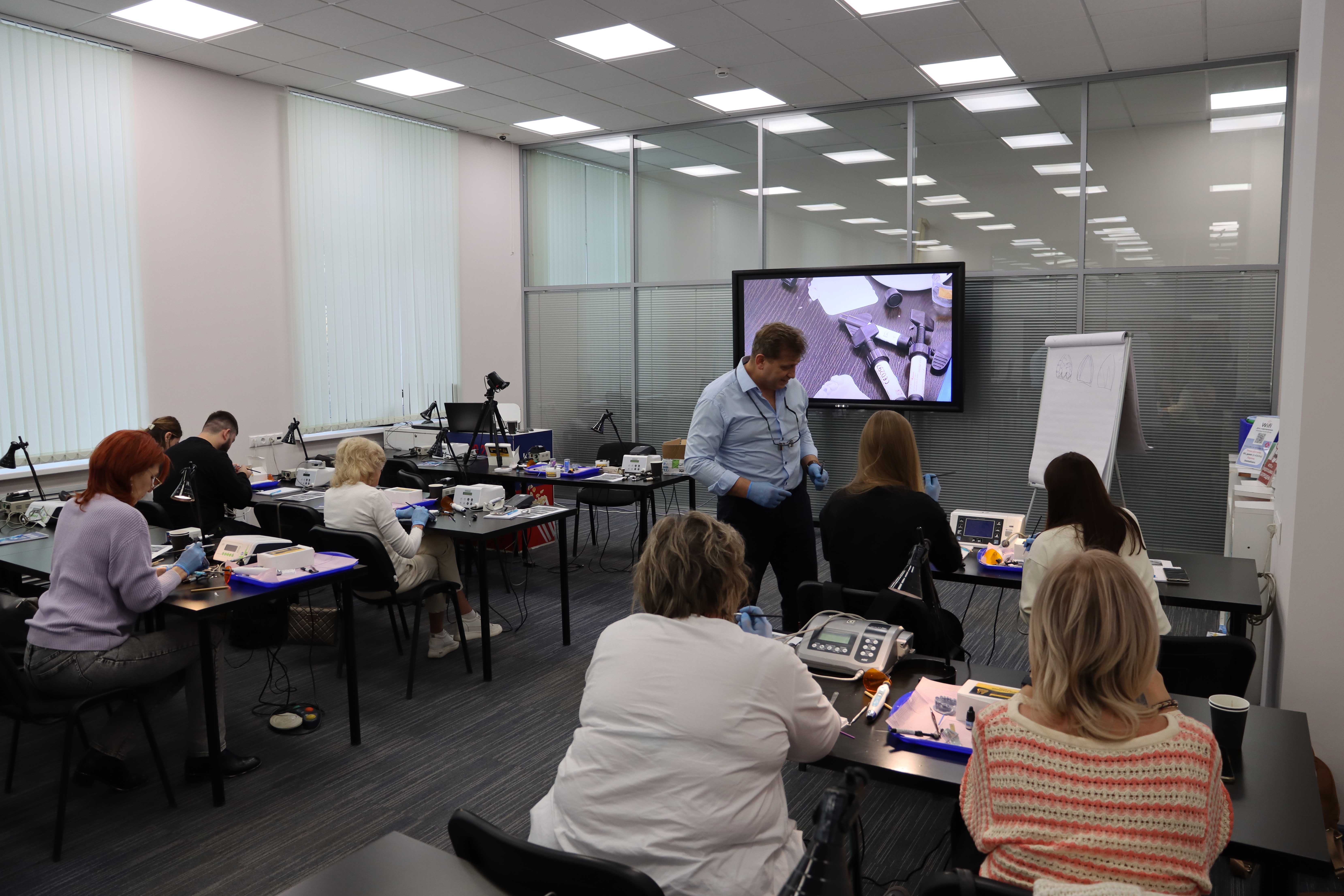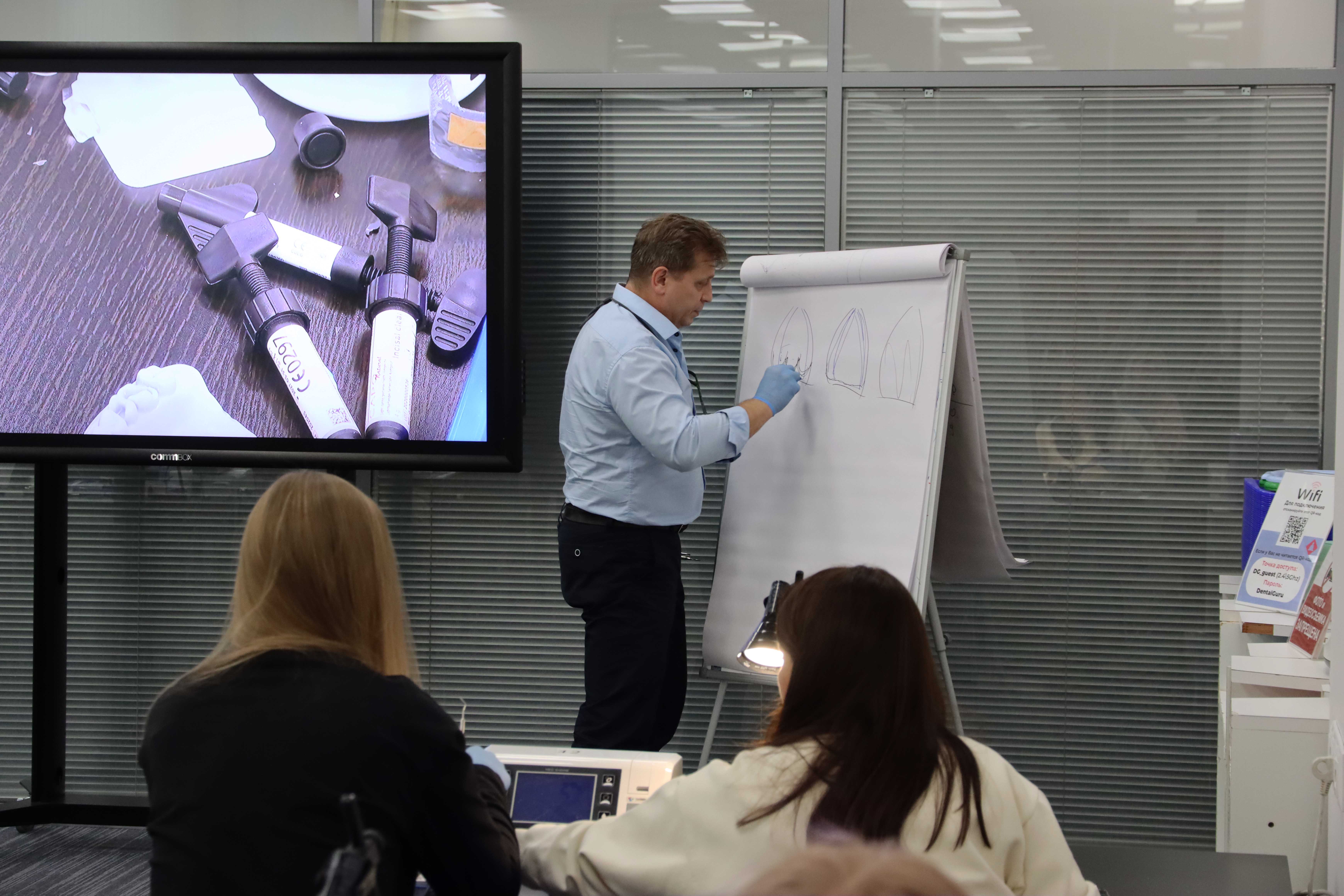 Доктора научились формировать идеальную улыбку, освоили коррекцию контуров десен, обучились биометрическому анализу, разбрались в нюансах работы с винирами, освоили поэтапные методы реставрации, а также узнали, как продлевать срок службы реставраций. А после этого отработали формы, текстуры и полировку на практическом занятии.