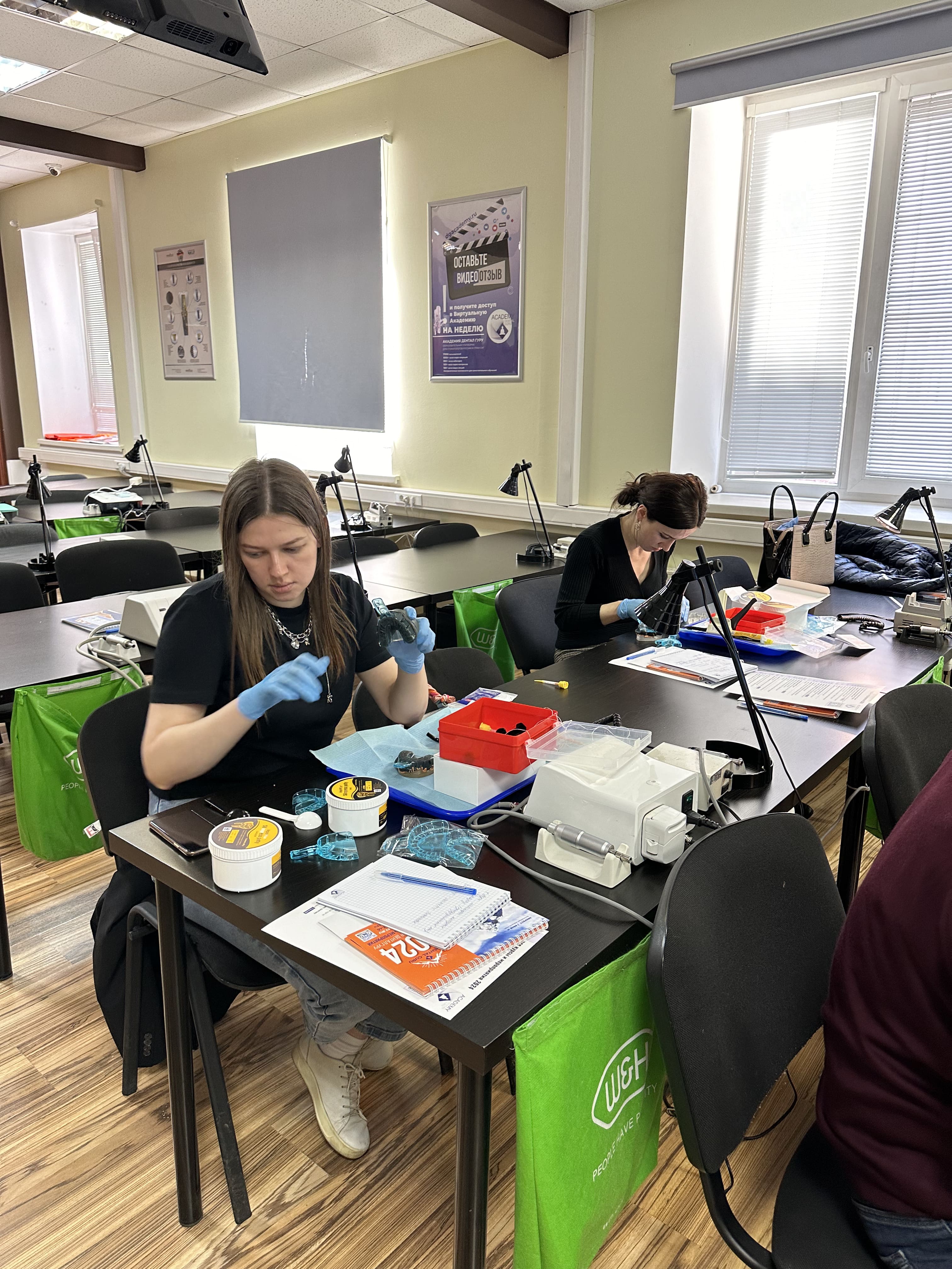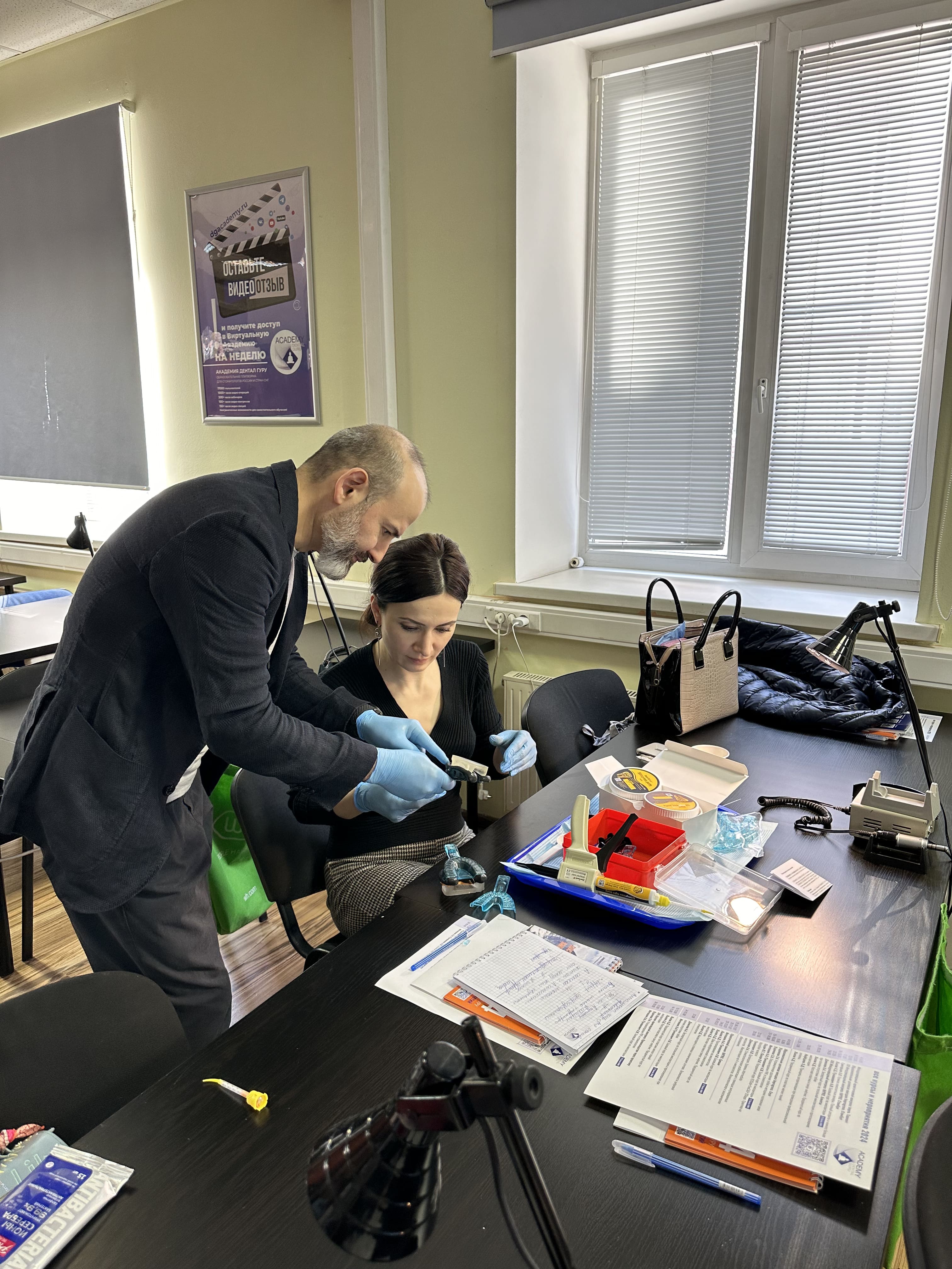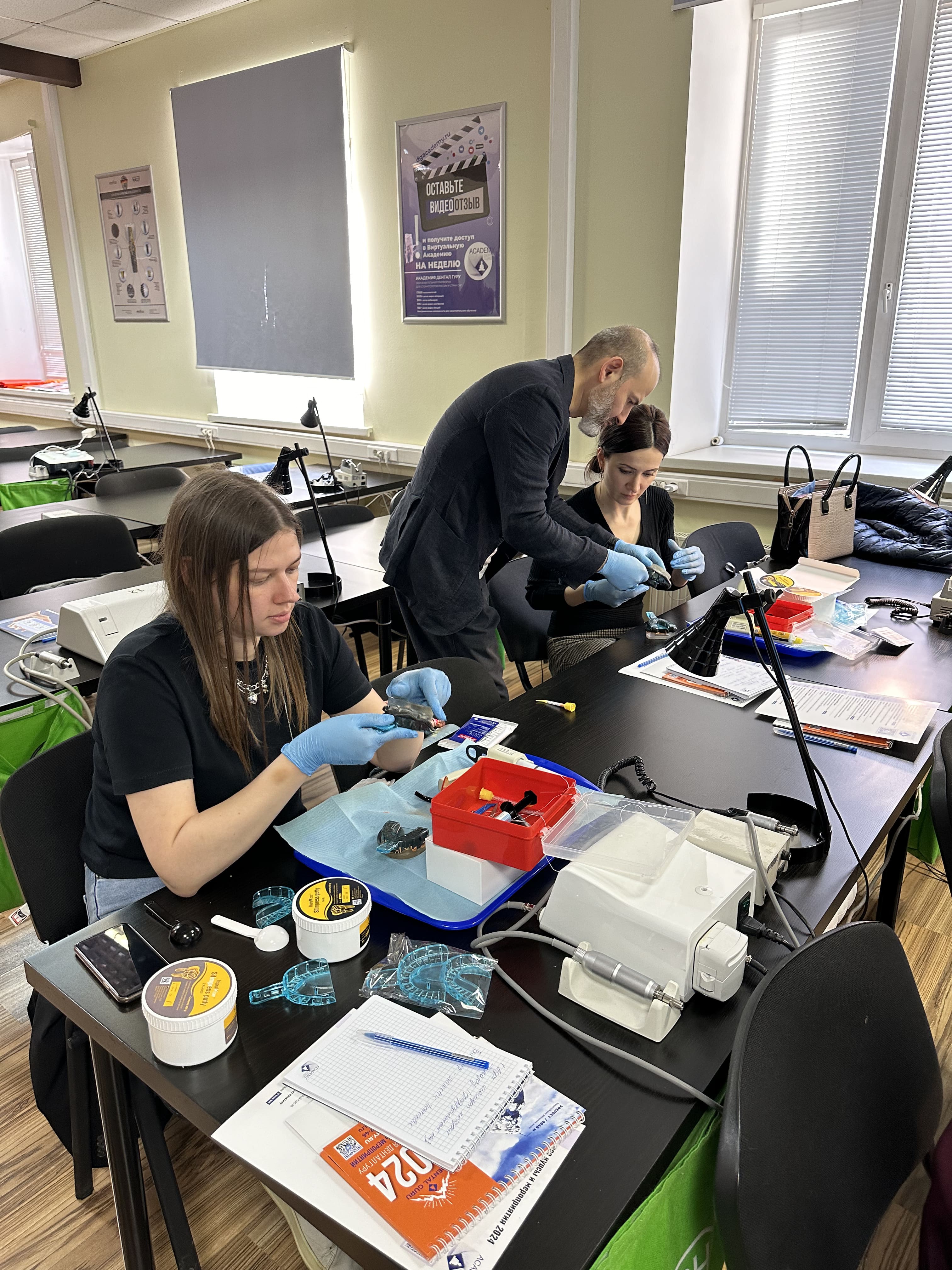 Курс завершился изучением распространенных ошибок при снятии слепков и методов их устранения. В финале программы участники курса узнали об особенностях снятия слепков под восковое моделирование и получили алгоритм планирования лечения.