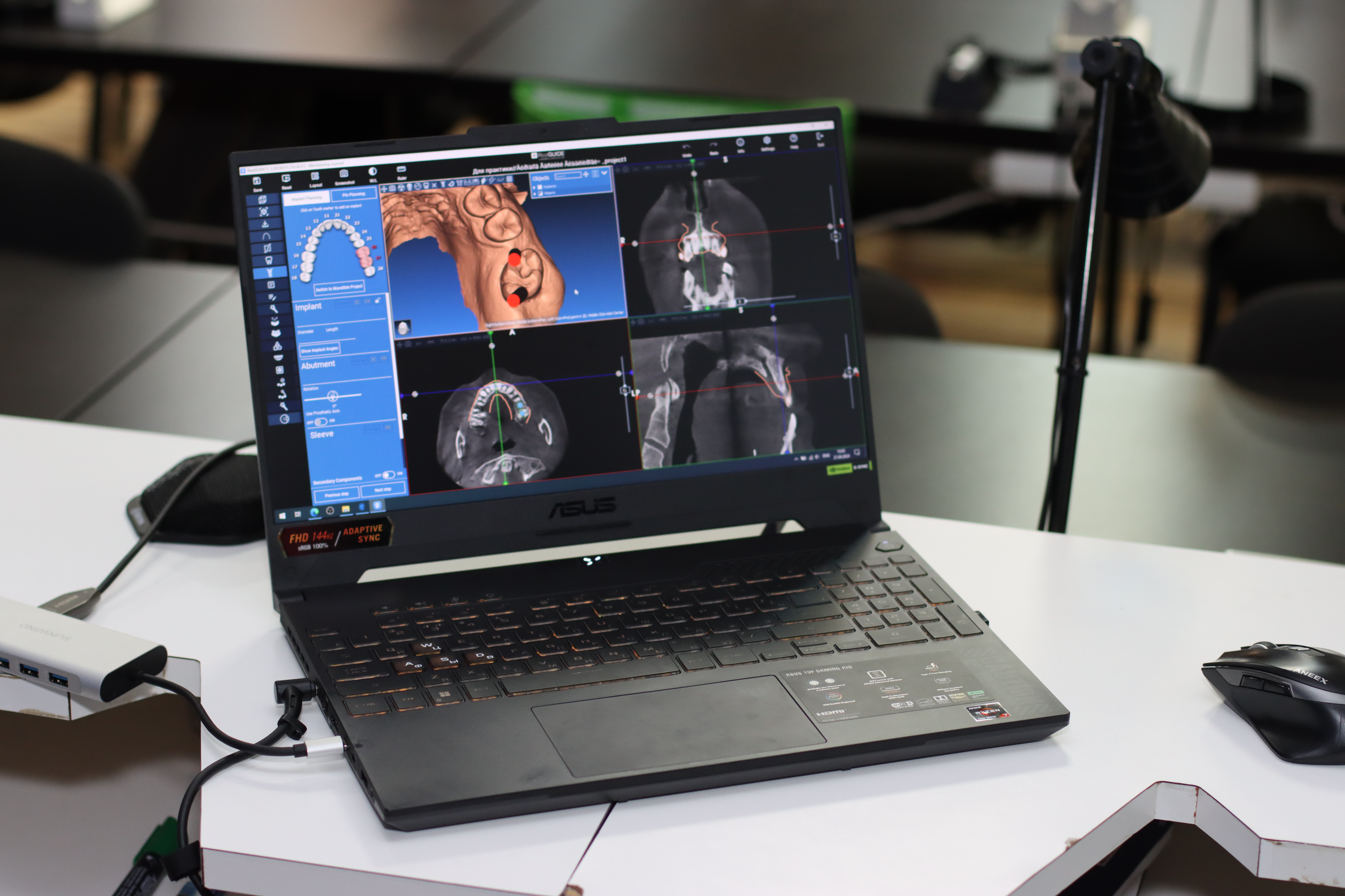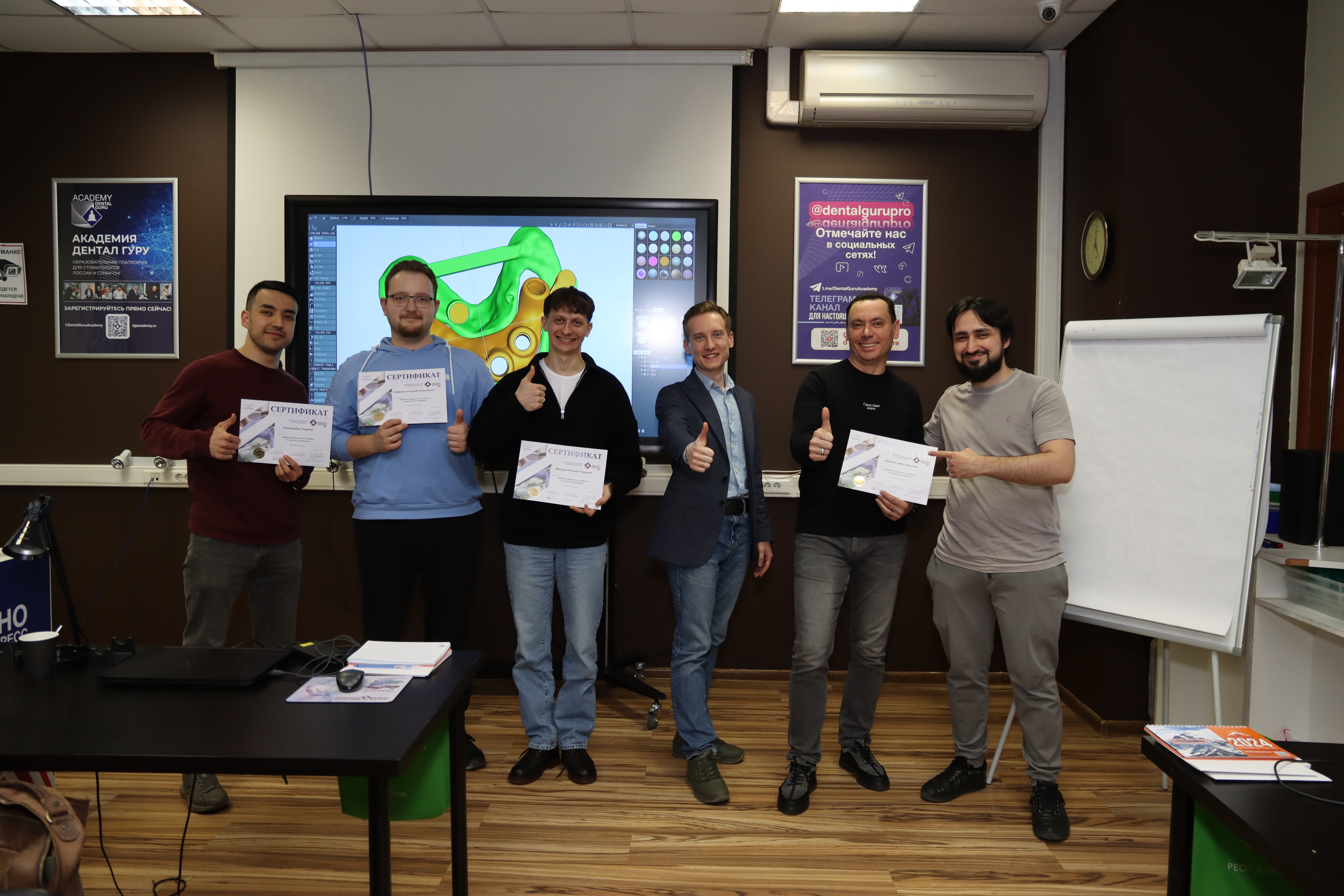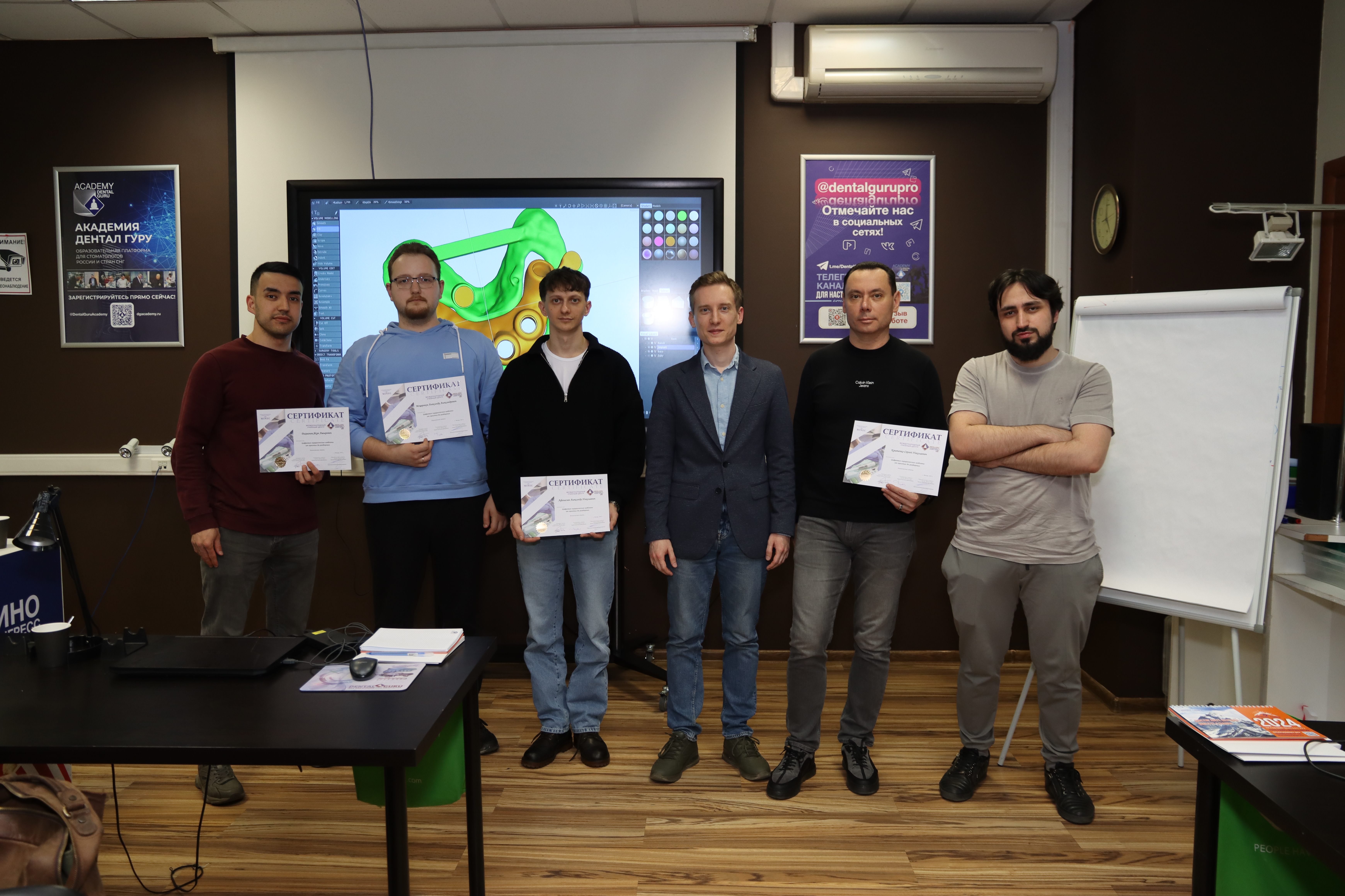 На практической части доктора овладели практическими навыками моделировки хирургического шаблона с назубной фиксацией и под полный протокол в программе 3Shape Implant Studio и 3Shape Dental Design, а также научились моделировать хирургический шаблон с удалением зуба и немедленной нагрузкой одиночной реставрацией, при полной адентии с пиновой фиксацией, при тотальной имплантации c немедленной нагрузкой и провизорной реставрацией.