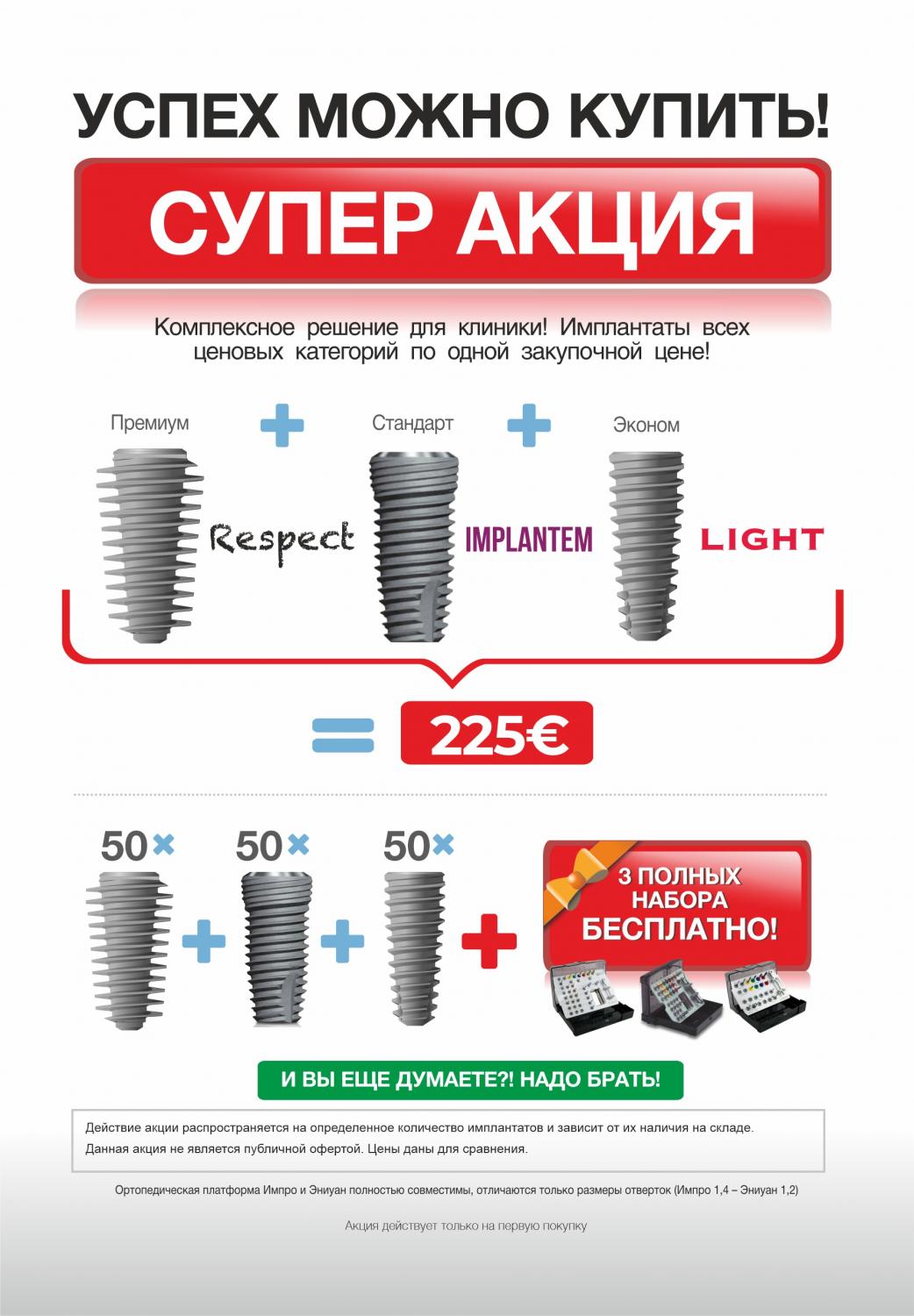 * Действие акции распространяется на определенное количество имплантатов и зависит от их наличия на складе.
