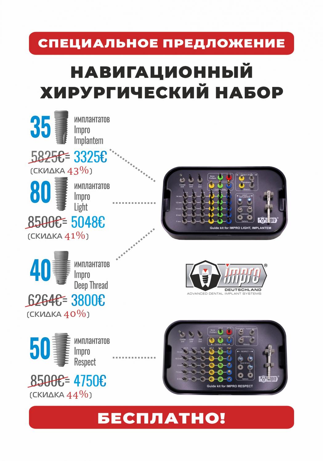 Получите в подарок навигационный хирургический набор при покупке имплантатов IMPRO!