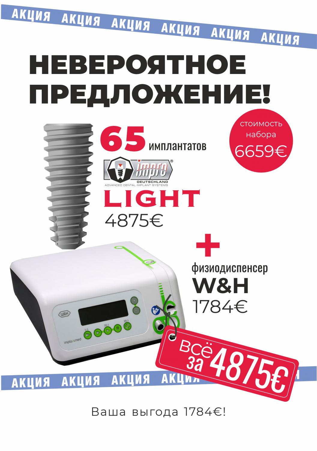 При покупке 65 имплантатов Impro Iight Вы получаете физиодиспенсер W&H в подарок. Ваша выгода €1784!