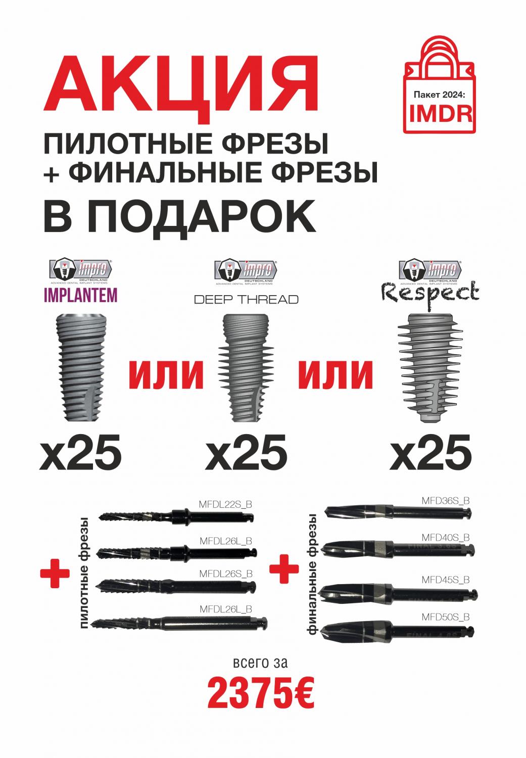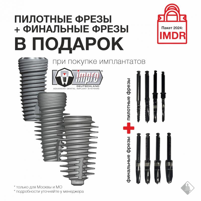 Мы дарим пилотные и финальные фрезы при покупке всего 25 имплантатов Impro!