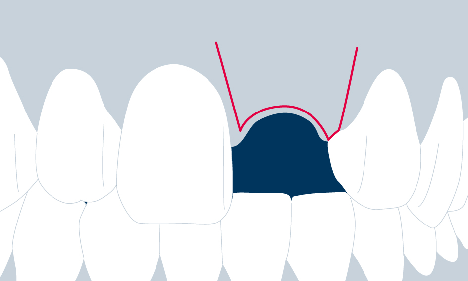 Для сохранения межзубных сосочков можно использовать ограниченную форму лоскута. Межзубные сосочки не входят в состав слизисто-надкостничного лоскута, но остаются прикрепленными к кости на 1–2 миллиметра. Этот подход может сохранить больше межпроксимального альвеолярного гребня, чем более широкий лоскут, включающий межзубные сосочки.