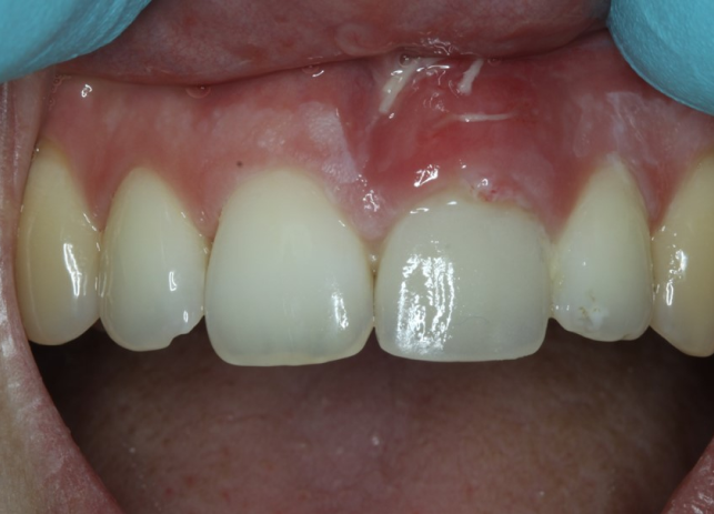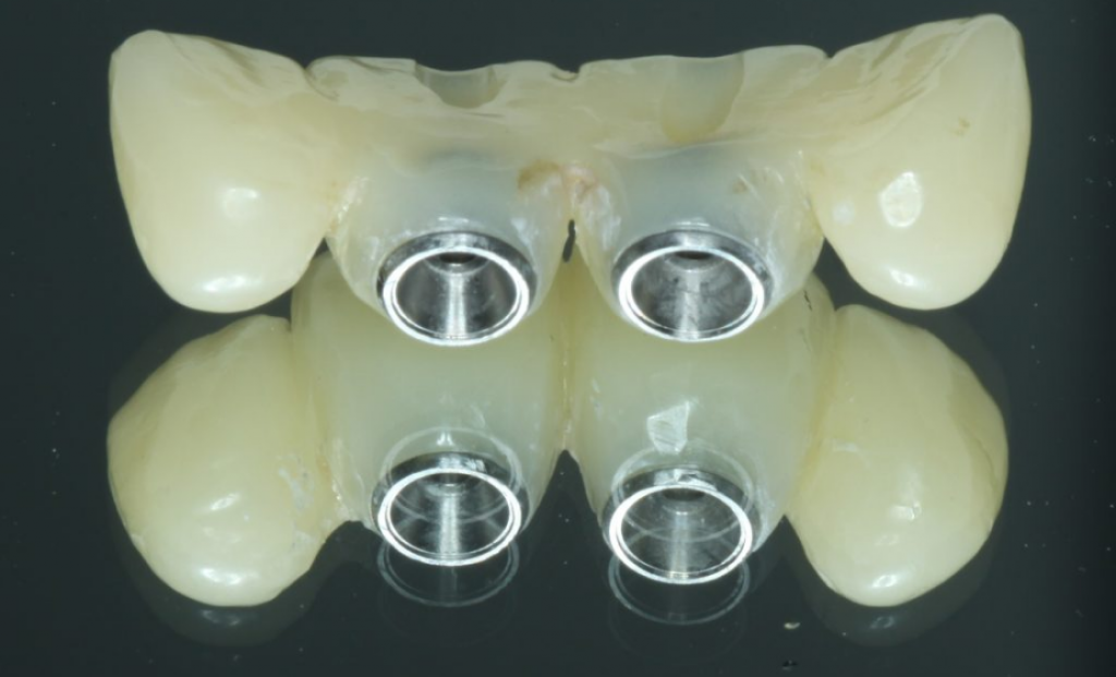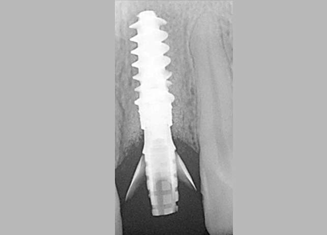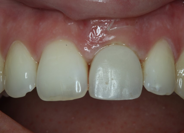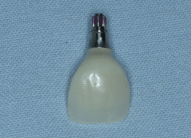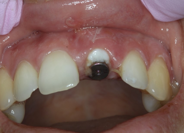 Была выбрана самая короткая высота десневой манжеты (GH), так как она является наиболее безопасной с эстетической точки зрения, поскольку металлическая кромка не будет видна над десной. При доставке коронки на имплантат стоматолог столкнулся с трудностями при «посадке» коронки на абатмент.