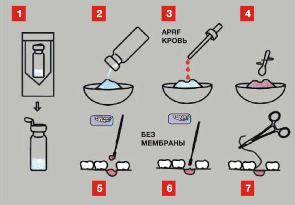 - Импрегнируйте Impro Bone BCP кровью пациента (рекомендована плазма от APRF, IPRF) или смешайте с аутокостной стружкой